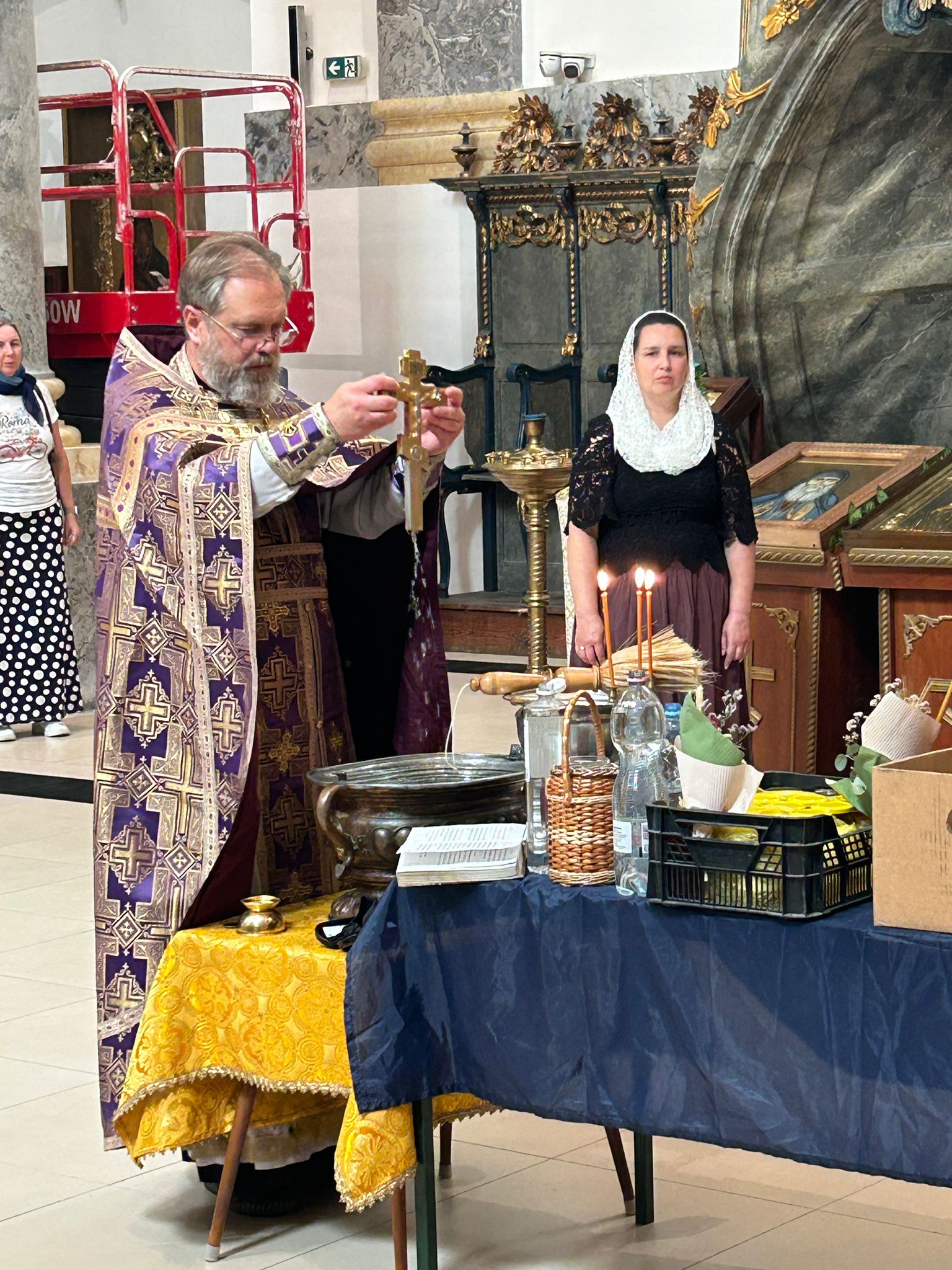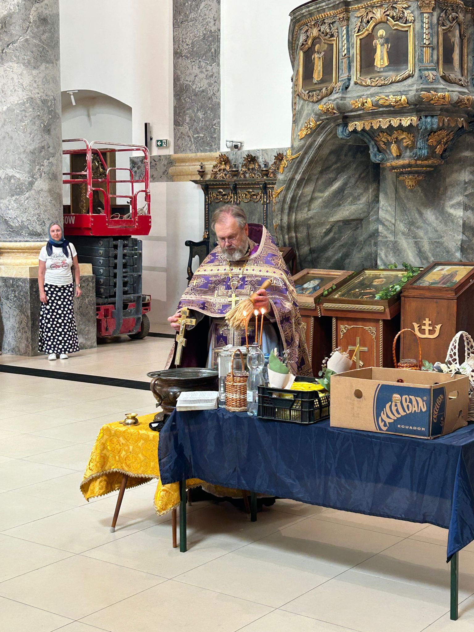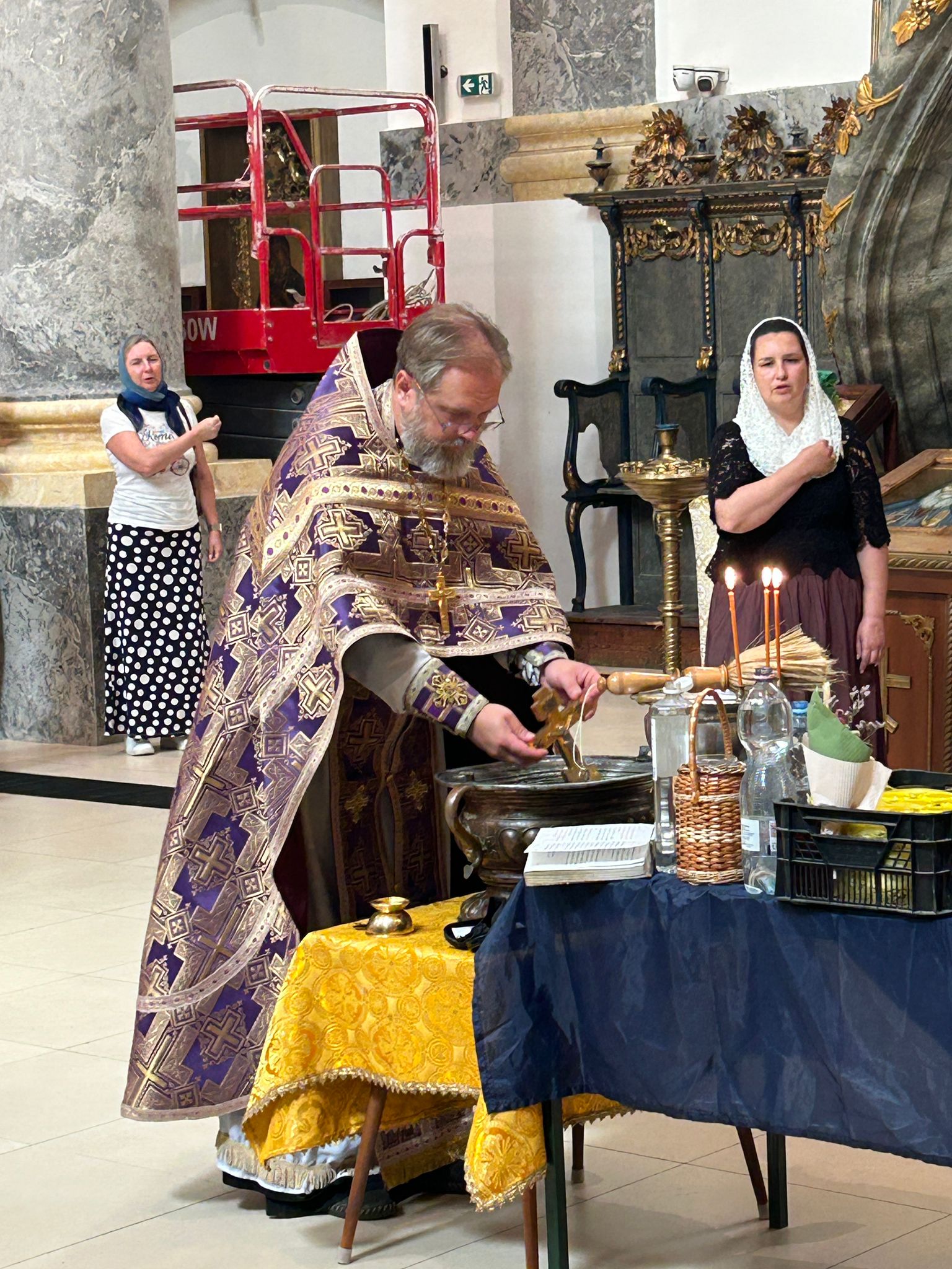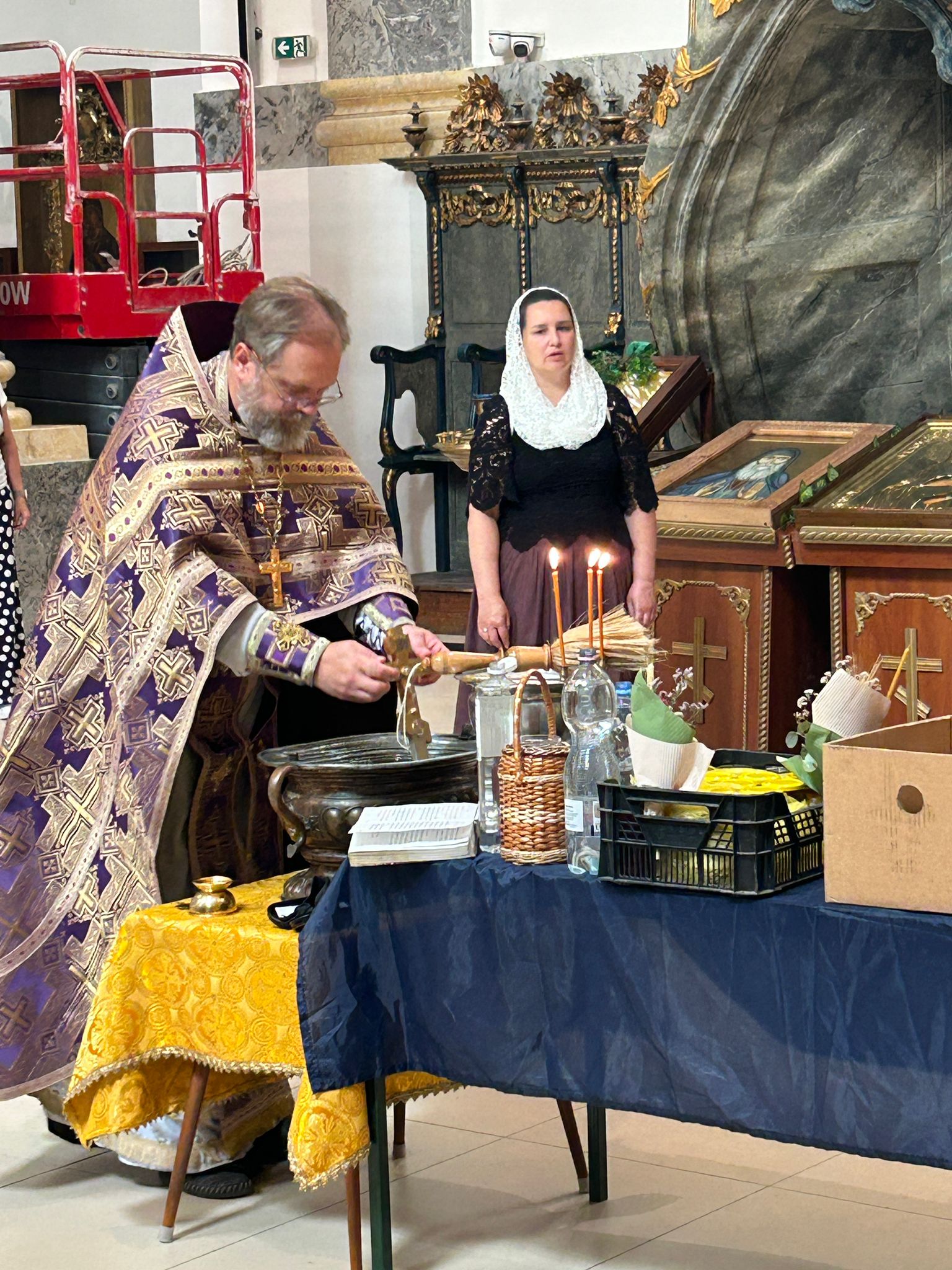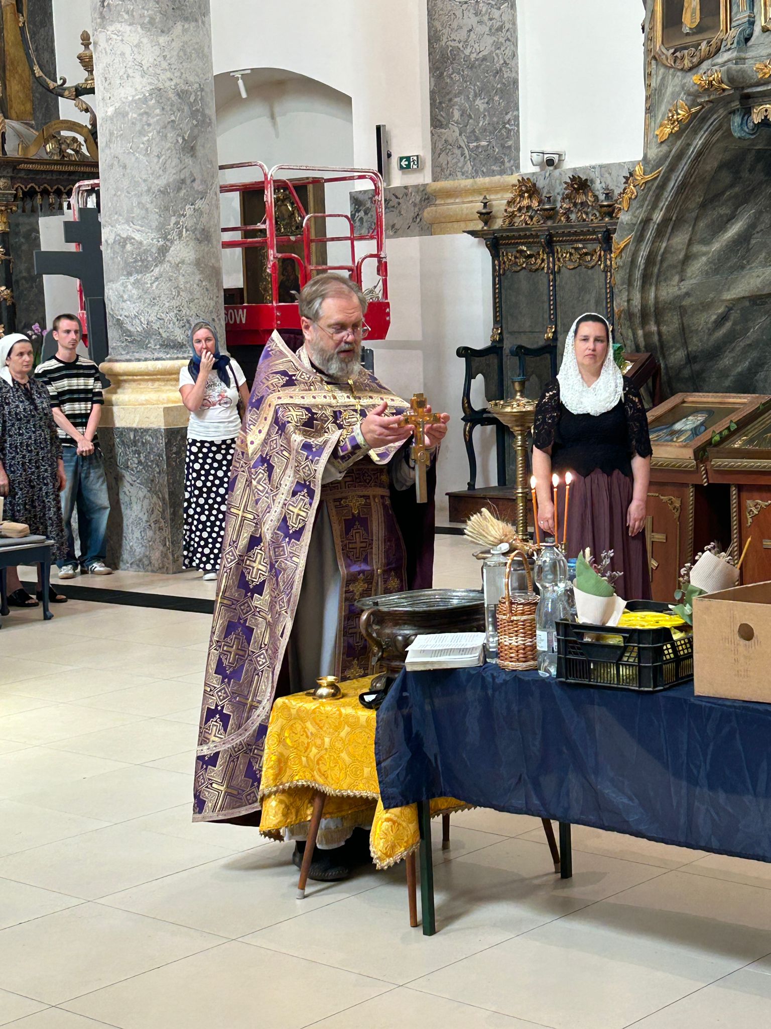 14 августа 2025 года в Свято-Троицком приходе Успенского кафедрального собора состоялась Божественная литургия. Ее совершил настоятель прихода иерей Димитрий Корнилов.
