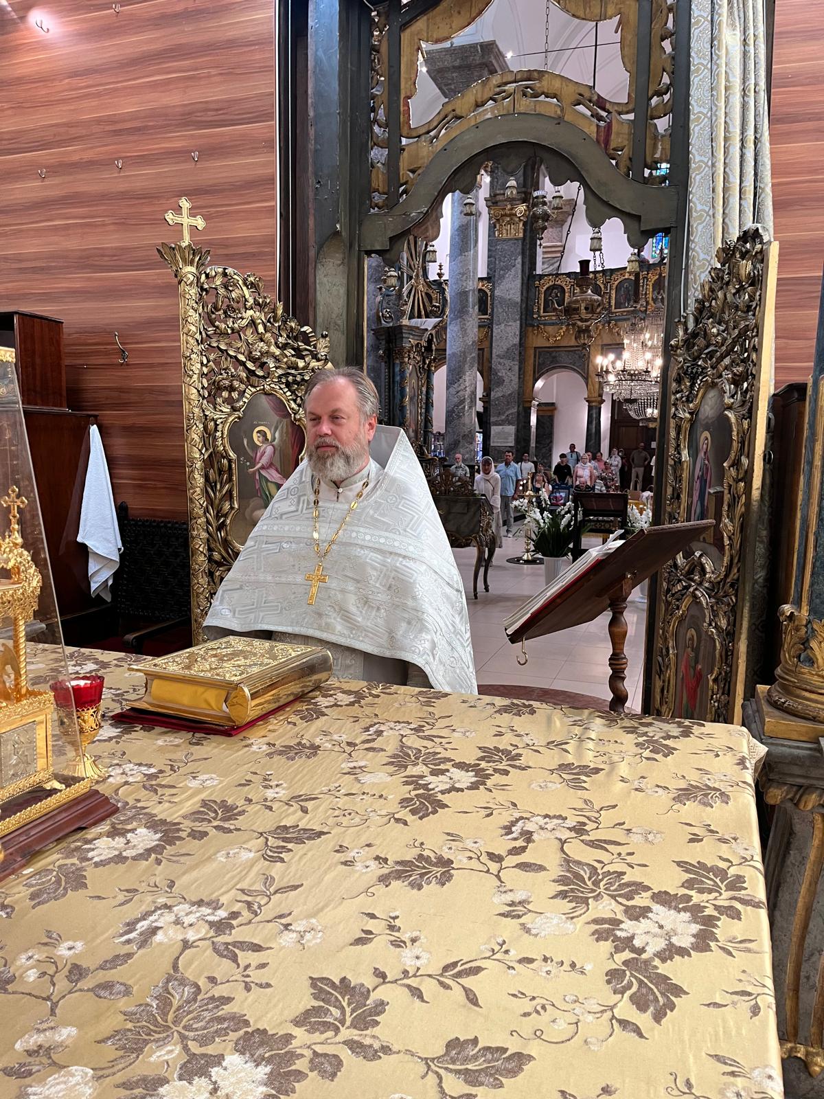 Утром 19 августа 2025 года, в праздник Преображения Господа Бога и Спаса нашего Иисуса Христа в Свято- Троицком приходе Успенского кафедрального соборе состоялась торжественная Божественная литургия, возглавил которую настоятель прихода иерей Димитрий Корнилов в сослужении клирика нашего прихода иерея Святослава Булаха.