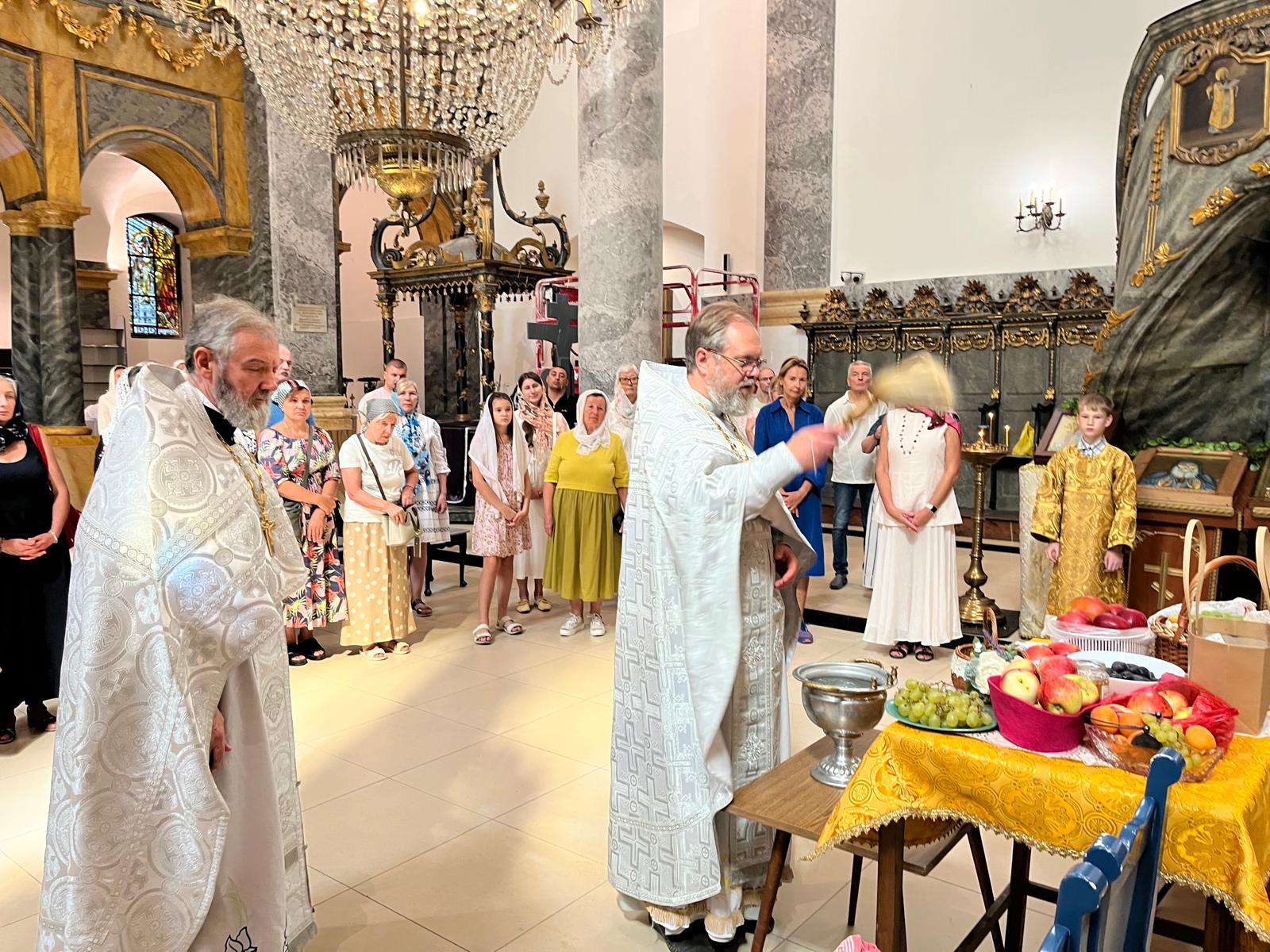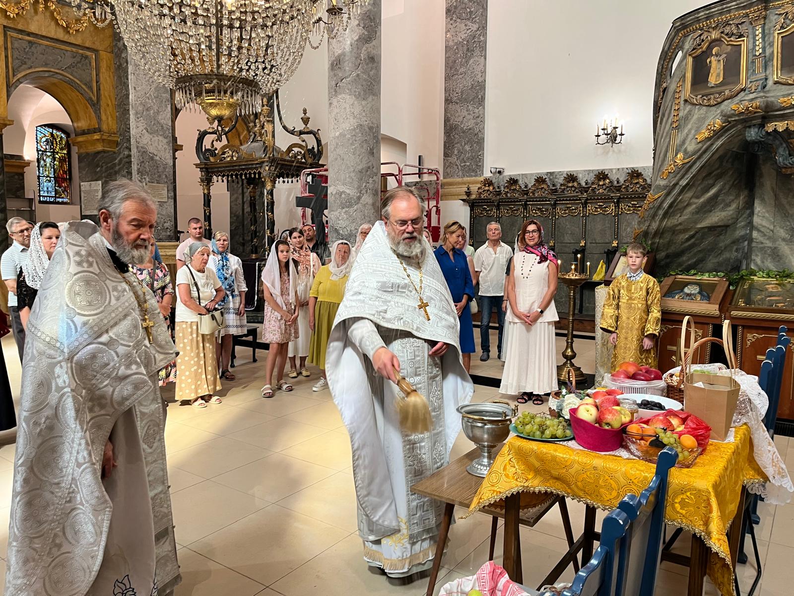 Богослужебной особенностью церковного праздника был совершенный чин освящение плодов. После заамвонной молитвы, при пении тропаря и кондака праздника Преображения Господня, перейдя из алтаря на середину храма, настоятель прихода совершил окропление святой водой принесенных прихожанами фруктов и овощей.