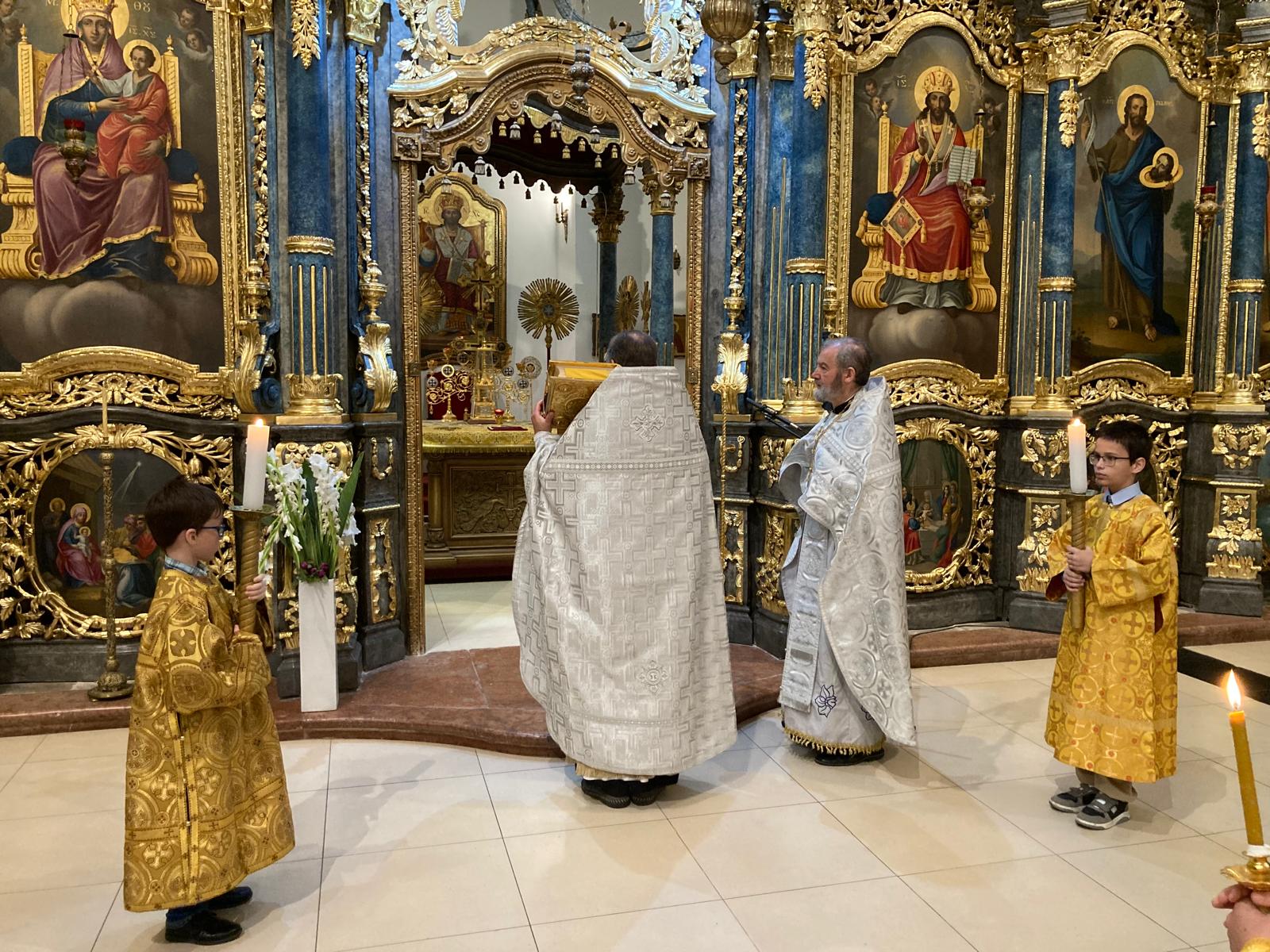 По завершении воскресной Литургии, после причащения прихожан, настоятель нашего прихода поздравил молящихся с воскресным днем, причастников с принятием Святых Христовых Тайн, именинников с днем Ангела, после чего преподал всем свое пастырское благословение.