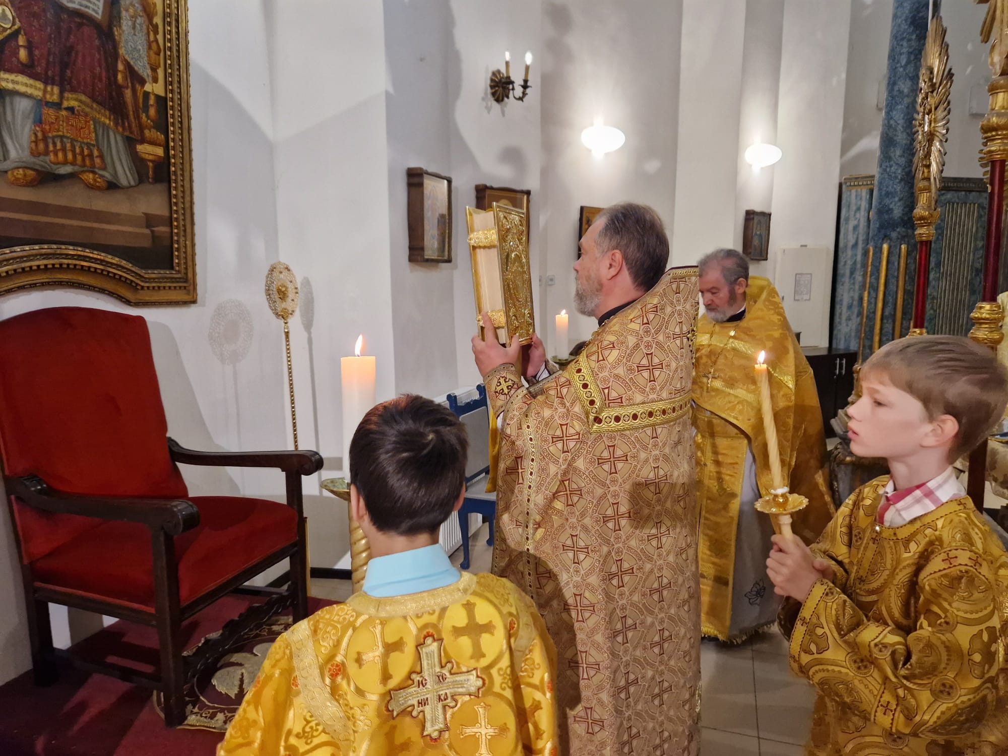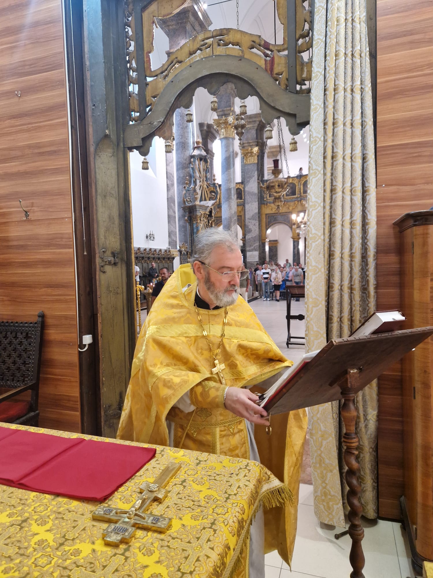 Утром 7 сентября 2025 года, в Неделю 13-ю по Пятидесятнице, в Свято- Троицком приходе Успенского кафедрального собора состоялась Божественная литургия, возглавил которую настоятель прихода иерей Димитрий Корнилов. Ему сослужил священник прихода Святослав Булах. Хором руководил Георгий Сурков.