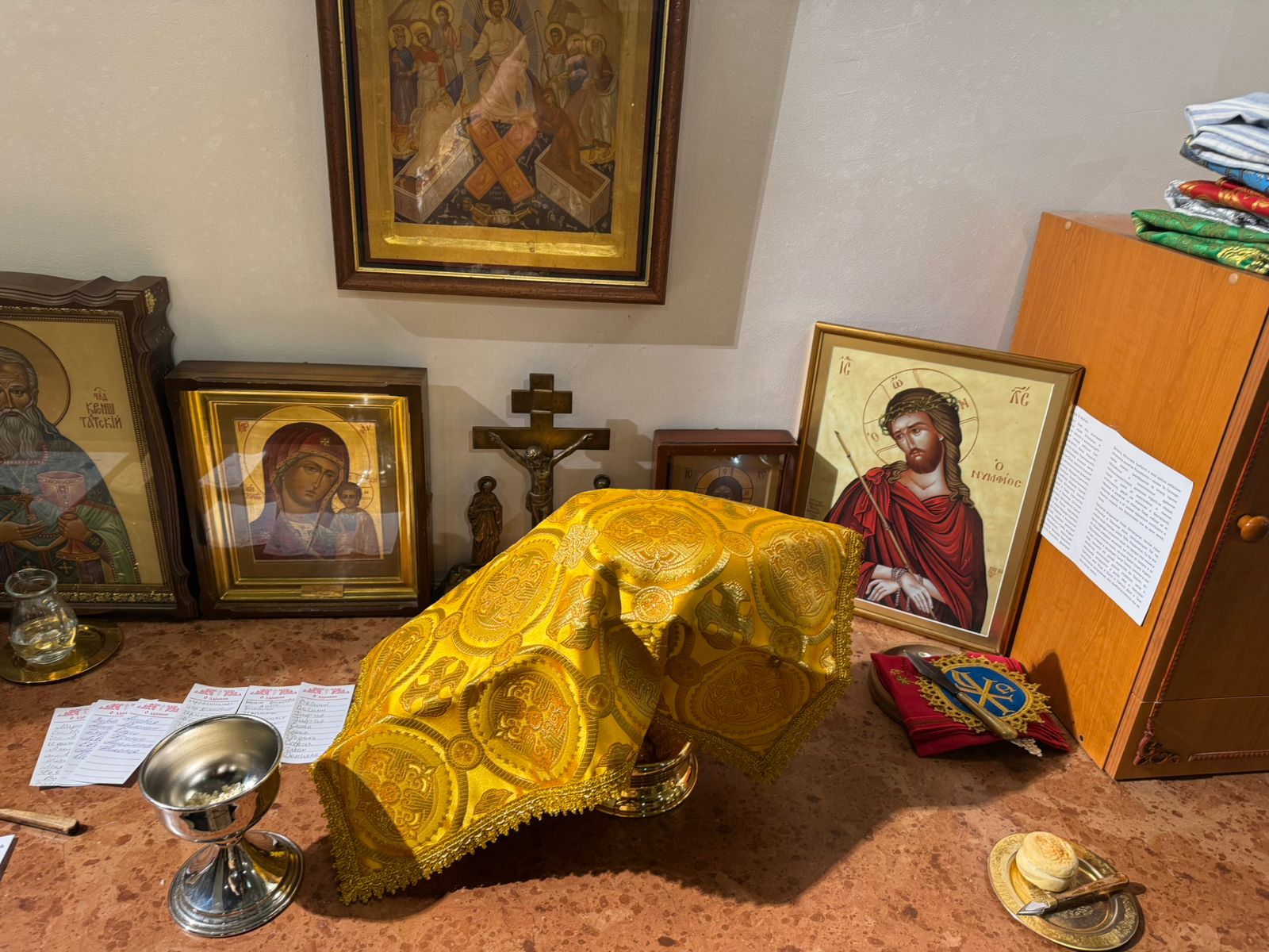А в конце Божественной литургии иерей Димитрий поблагодарил собравшихся за совместную молитву, поздравил причастников с принятием Святых Христовых Таин, именинников с днем Ангела и преподал всем свое иерейское благословение.