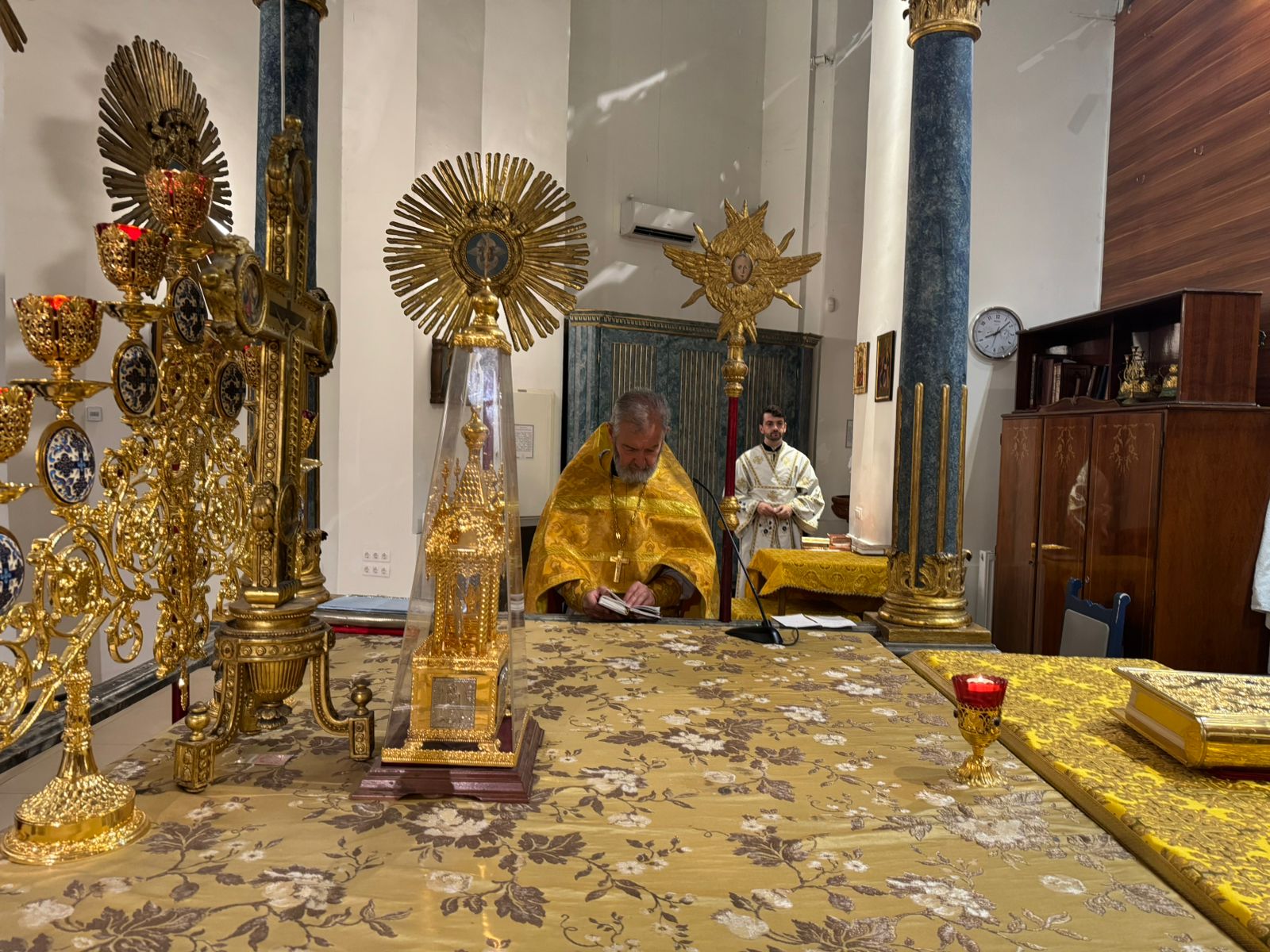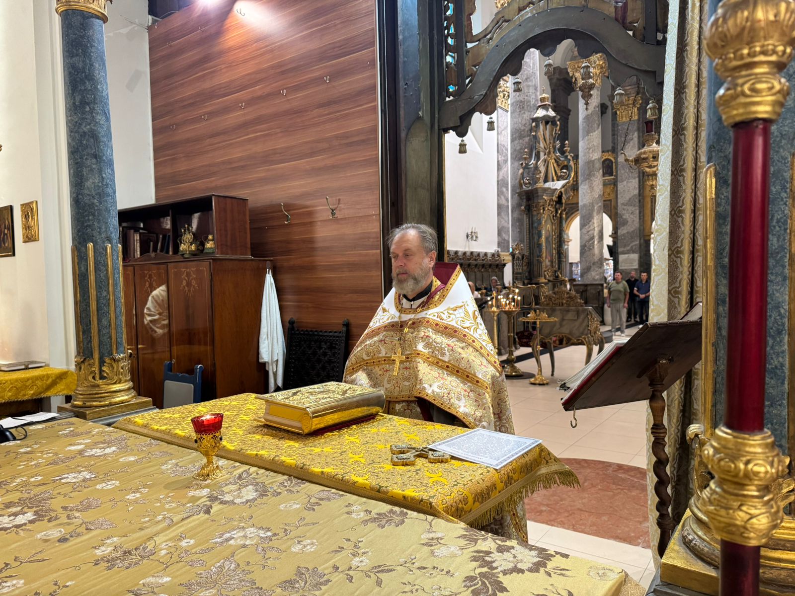 14 сентября 2025 года, в Неделю 14-ю по Пятидесятнице, в Свято- Троицком приходе Успенского кафедрального собора состоялась Божественная литургия. Ее возглавил настоятель прихода иерей Димитрий Корнилов в сослужении священника прихода Святослава Булаха.