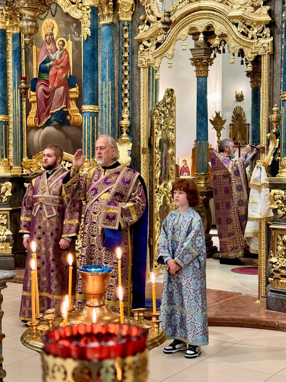 В ходе богослужения было прочитано первое послание святого апостола Павла Коринфским христианам, возвещающее о том, что Крест и страдания Иисуса Христа представляют из себя Божию силу и Божию премудрость.