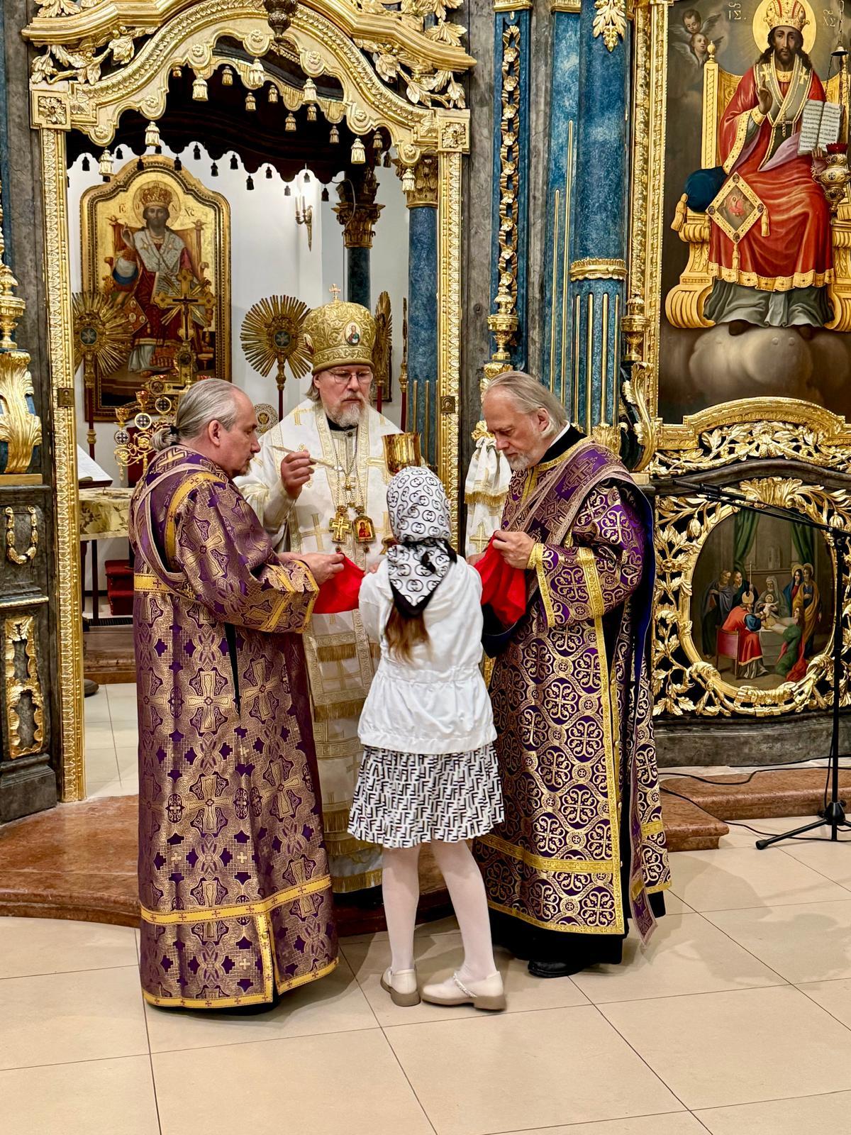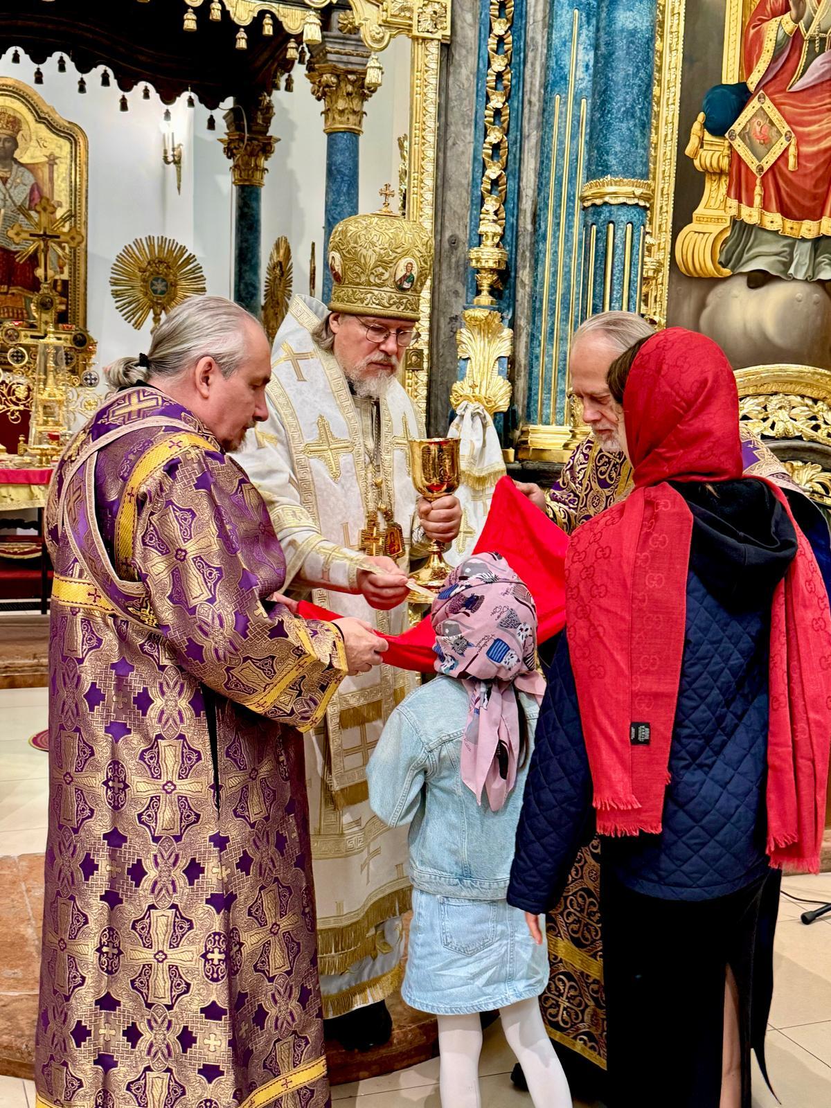 После совершенных молитвенных пений Владыка Марк поздравил молящихся с церковным торжеством, причастников с принятием Святых Христовых Тайн и преподал всем свое архипастырское благословение.