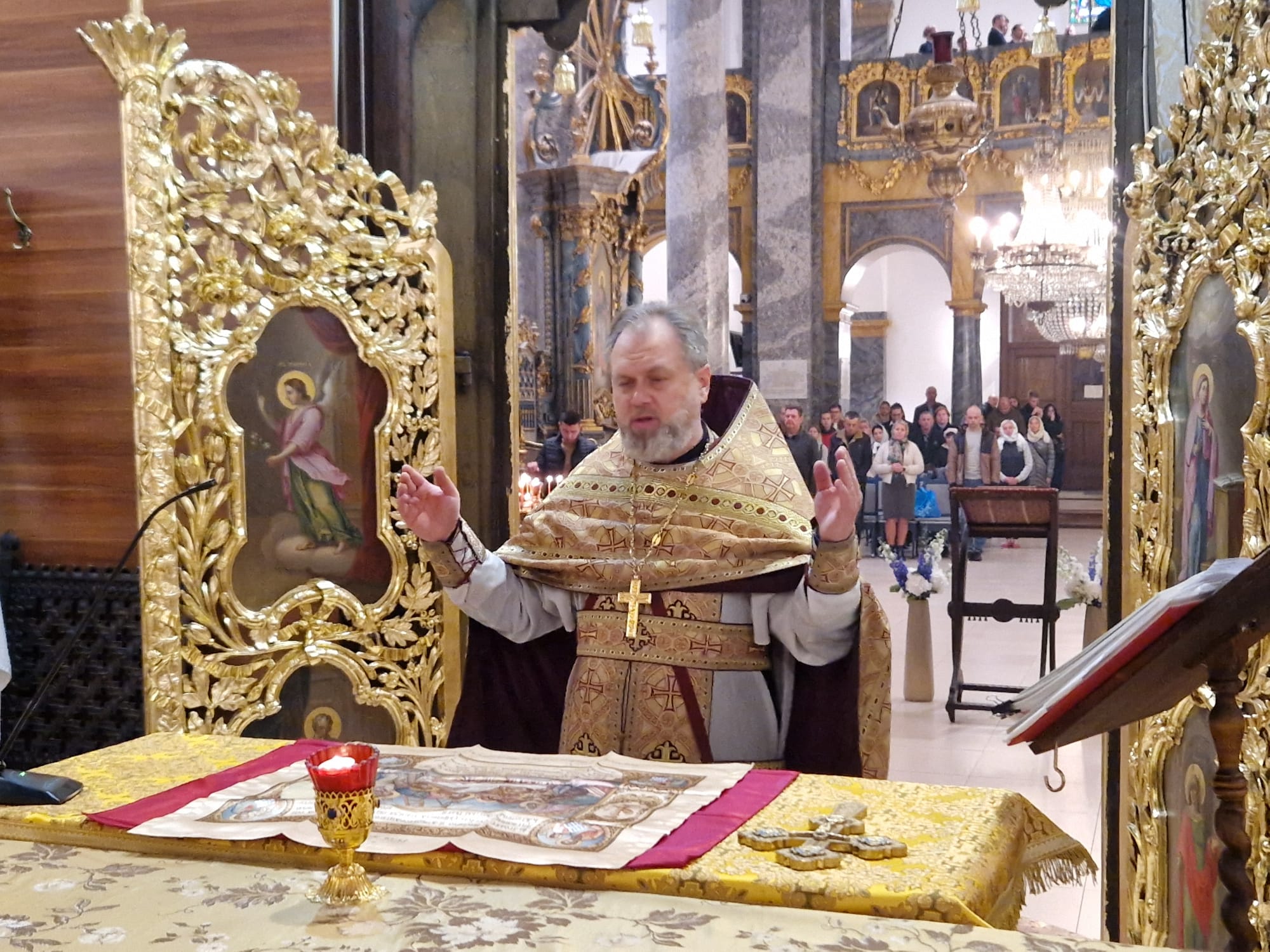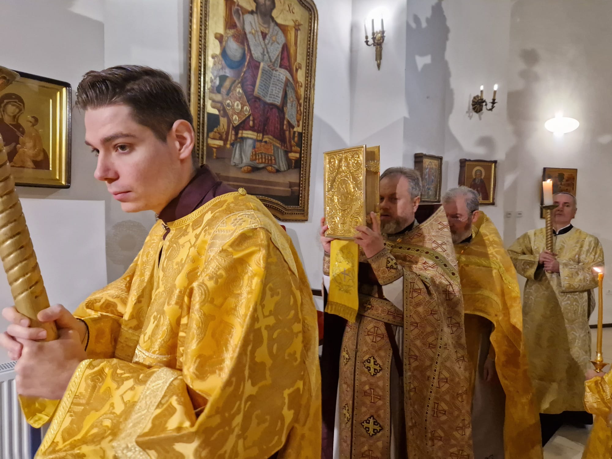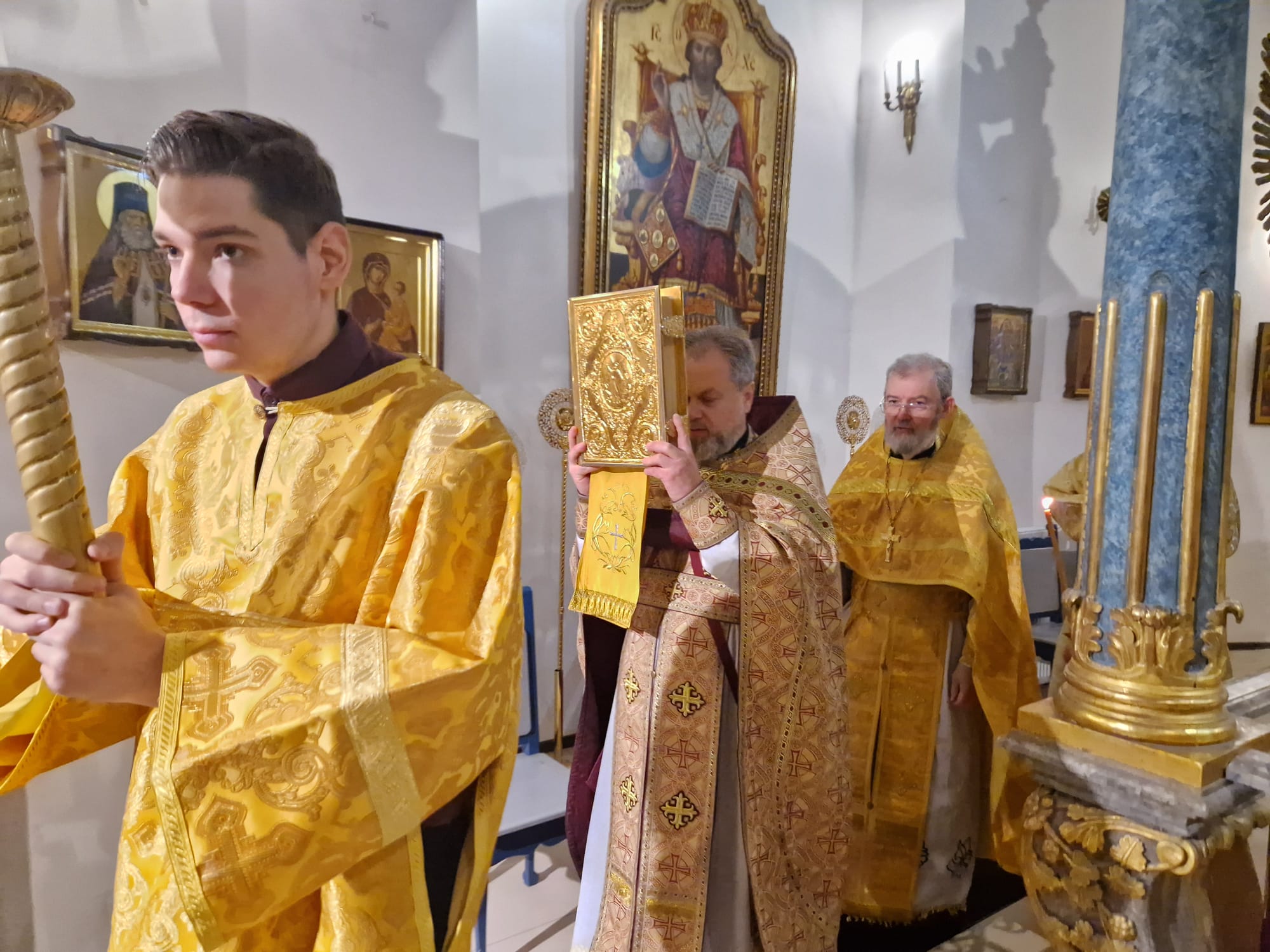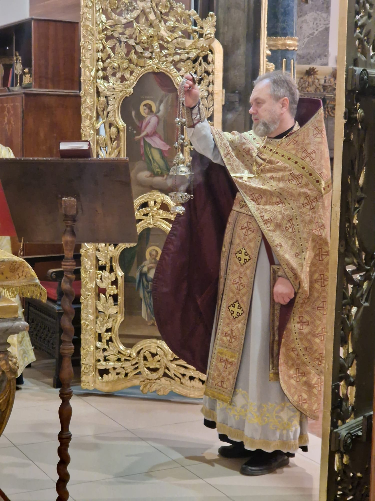 Утром 5 октября 2025 года, в Неделю 17-ю по Пятидесятнице, в Свято- Троицком приходе Успенского кафедрального собора г. Будапешта состоялась Божественная литургия, возглавил которую настоятель прихода иерей Димитрий Корнилов. Ему сослужил священник прихода, советник-помощник правящего архиерея Венгерской епархии Святослав Булах.