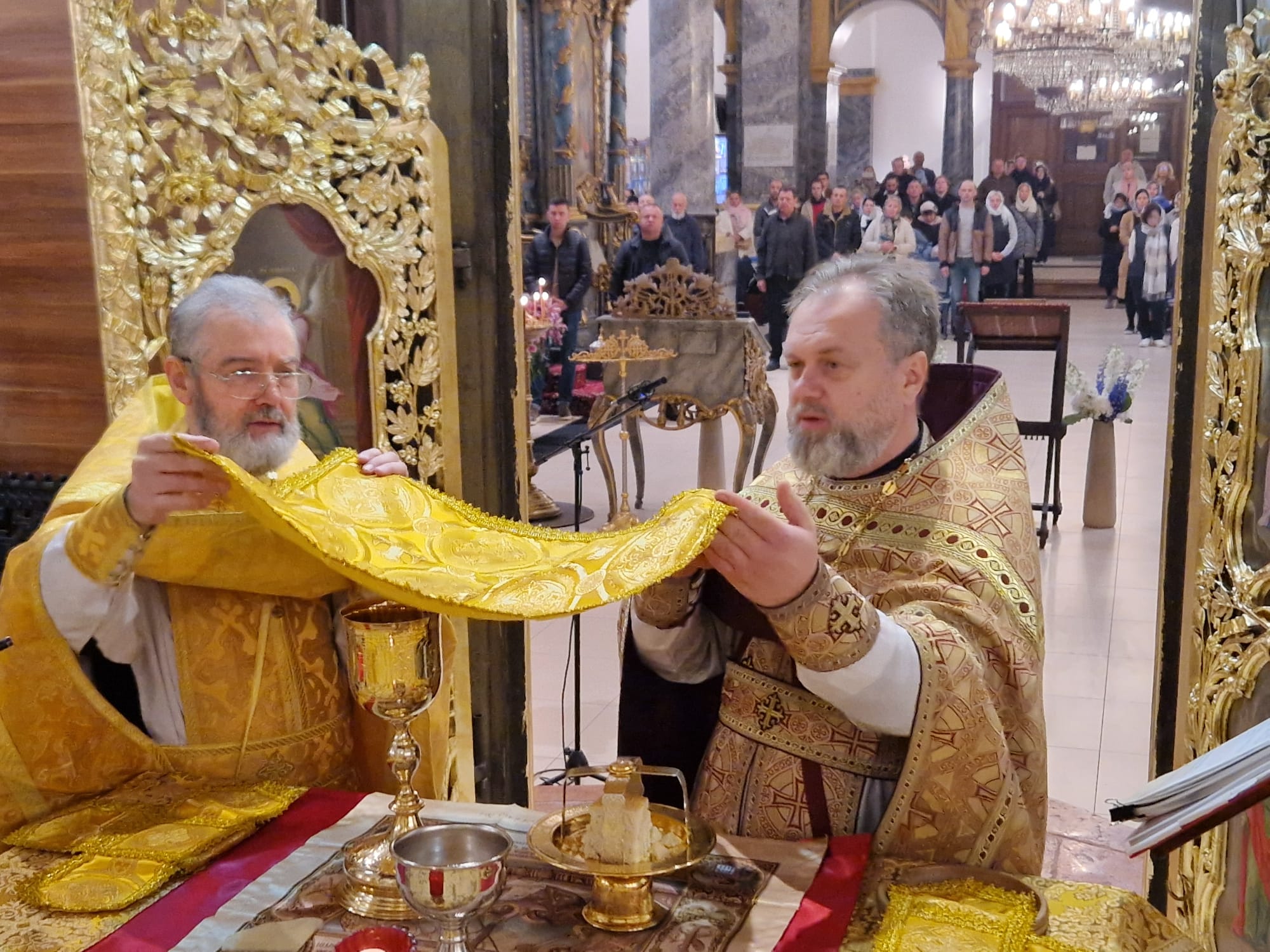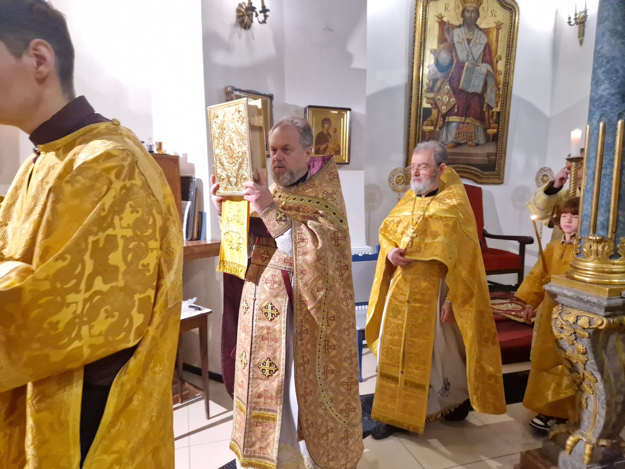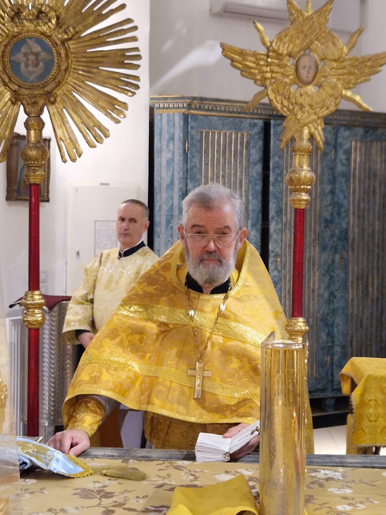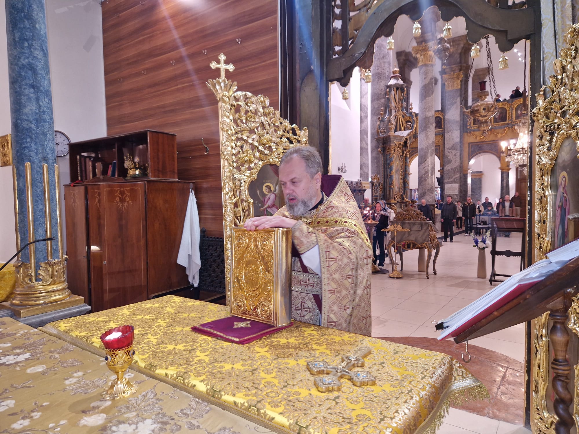Утром 5 октября 2025 года, в Неделю 17-ю по Пятидесятнице, в Свято- Троицком приходе Успенского кафедрального собора г. Будапешта состоялась Божественная литургия, возглавил которую настоятель прихода иерей Димитрий Корнилов. Ему сослужил священник прихода, советник-помощник правящего архиерея Венгерской епархии Святослав Булах.