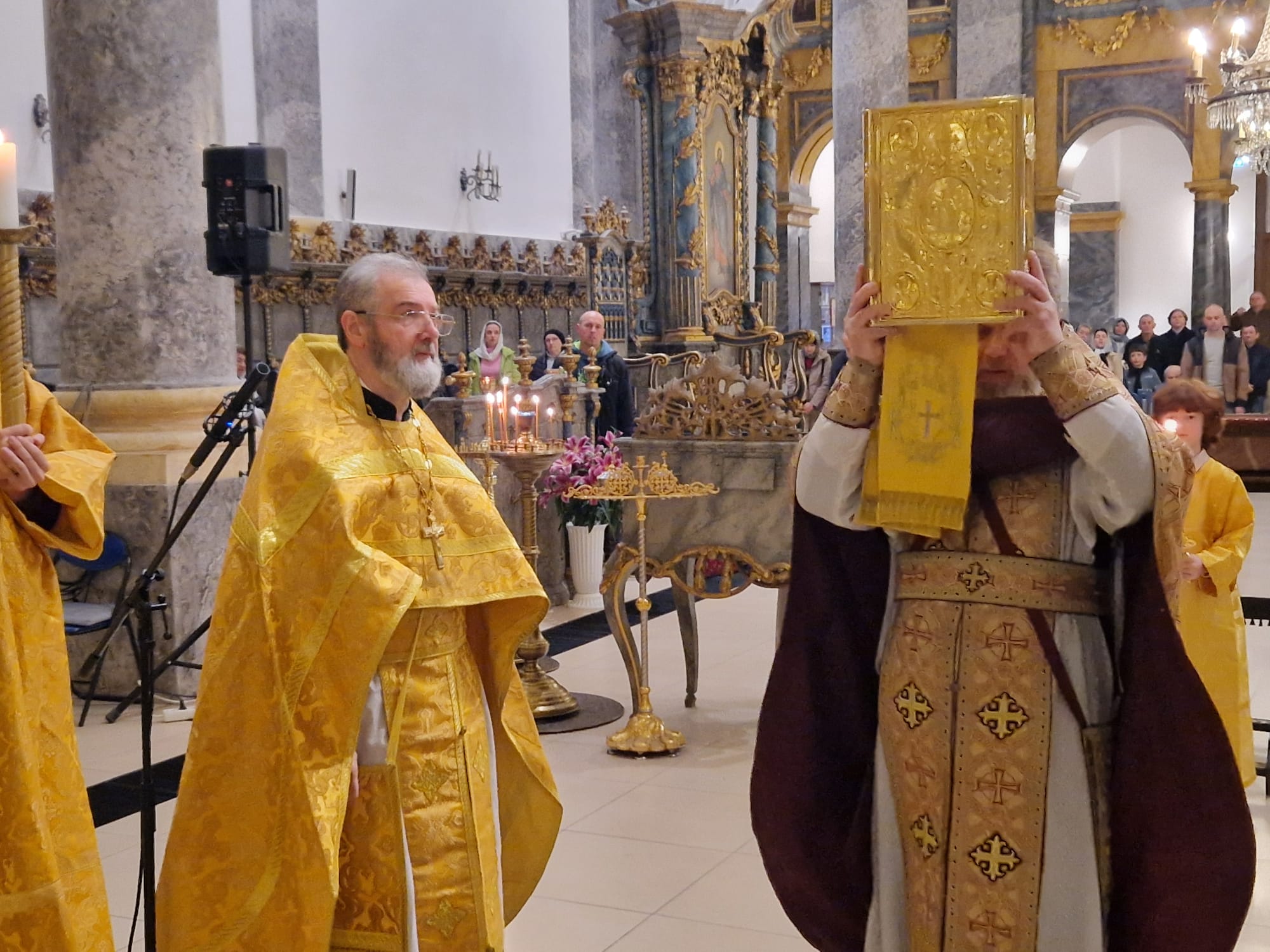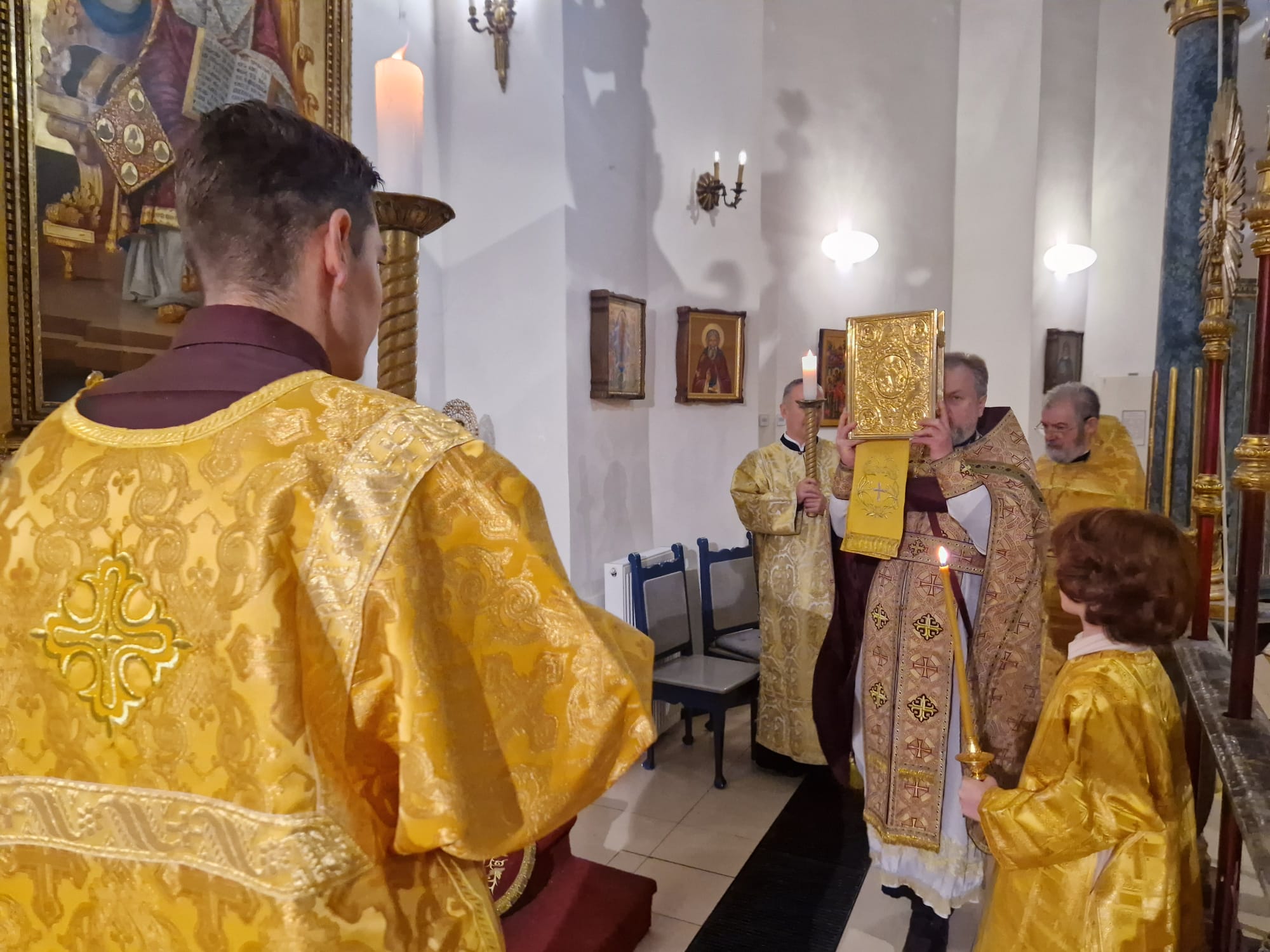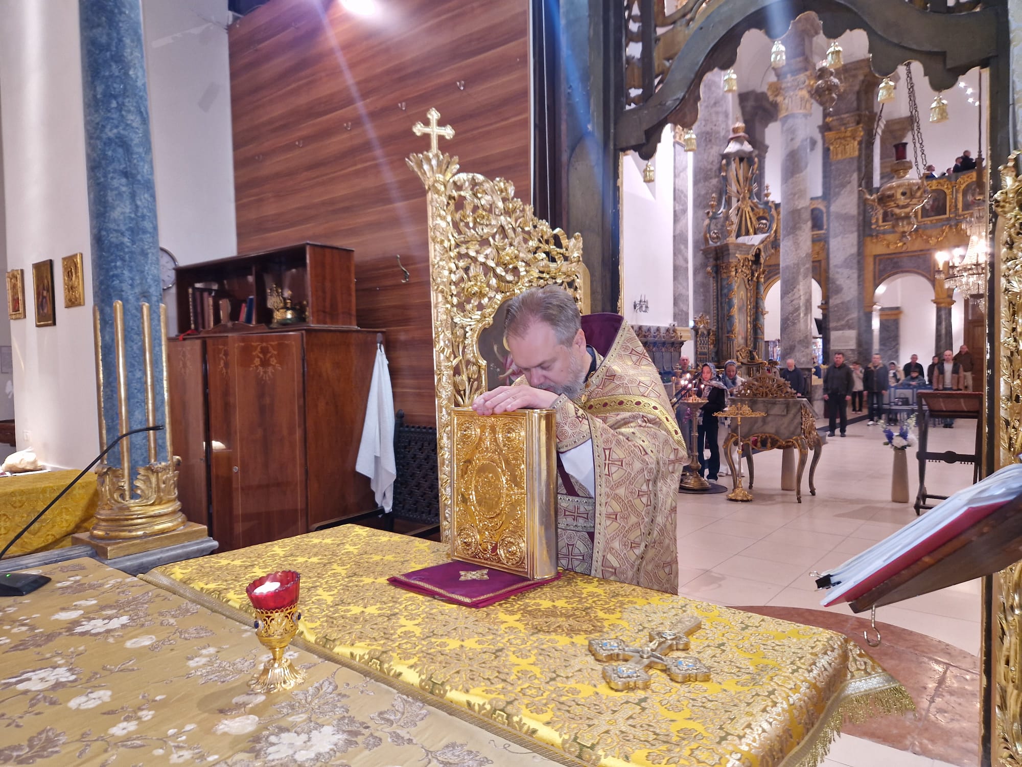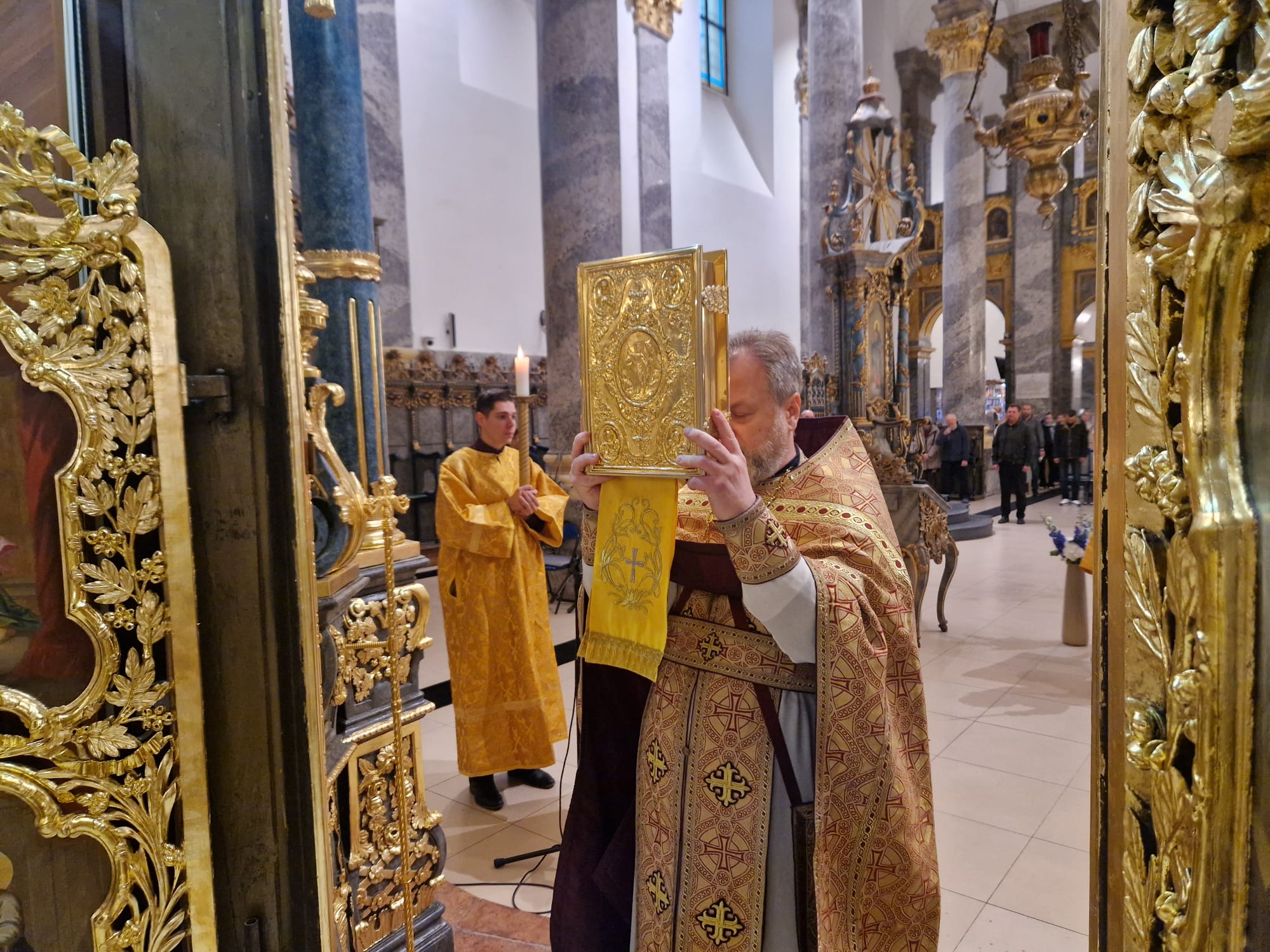Утром 5 октября 2025 года, в Неделю 17-ю по Пятидесятнице, в Свято- Троицком приходе Успенского кафедрального собора г. Будапешта состоялась Божественная литургия, возглавил которую настоятель прихода иерей Димитрий Корнилов. Ему сослужил священник прихода, советник-помощник правящего архиерея Венгерской епархии Святослав Булах.