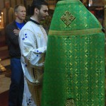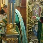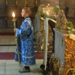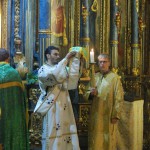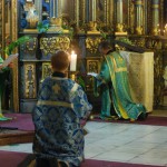 Полы и стены Успенского собора храма были устланы травой и березовыми ветками. Зеленый цвет — это символ обновления, символ начала. Этот обычай идет еще от Ветхозаветной Церкви.