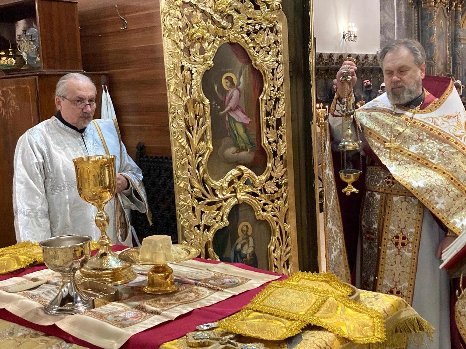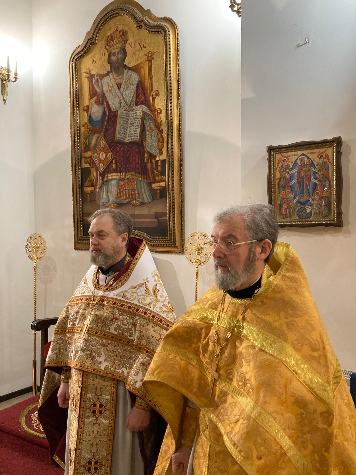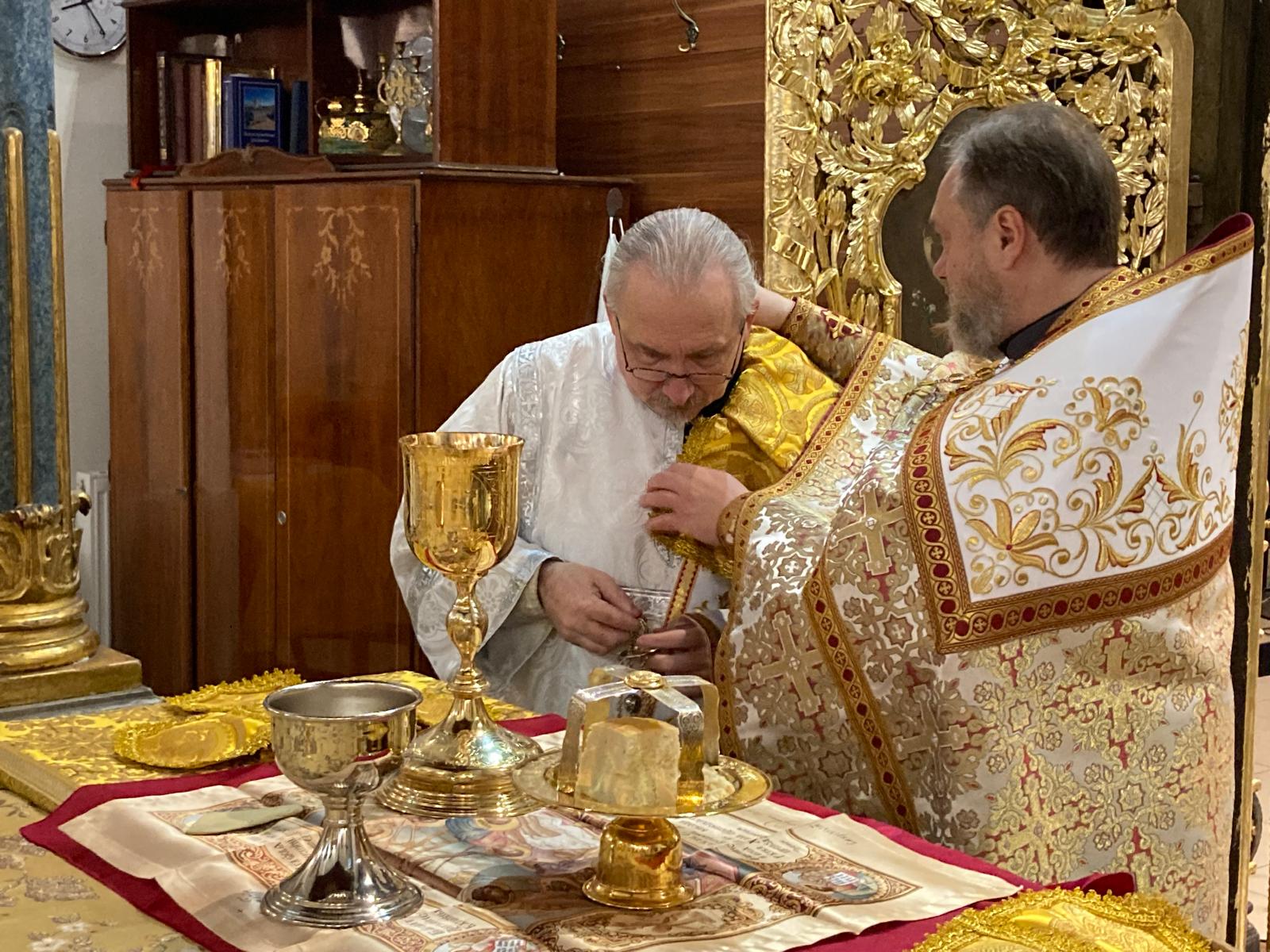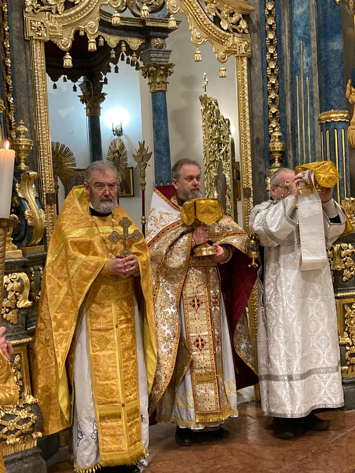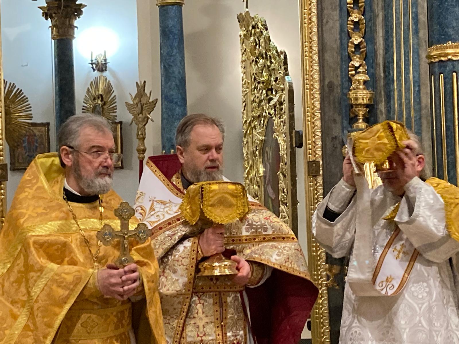 По завершении воскресной Божественной литургии, после причащения прихожан, он поздравил молящихся с воскресным днем, причастников с принятием Святых Христовых Тайн, именинников с днем Ангела, после чего преподал всем свое пастырское благословение.