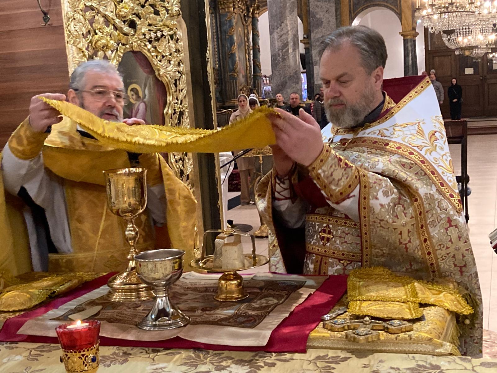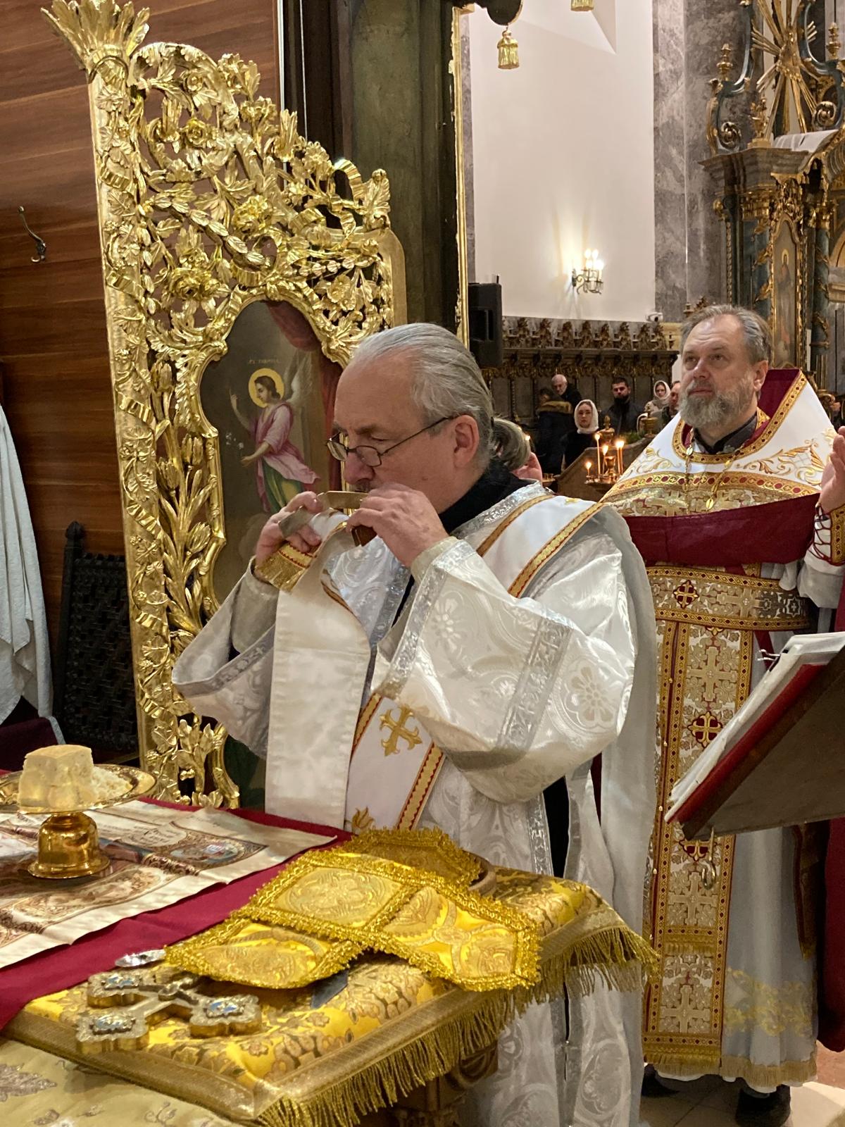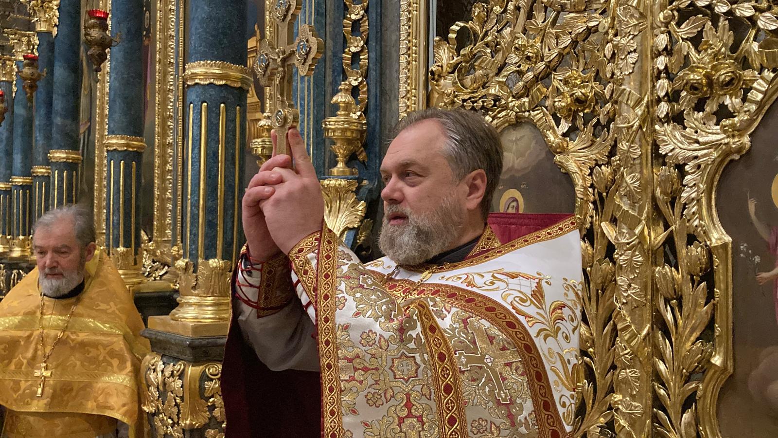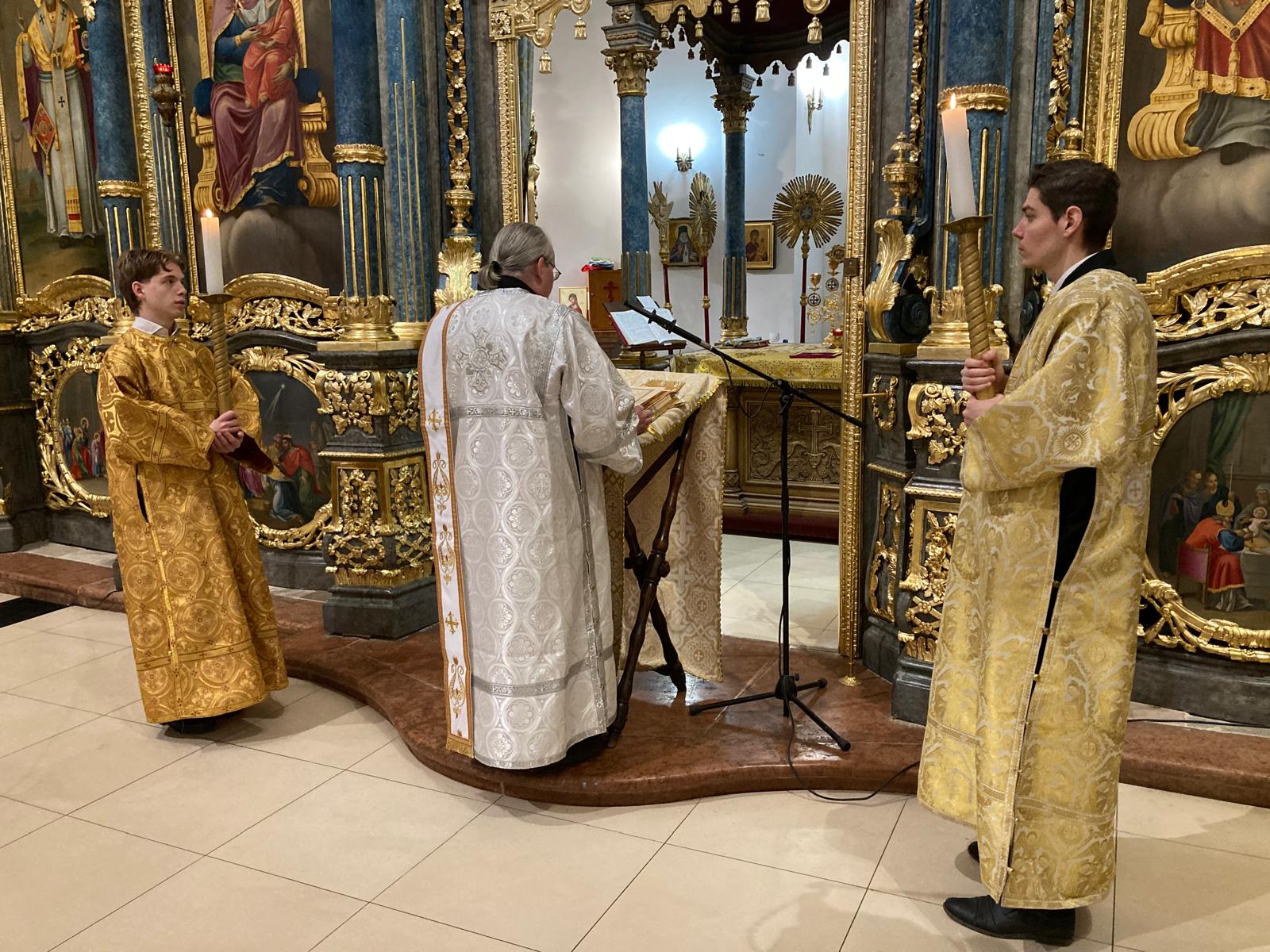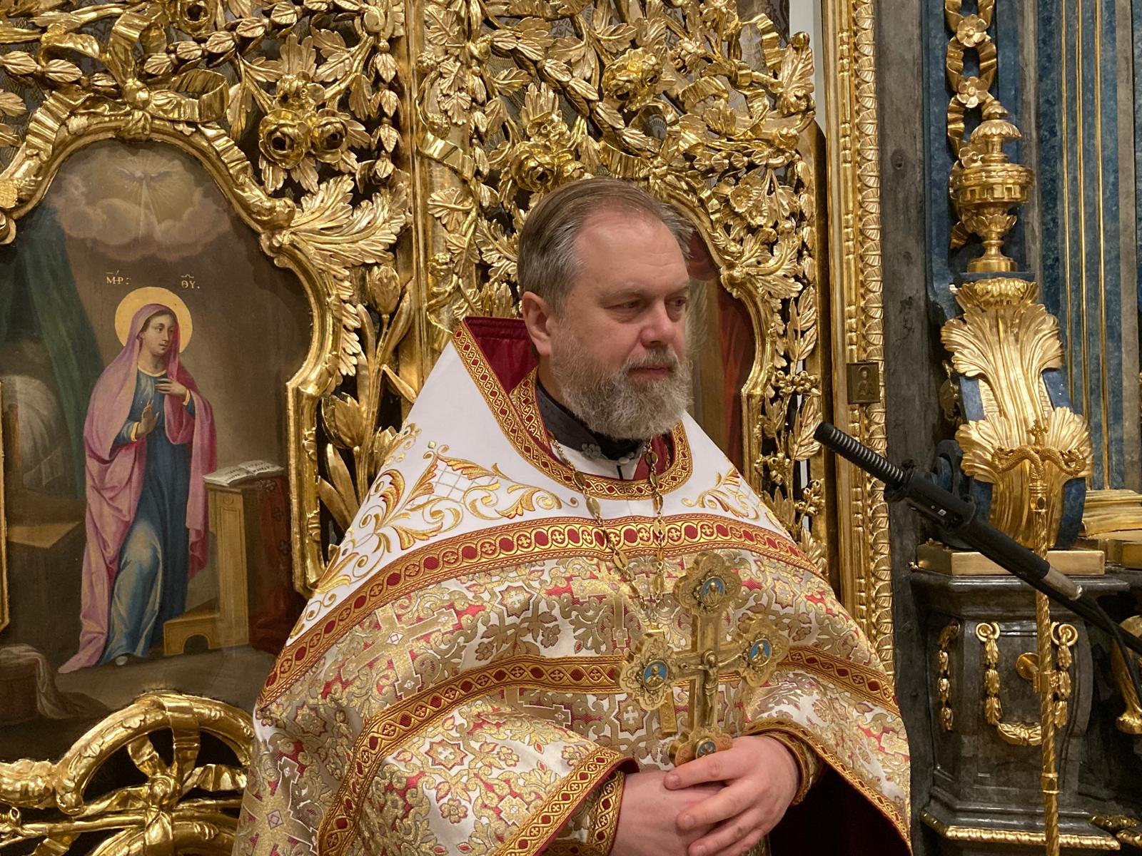 По завершении воскресной Божественной литургии, после причащения прихожан, он поздравил молящихся с воскресным днем, причастников с принятием Святых Христовых Тайн, именинников с днем Ангела, после чего преподал всем свое пастырское благословение.