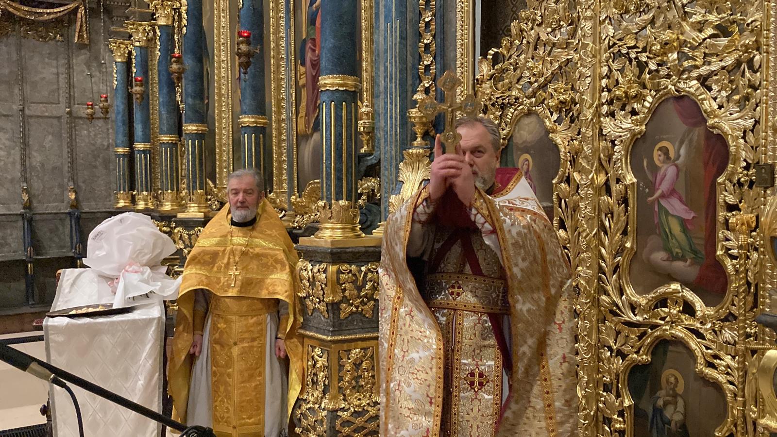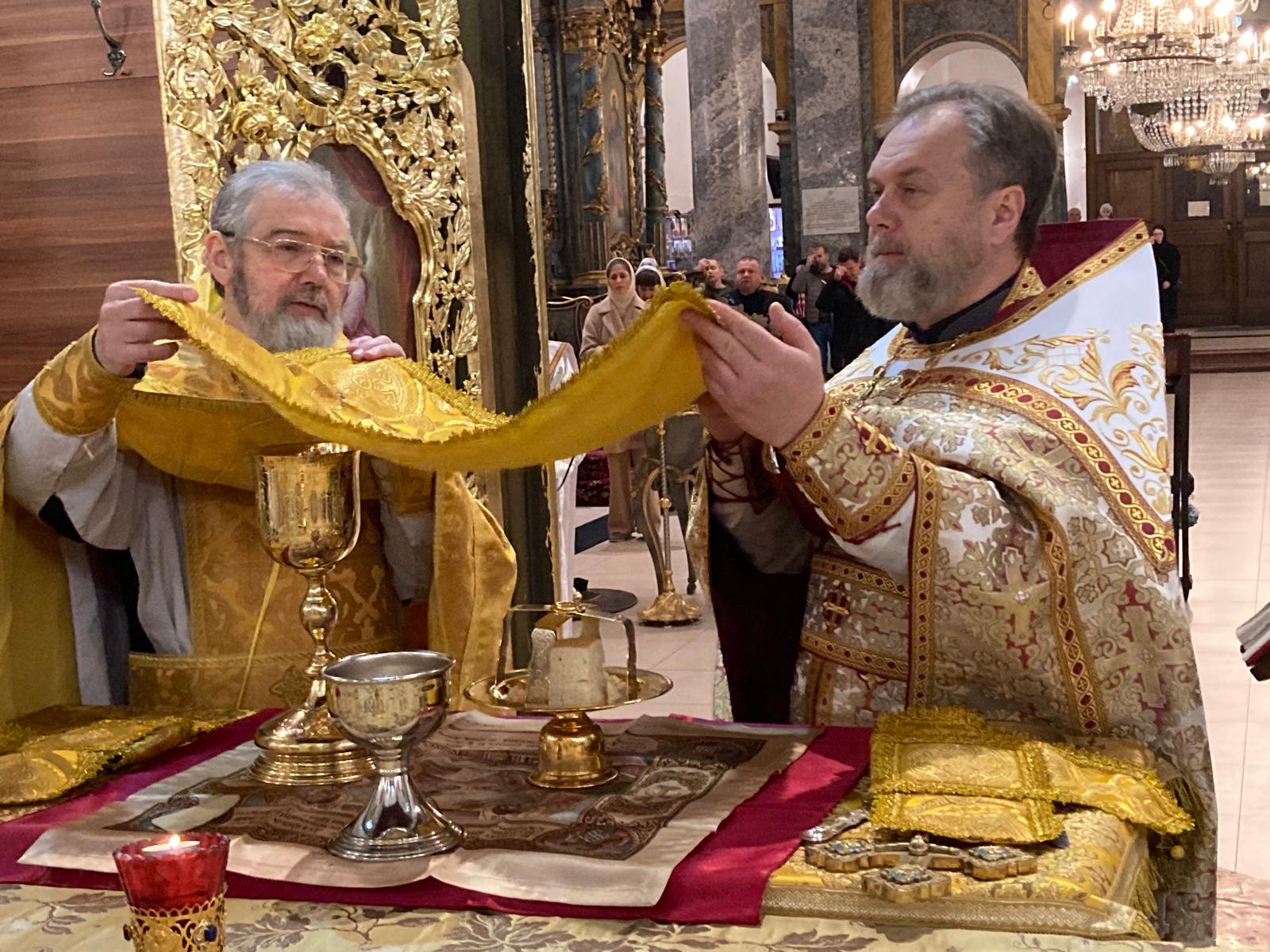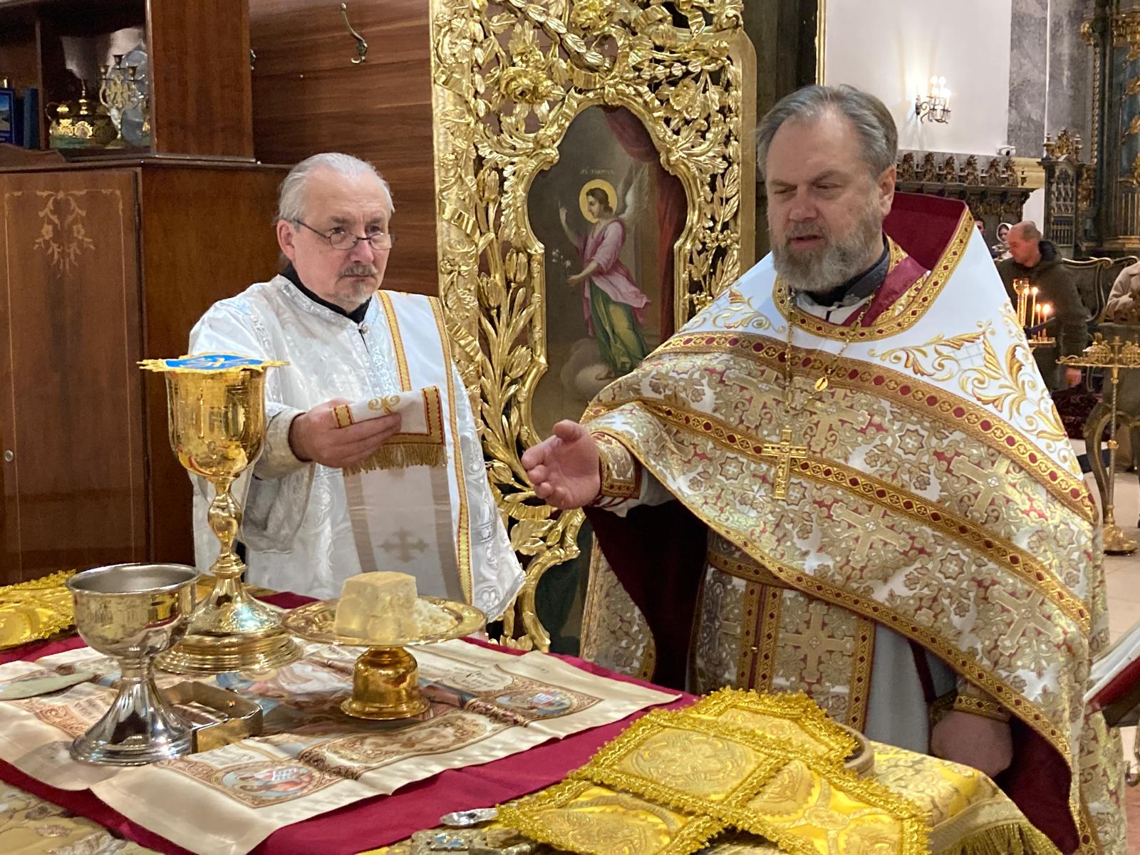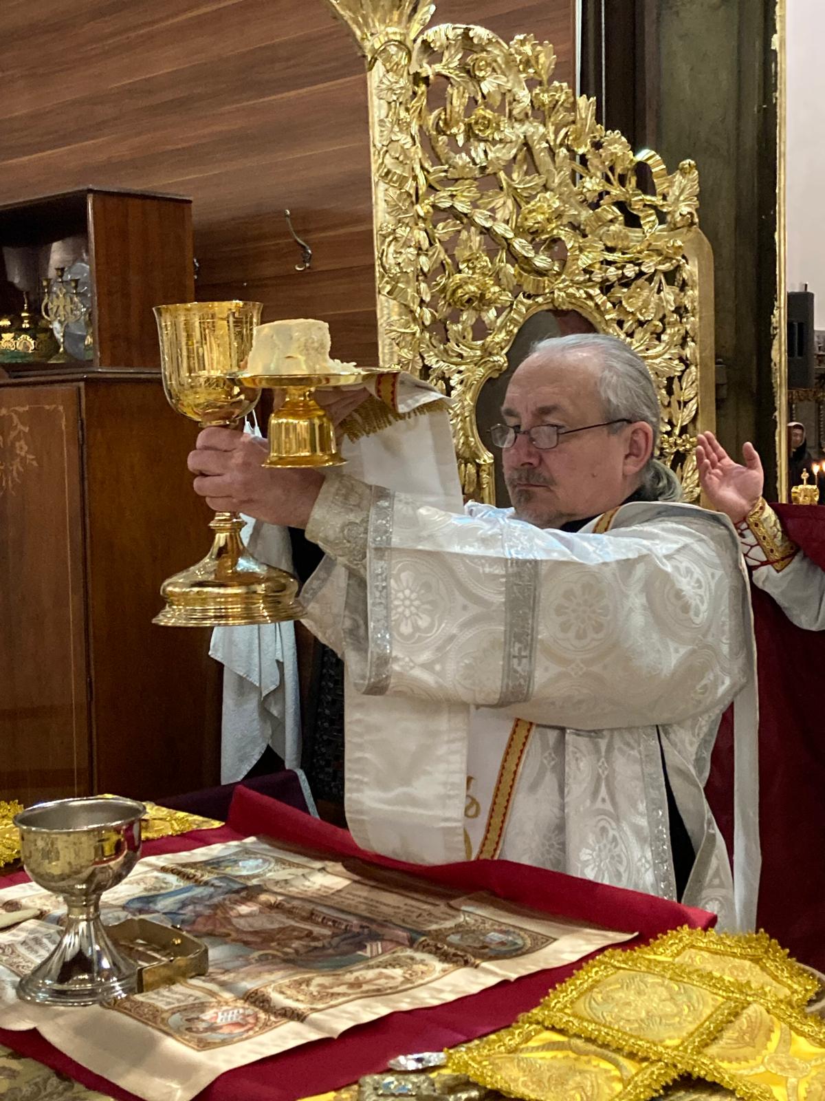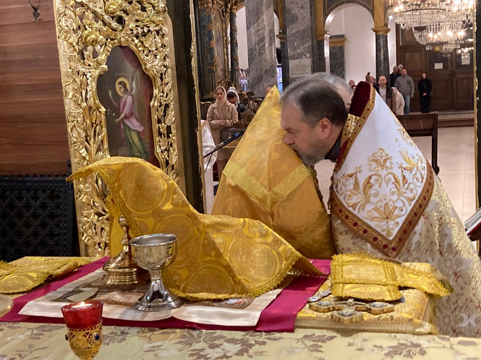 По завершении воскресной Божественной литургии, после причащения прихожан, он поздравил молящихся с воскресным днем, причастников с принятием Святых Христовых Тайн, именинников с днем Ангела, после чего преподал всем свое пастырское благословение.