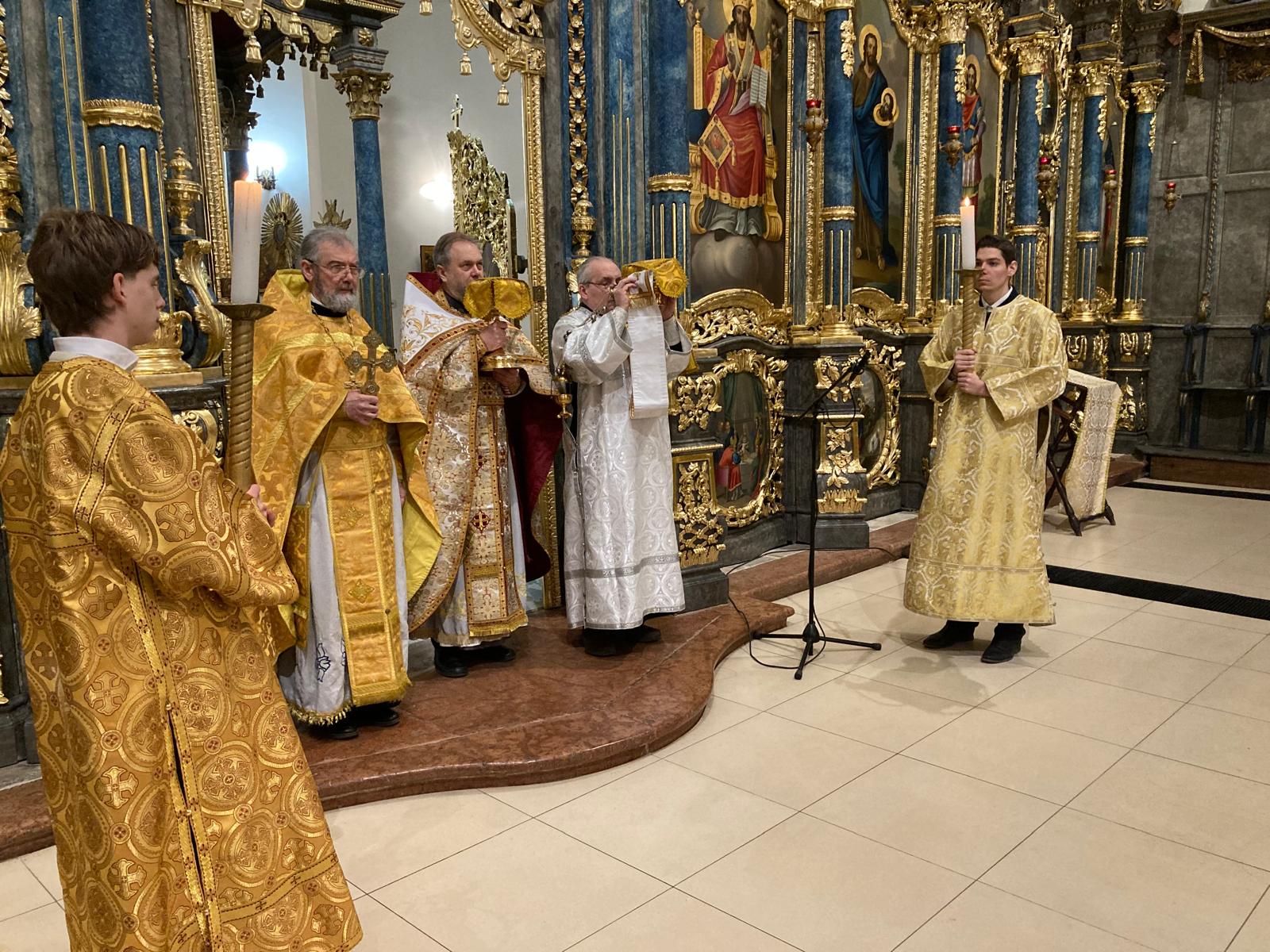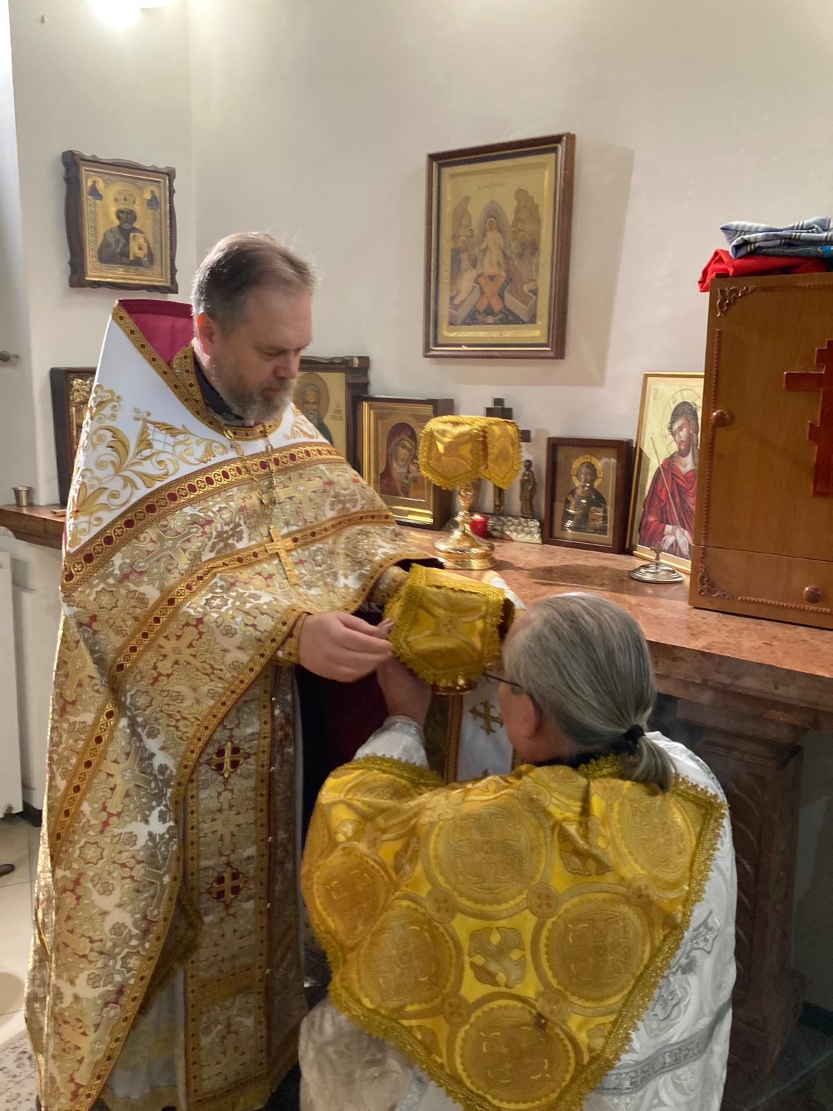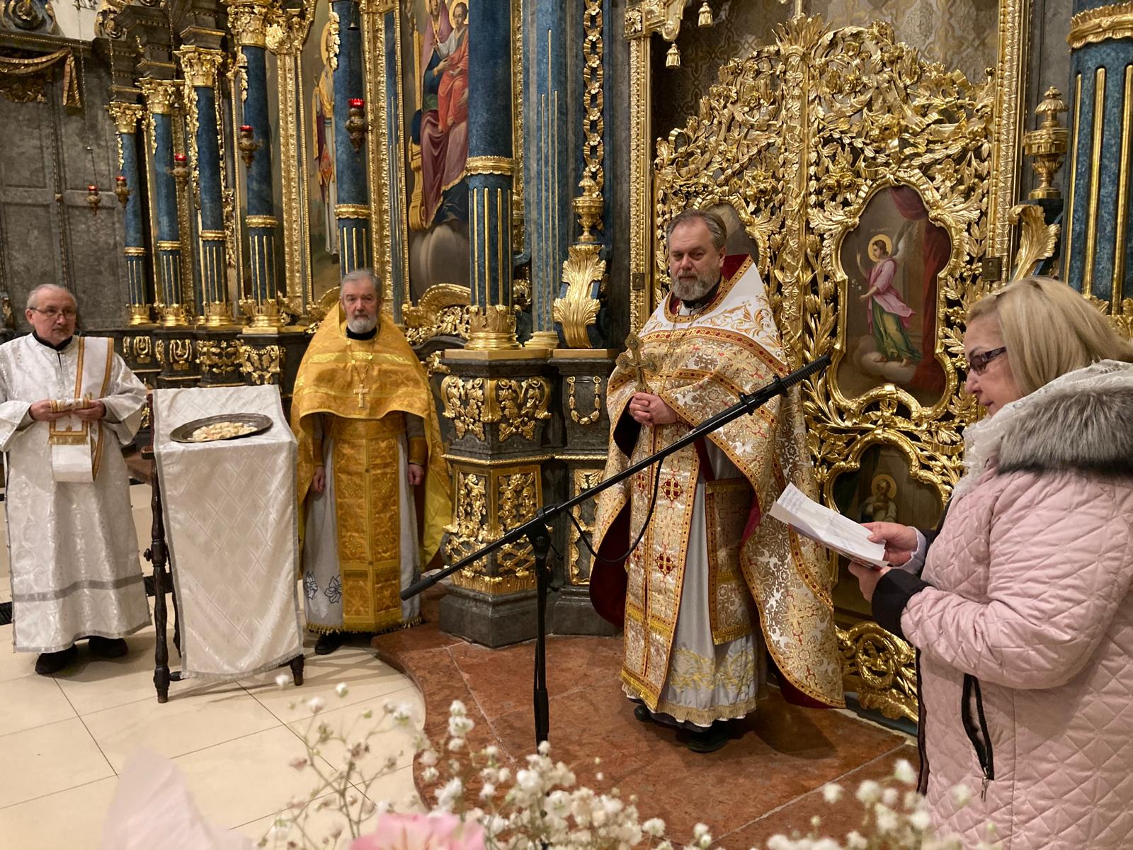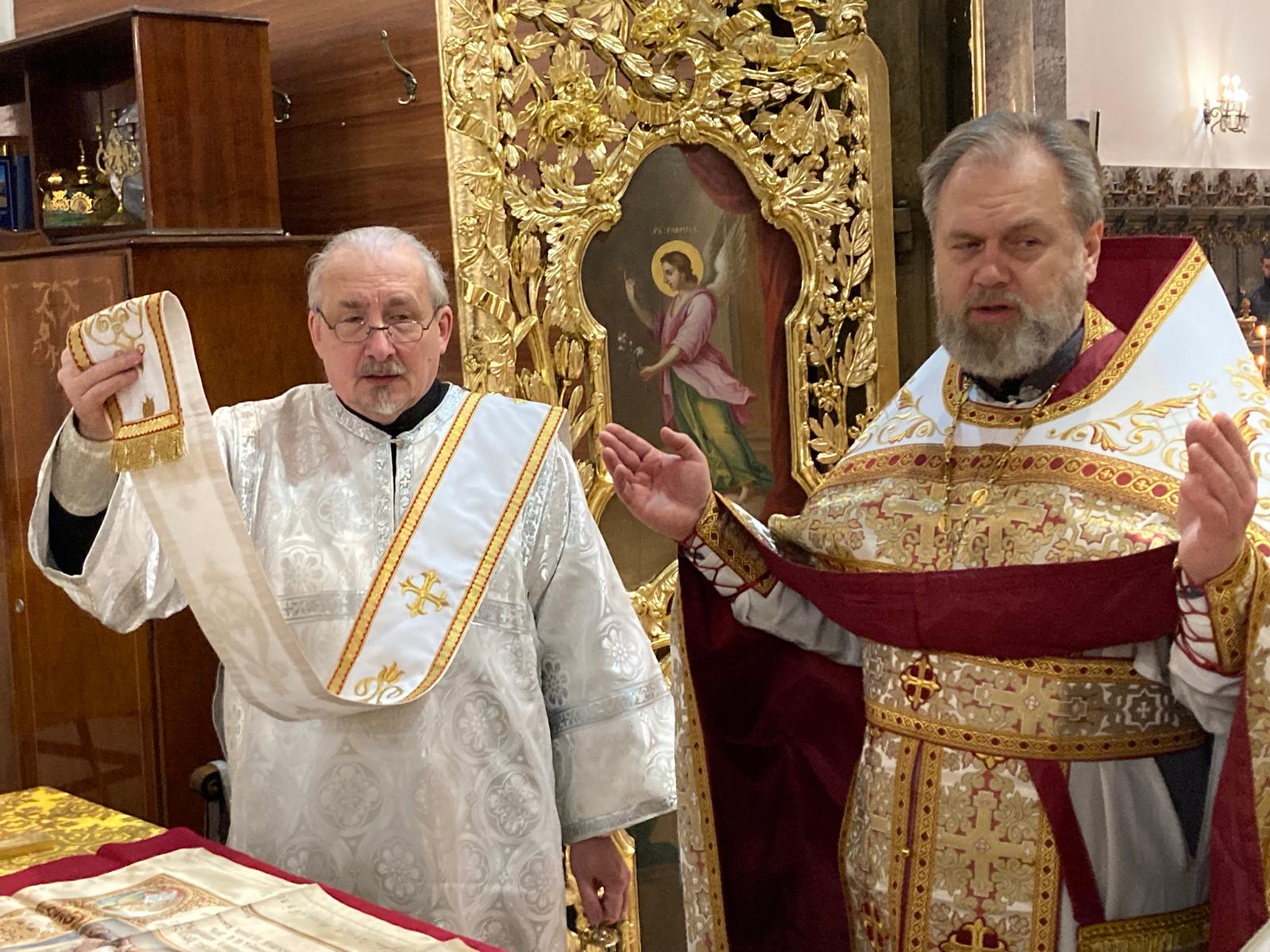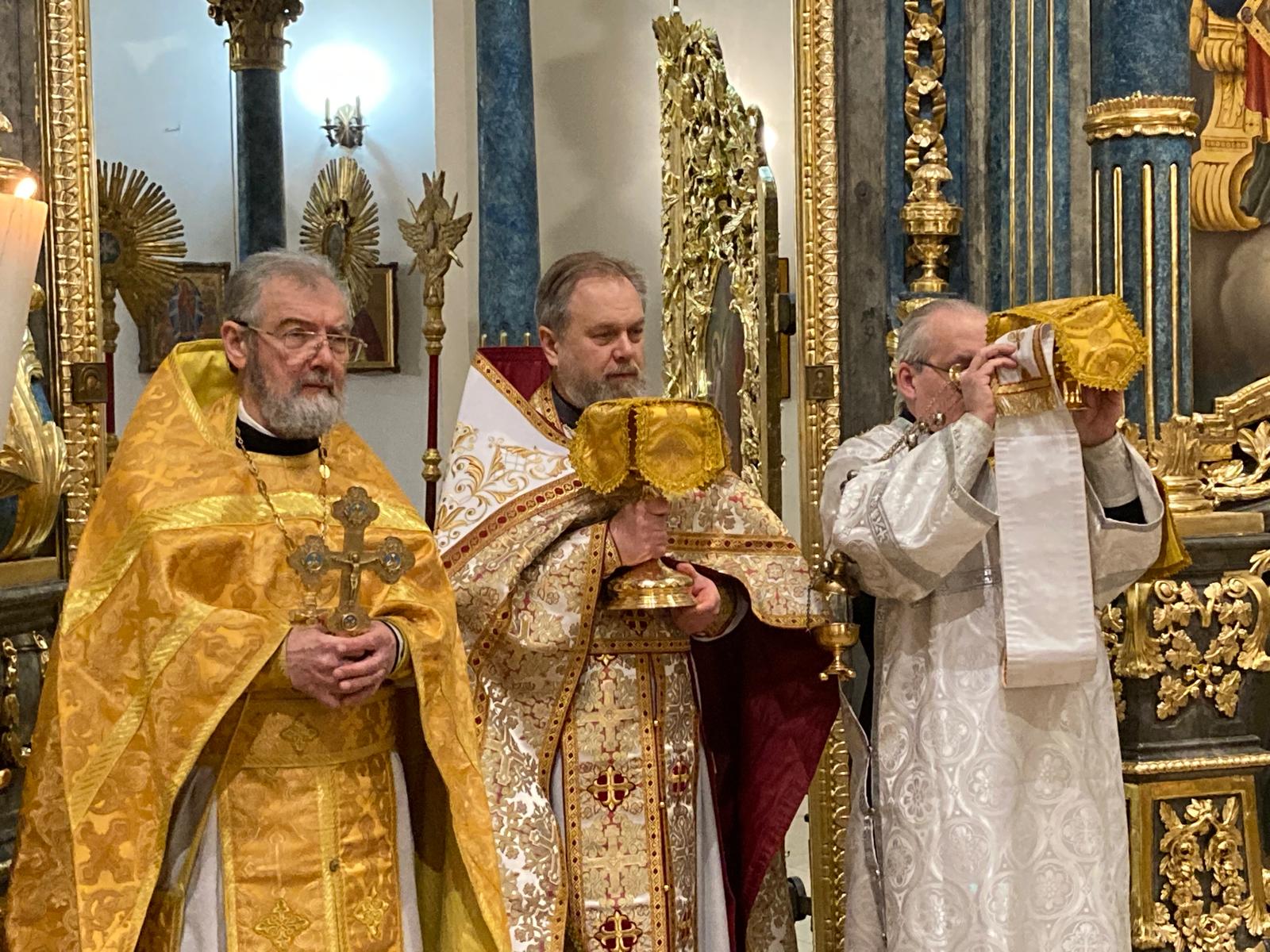 По завершении воскресной Божественной литургии, после причащения прихожан, он поздравил молящихся с воскресным днем, причастников с принятием Святых Христовых Тайн, именинников с днем Ангела, после чего преподал всем свое пастырское благословение.