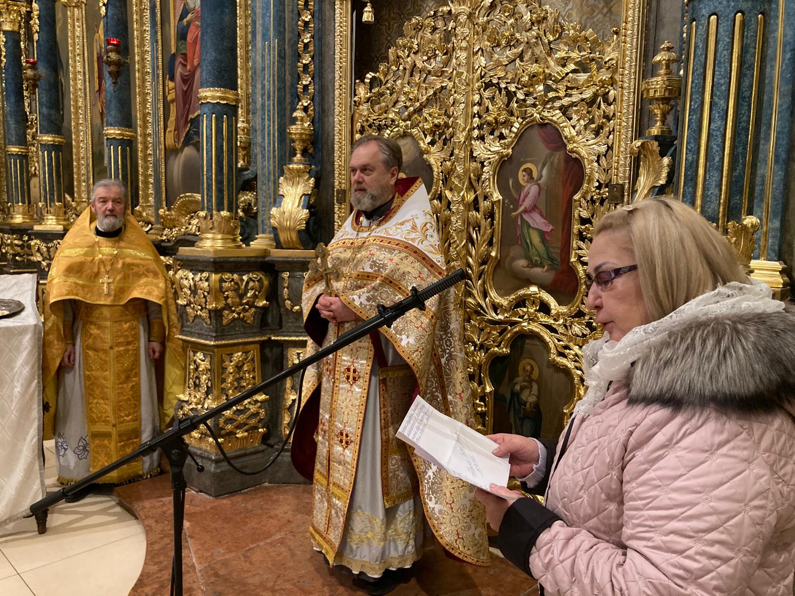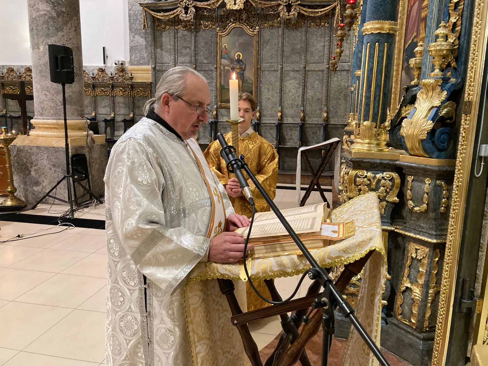 За богослужением было прочитано апостольское послание, в котором святой Павел призывает христиан Эфесской Церкви к духовной брани с врагом рода человеческого, который ведет ее не открыто, но с великой хитростью. Указав на свойства и многочисленность врагов, святой апостол побуждает последователей Христовых к большой осторожности. Он говорит, что в этой борьбе для защиты нужно облечься во всеоружие Божие – добродетели, которые подробно перечислил, подчеркнув, что ими необходимо воспользоваться всеми сразу, а не выборочно. Послание прочитал верующим алтарник Георгий Юревич.