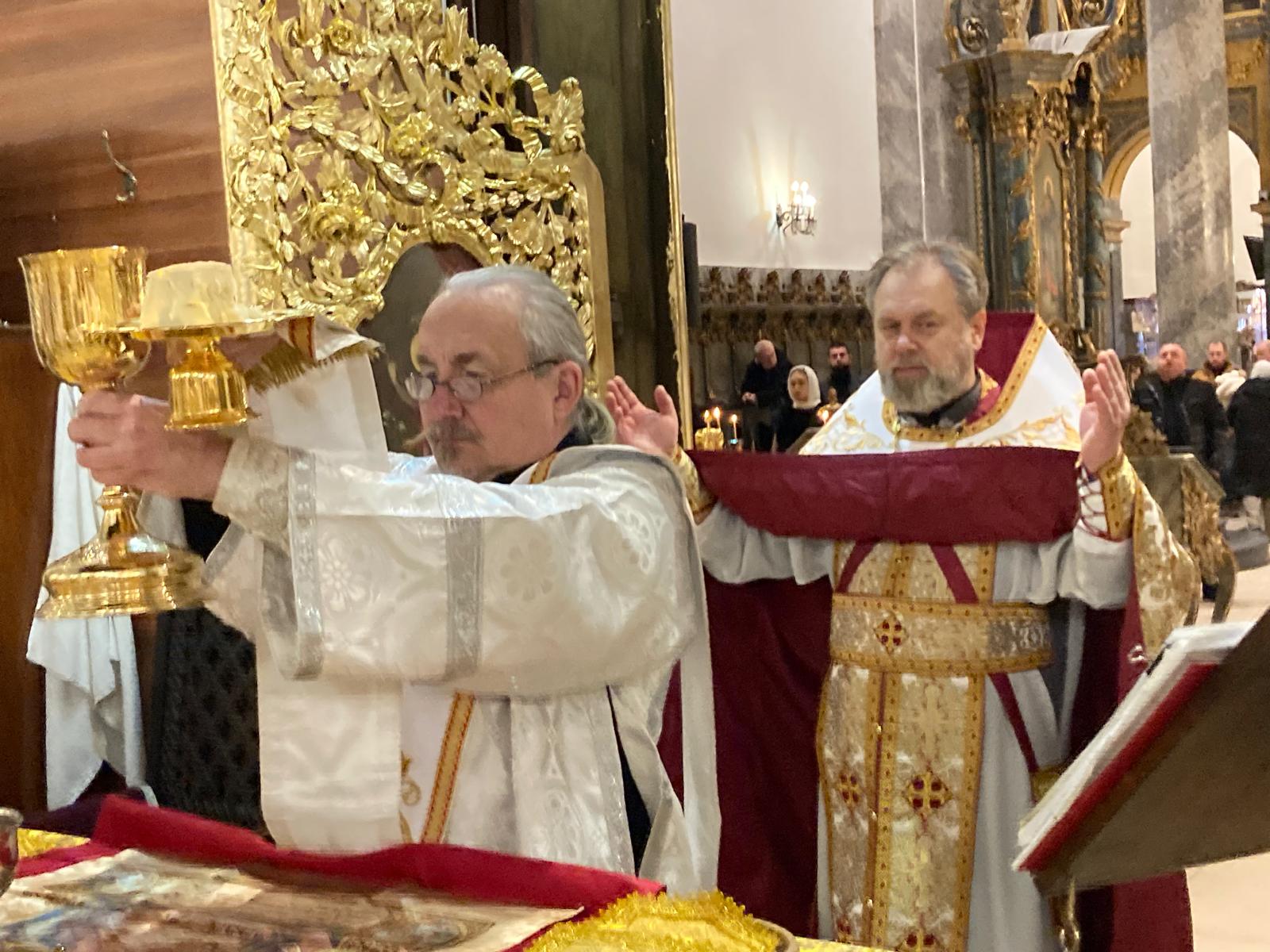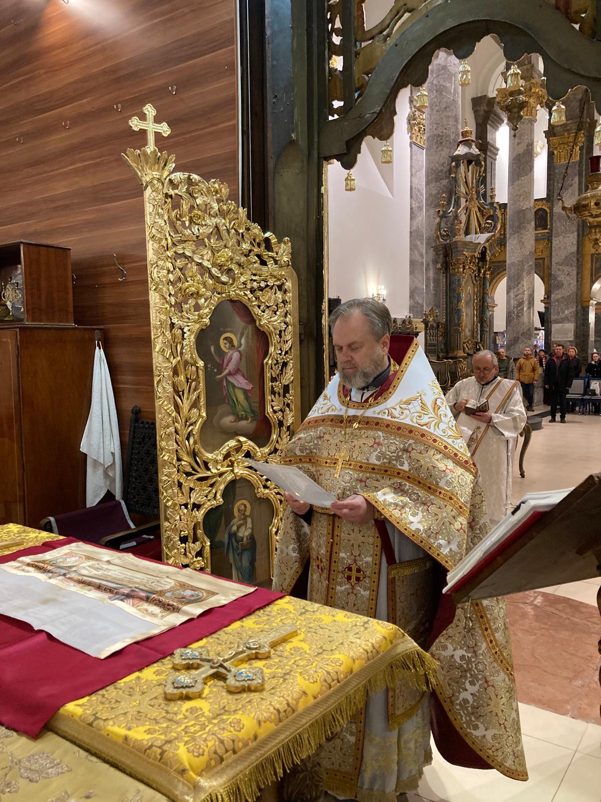 Утром 14 декабря 2025 года, в Неделю 27-ю по Пятидесятнице, в Свято- Троицком приходе Успенского кафедрального собора г. Будапешта состоялась Божественная литургия, возглавил которую настоятель прихода иерей Димитрий Корнилов. Ему сослужил священник прихода иерей Святослав Булах и диакон Геннадий Румянцев.