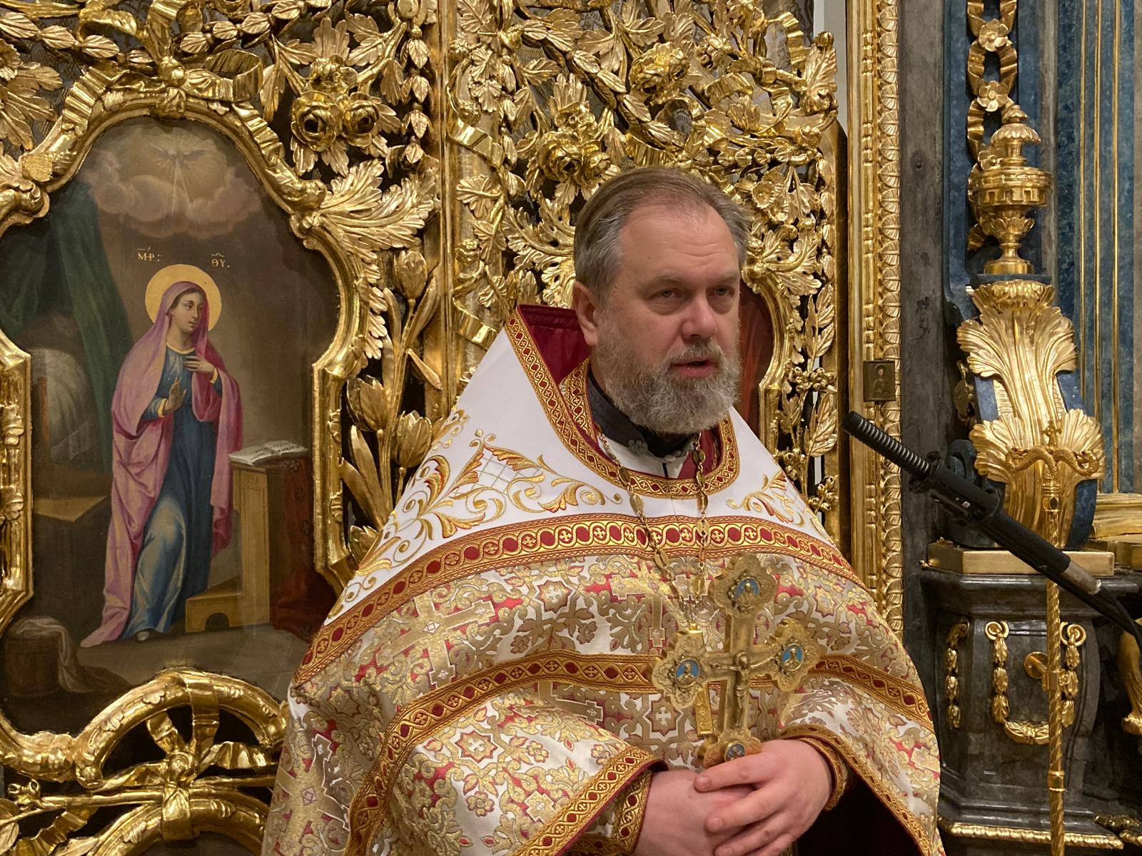 Перед выносом Святых Даров настоятель прихода иерей Димитрий обратился к прихожанам с пастырским словом на тему воскресного евангельского фрагмента.