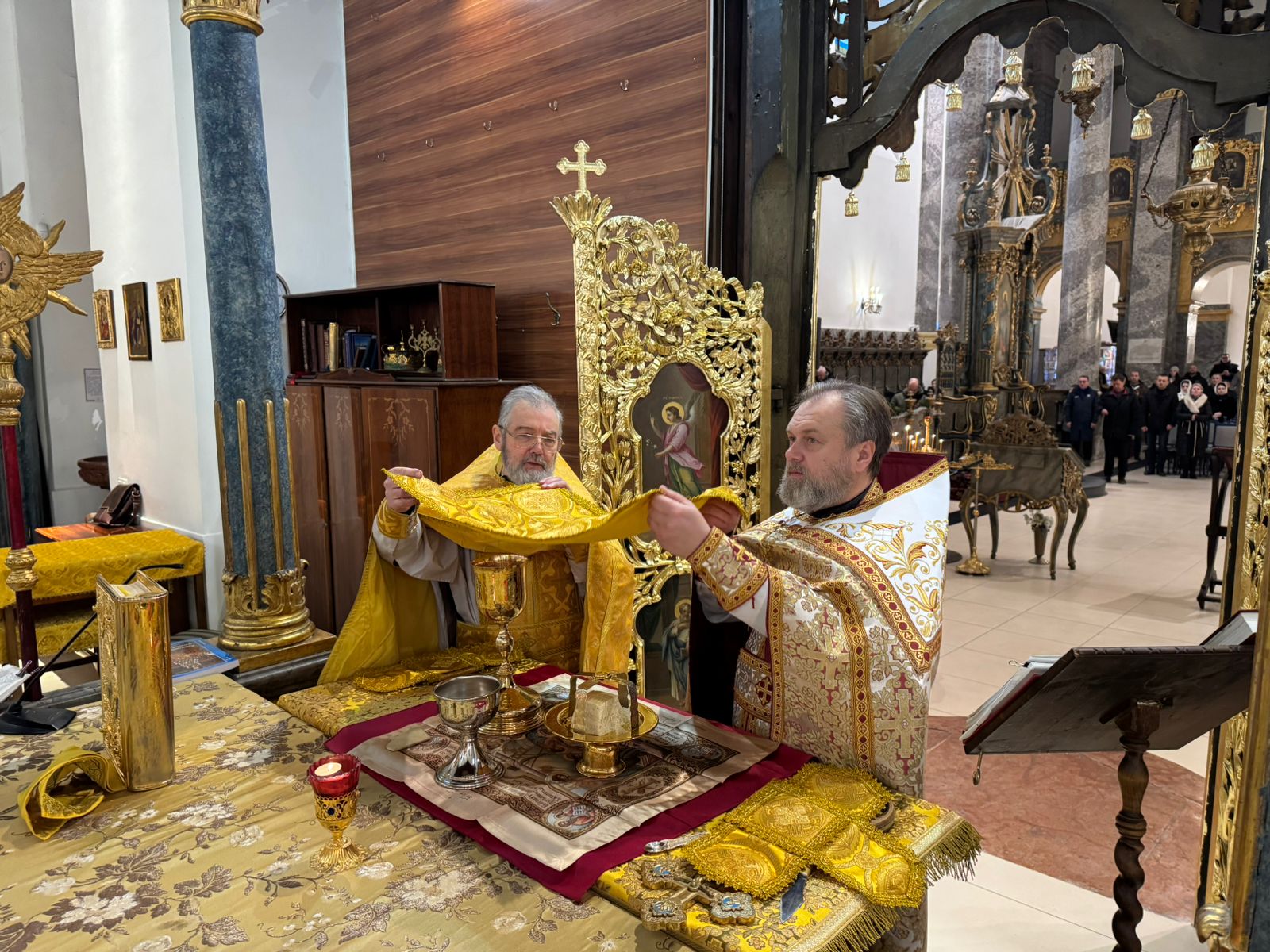 Утром 28 декабря 2025 года, в Неделю 29-ю по Пятидесятнице, в Свято- Троицком приходе Успенского кафедрального собора г. Будапешта состоялась Божественная литургия, возглавил которую настоятель прихода иерей Димитрий Корнилов. Ему сослужил священник прихода иерей Святослав Булах и диакон Геннадий Румянцев.