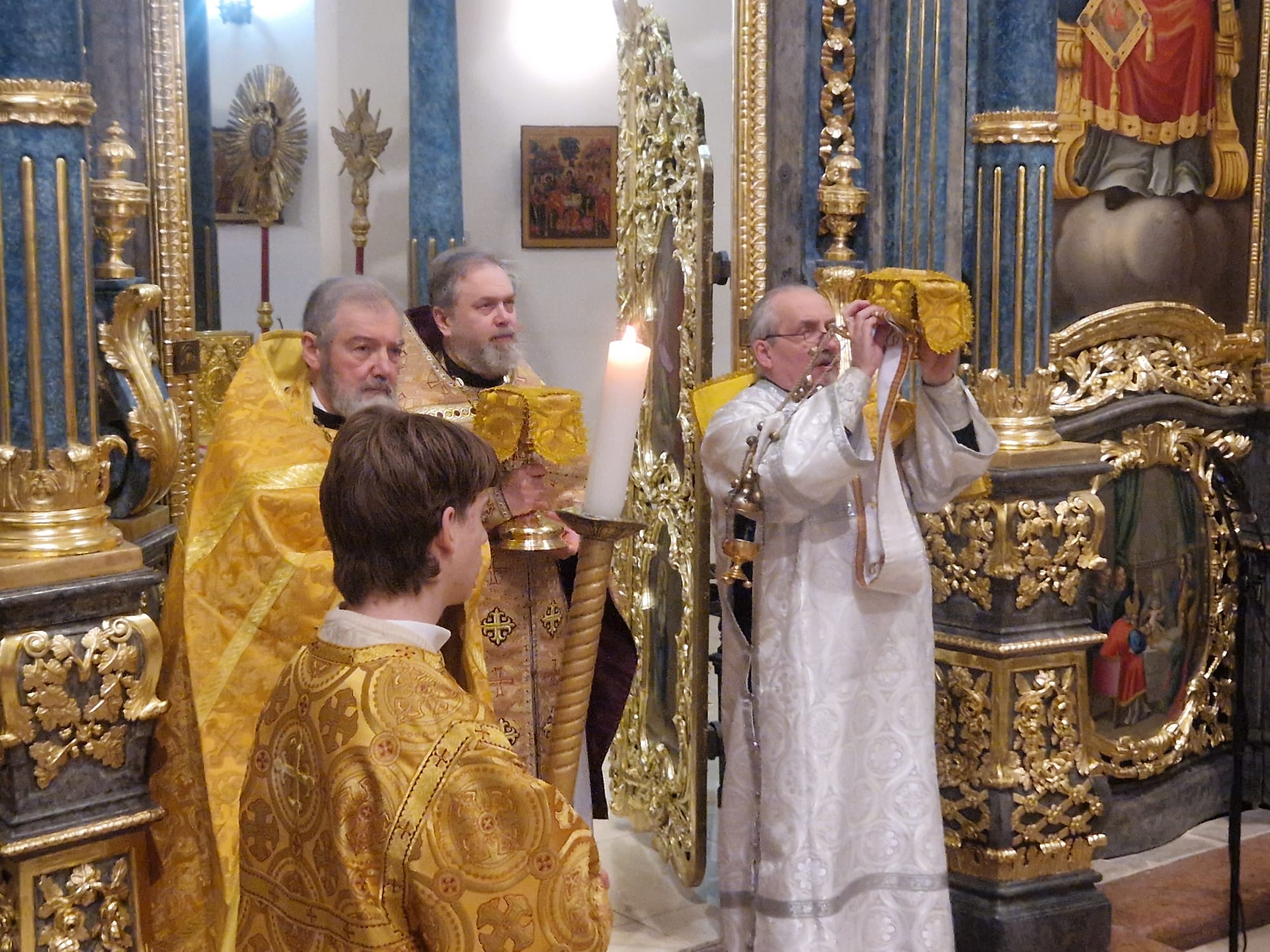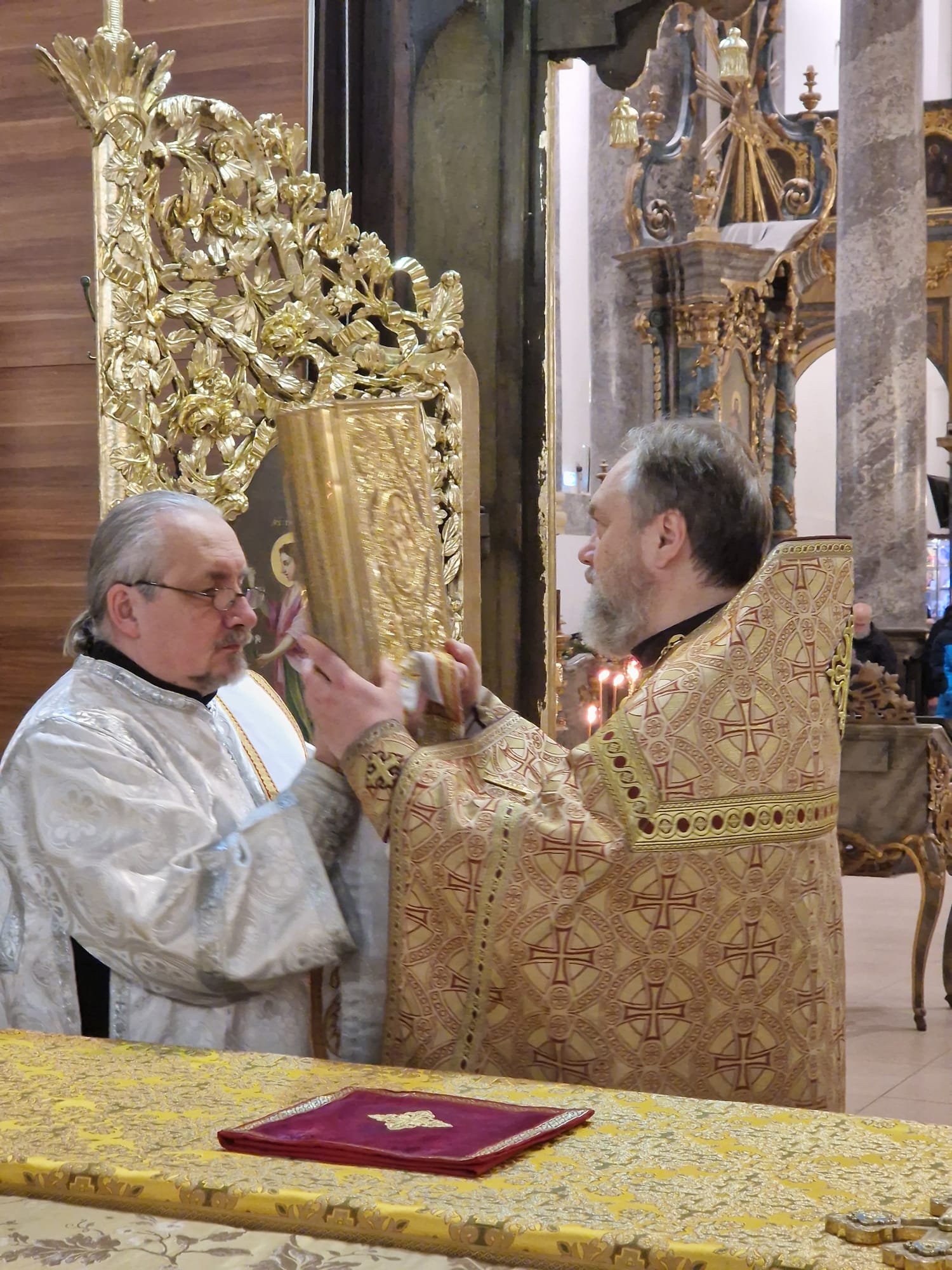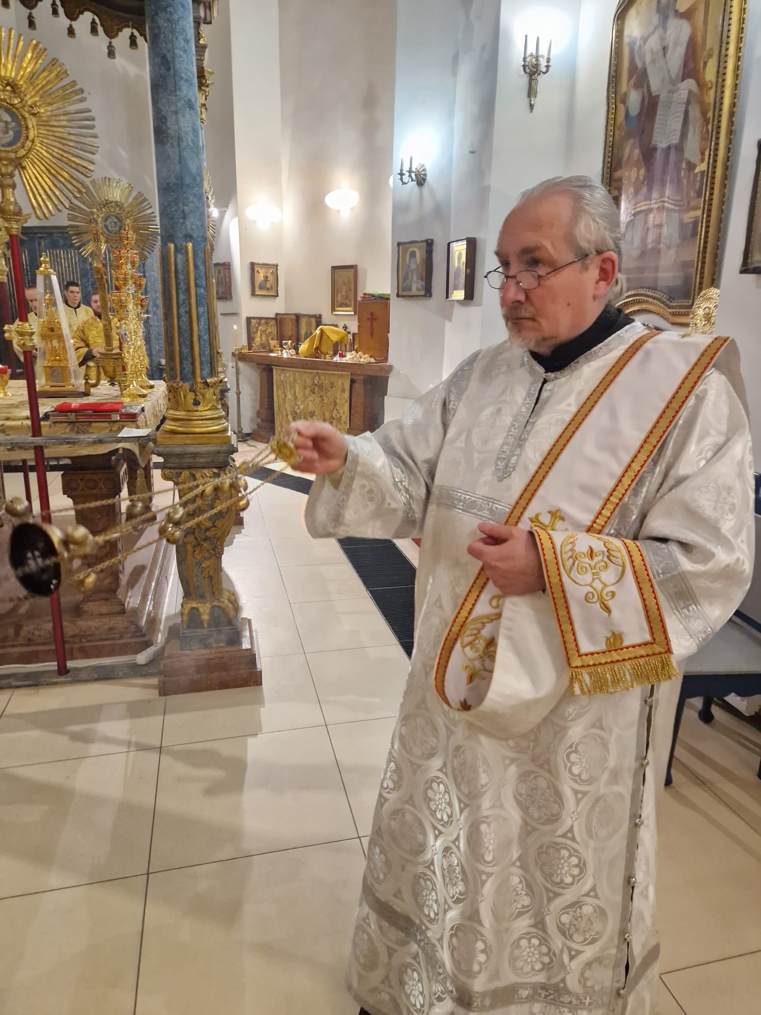 Ему сослужил священник прихода иерей Святослав Булах и диакон Геннадий Румянцев.