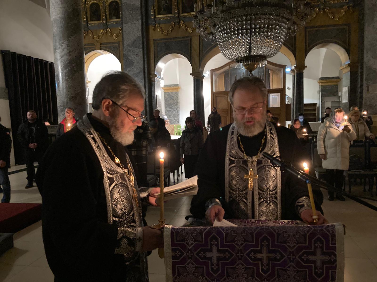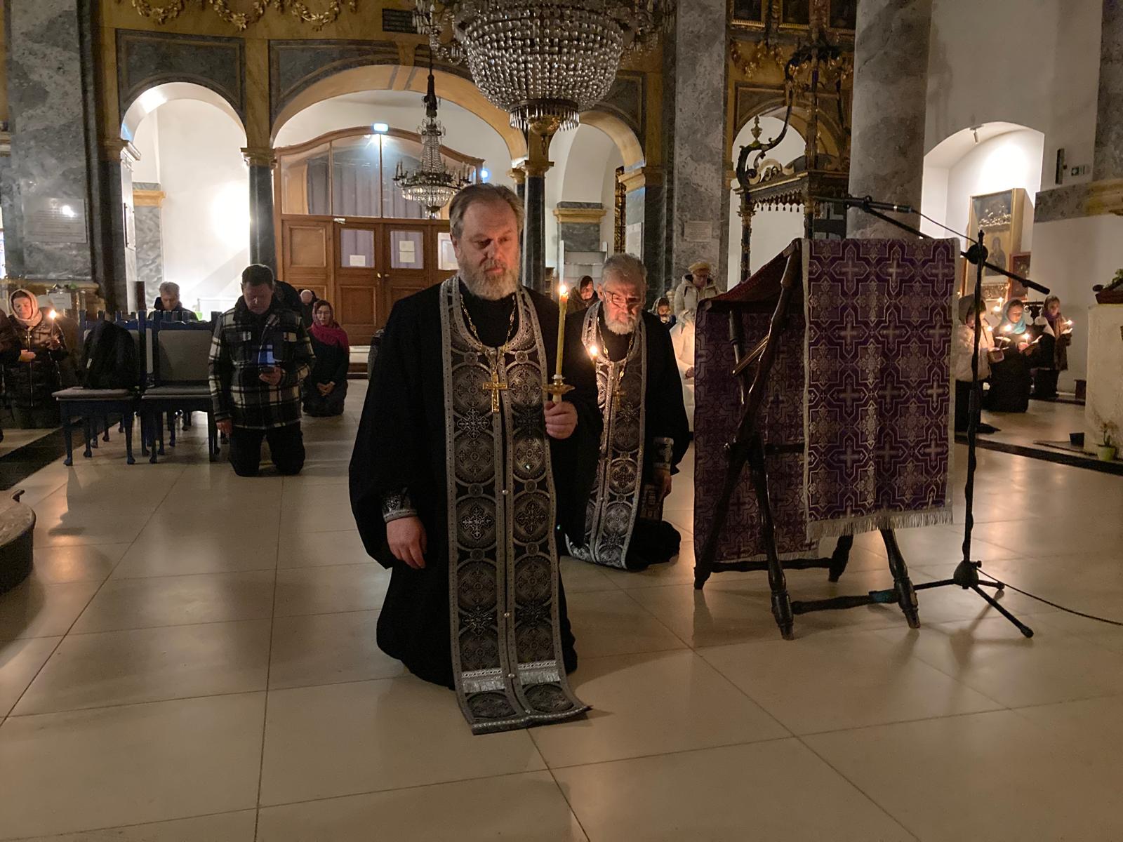 Служба понедельника Первой седмицы в нашем соборе прошла в атмосфере строгого великопостного благочестия. Особое внимание прихожан было приковано к вечернему богослужению — Великому повечерию, во время которого наши священники отец Димитрий и отец Святослав  совершил чтение первой части Великого покаянного канона преподобного Андрея Критского.