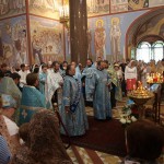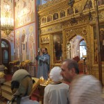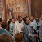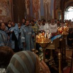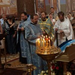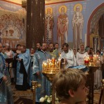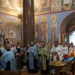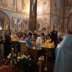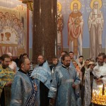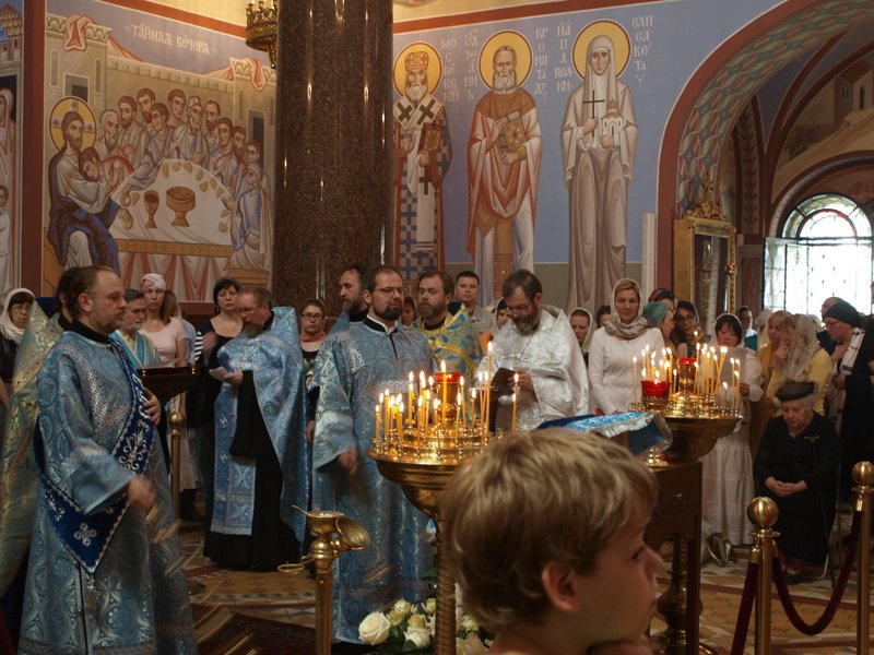 В 13 ч. настоятель собора протоиерей Владимир Тыщук вынес икону на середину собора, где она была положена на аналое. Протоиерей Владимр Тыщук в сослужении протоиерея Хризостома Пийненбурга, протоиерея Георгия Харлова (РПЦЗ), иерея Радослава Ристича, иерея Димитрия Корнилова (настоятеля прихода Святой Троицы в Будапеште) иерея Вячеслава Шибанова, иерея Святослава Булаха (клирика прихода Святой Троицы в Будапеште), протодиакона Виктора Шиловского и диакона Владислава Азевса отслужил торжественный молебен с чтением акафиста Пресвятой Богородицы. После богослужения духовенство и многочисленные молящиеся, среди которых находилась группа паломников из Будапешта, смогли приложиться к чудотворному образу, а также получили на молитвенную память маленькие иконки Курско-Коренного образа Пресвятой Богородицы.