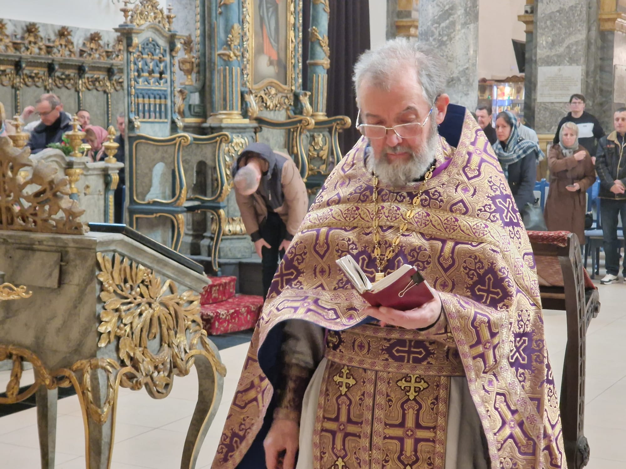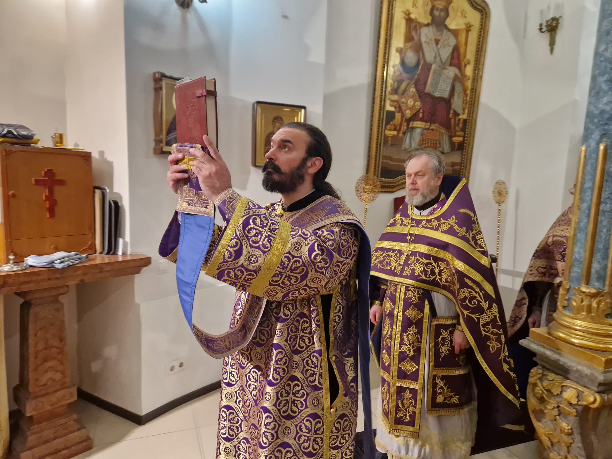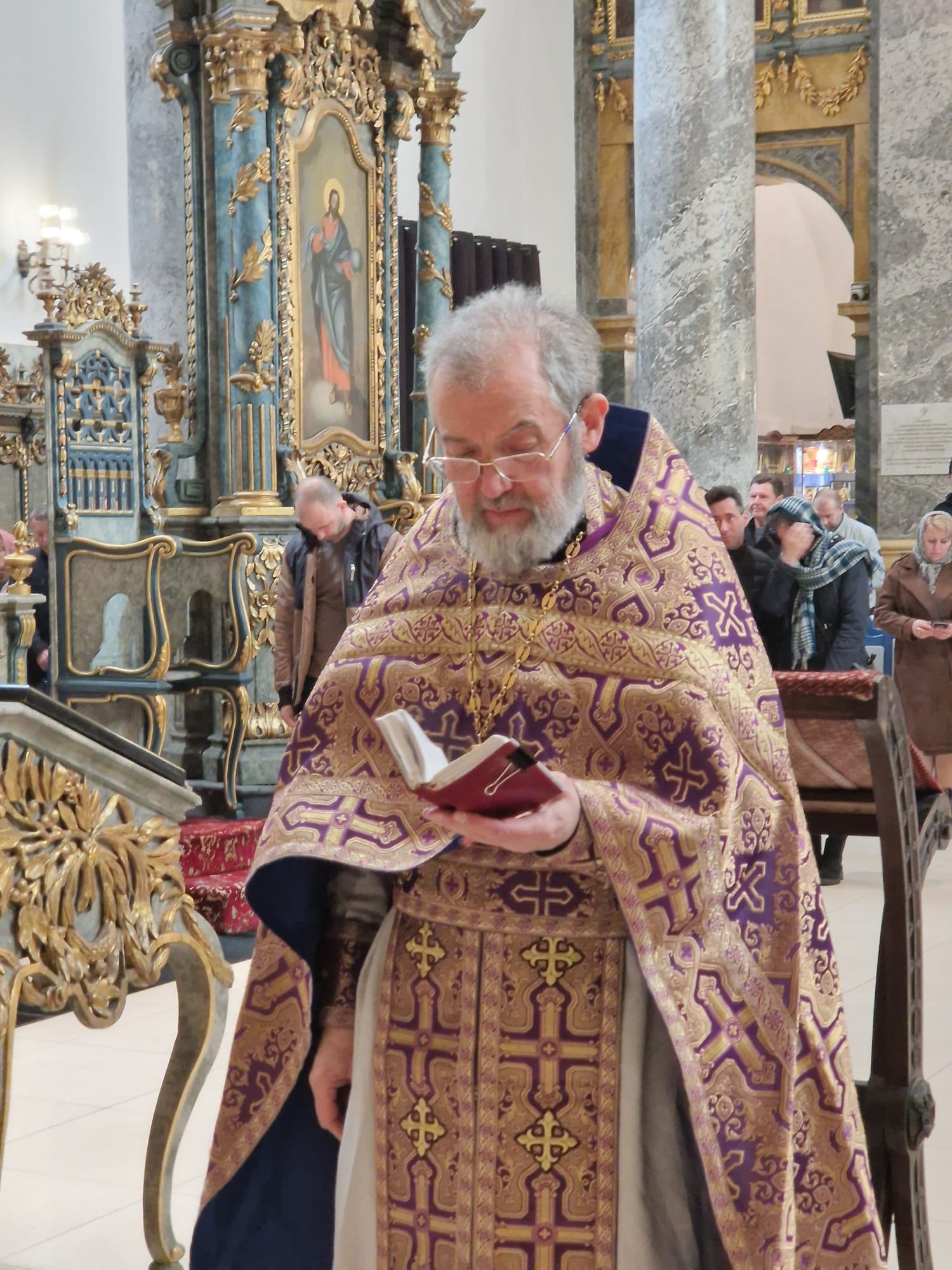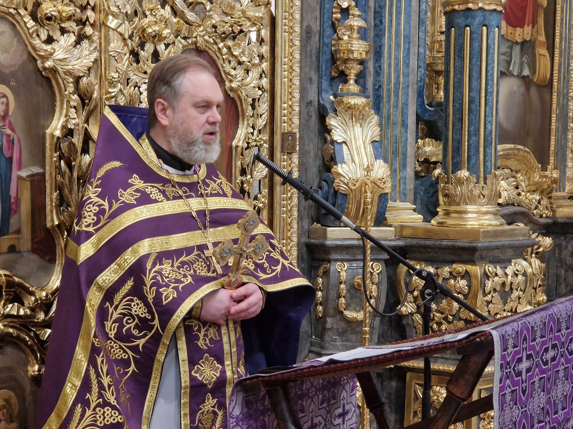 Перед выносом Святых Даров к прихожанам с проповедью обратился настоятель прихода.