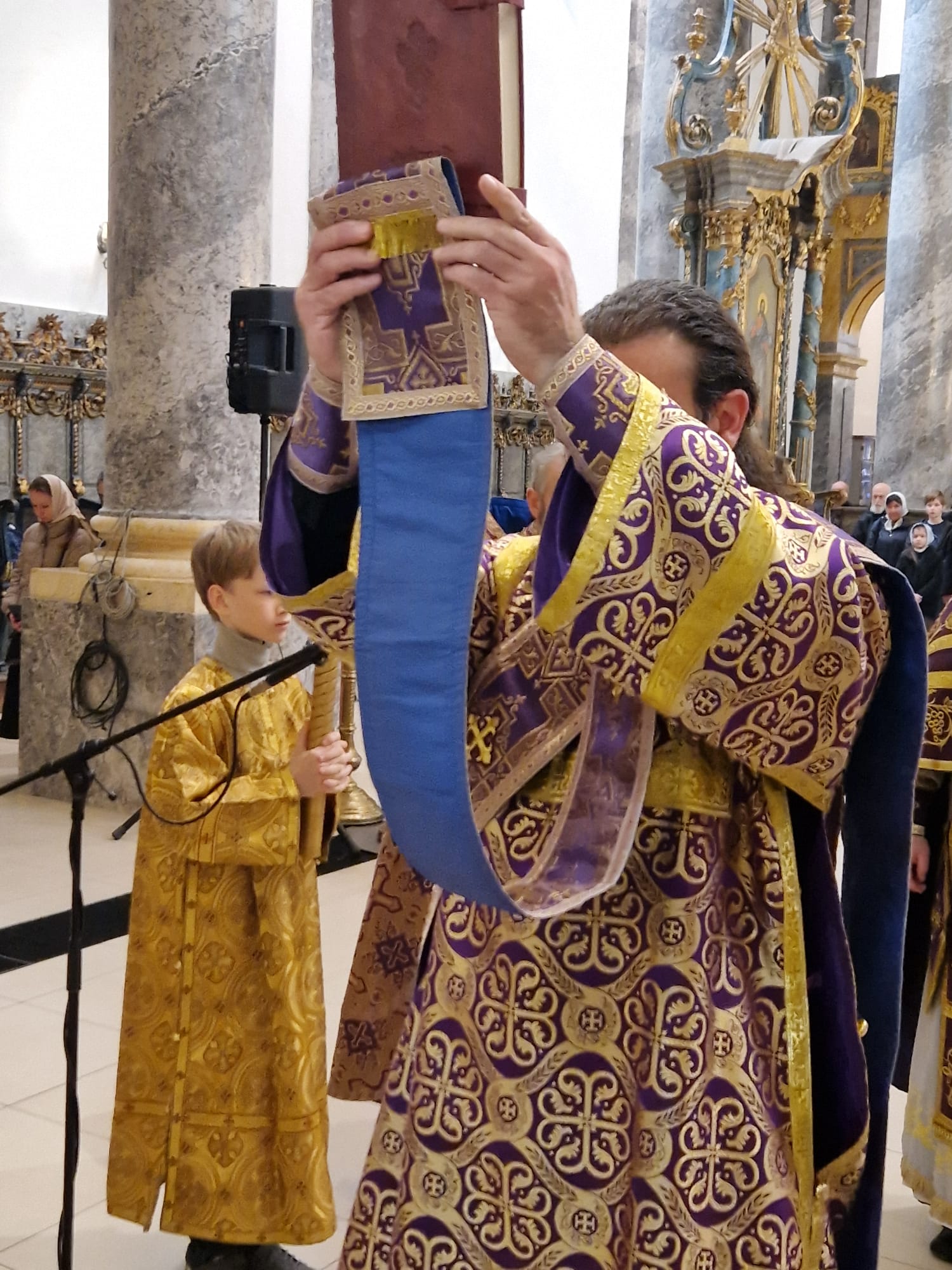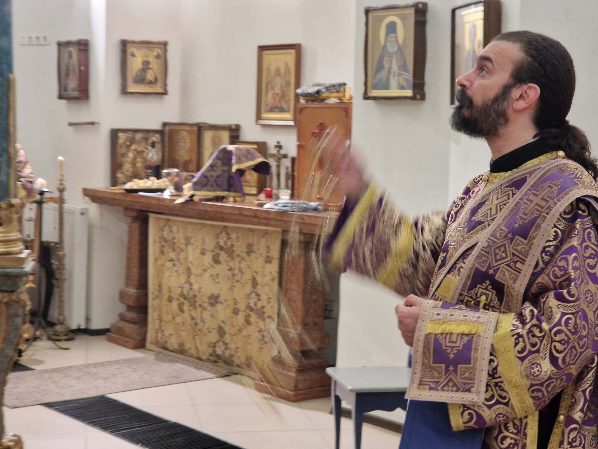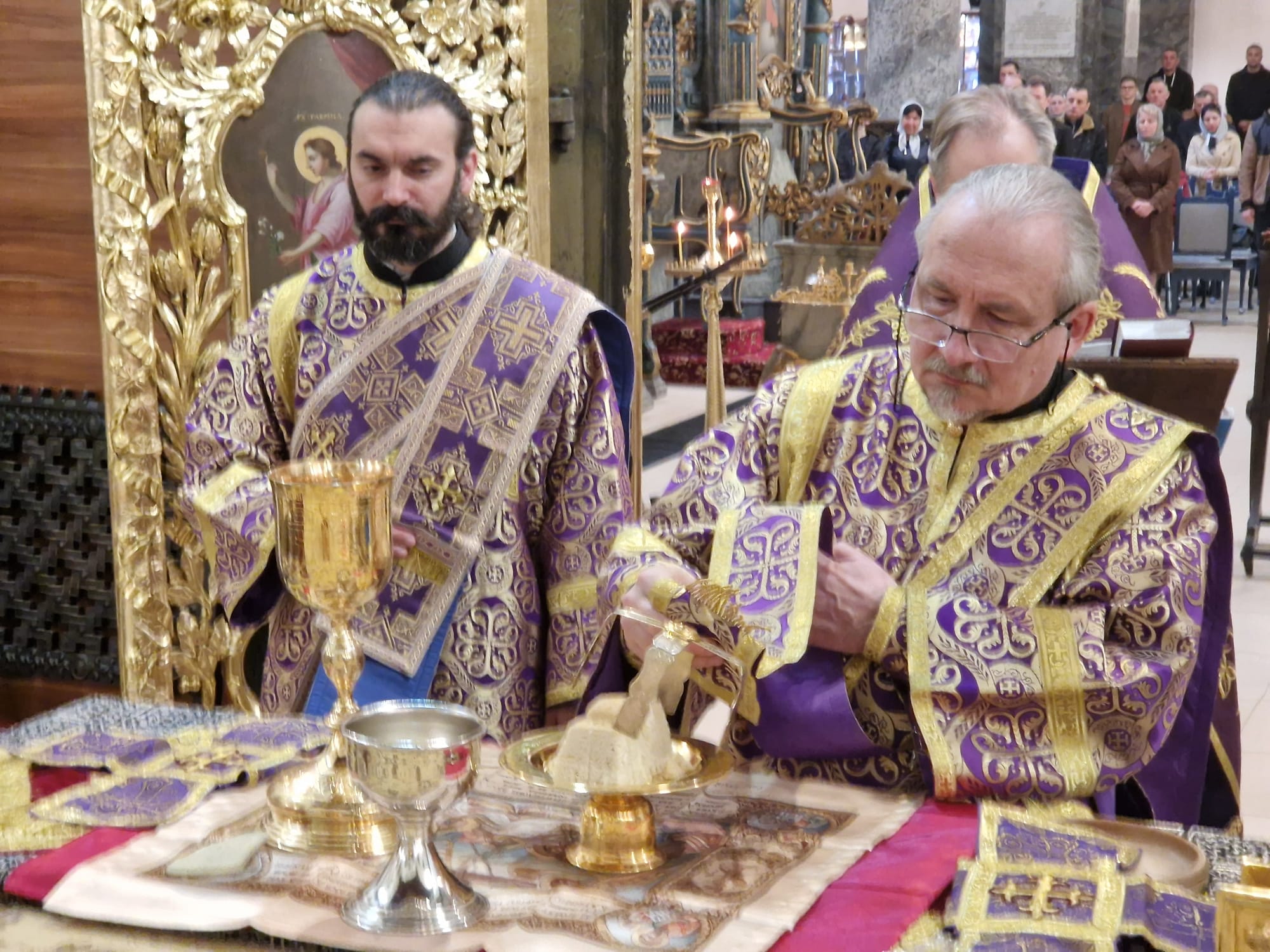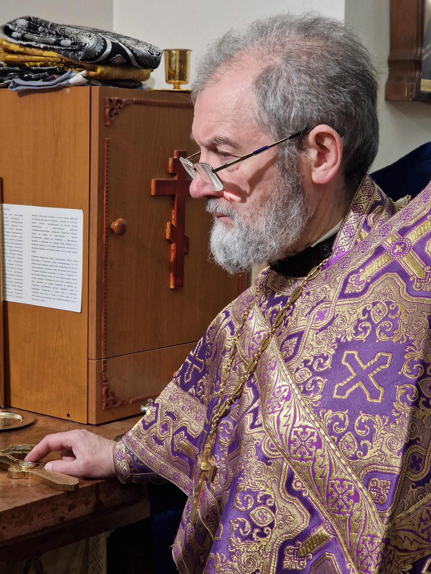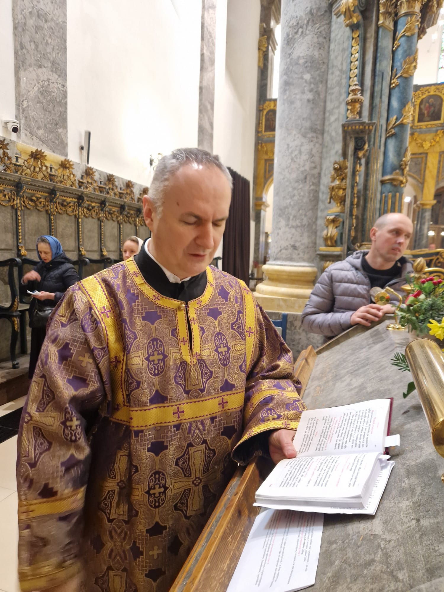 Перед выносом Святых Даров к прихожанам с проповедью обратился настоятель прихода.
