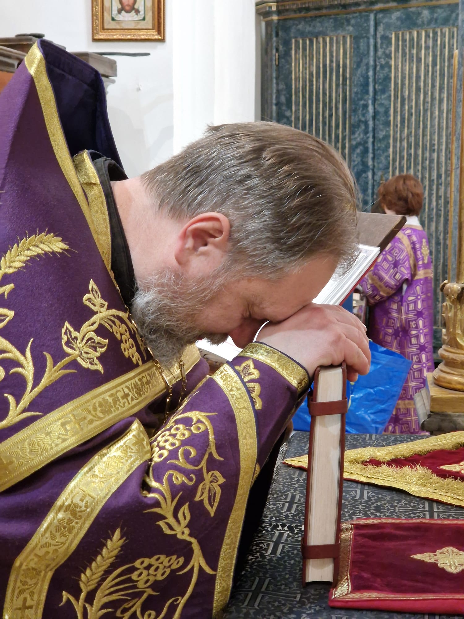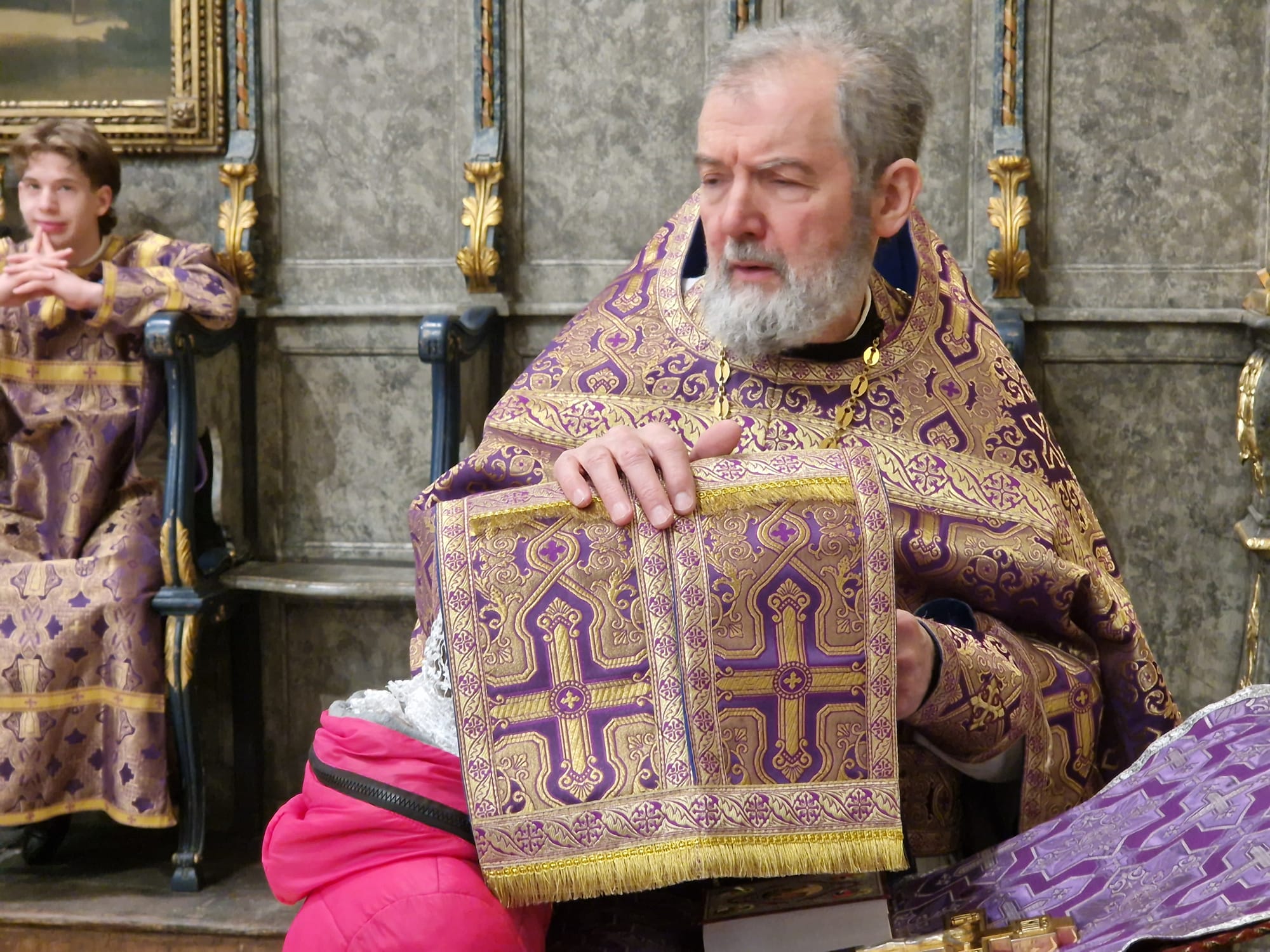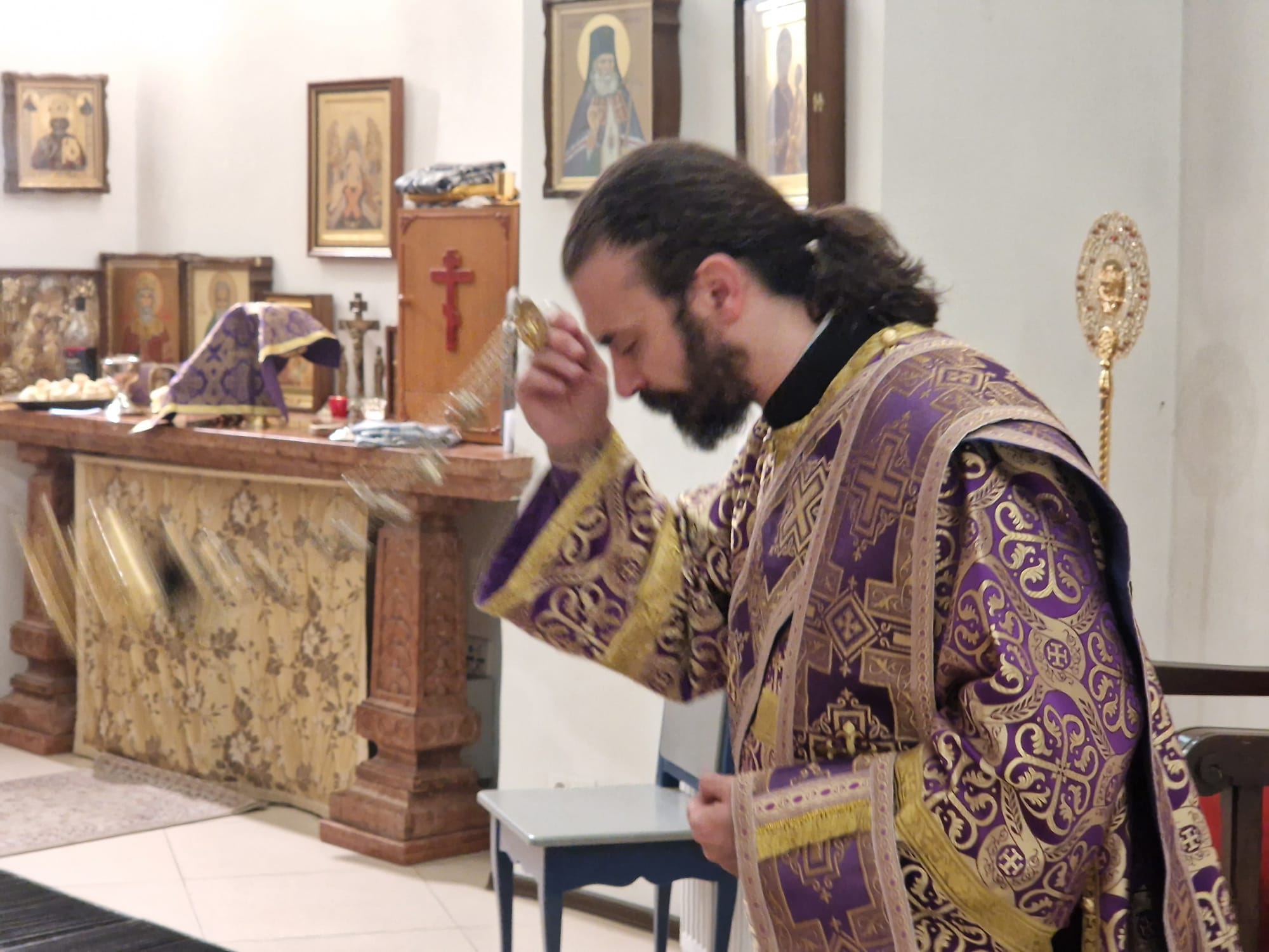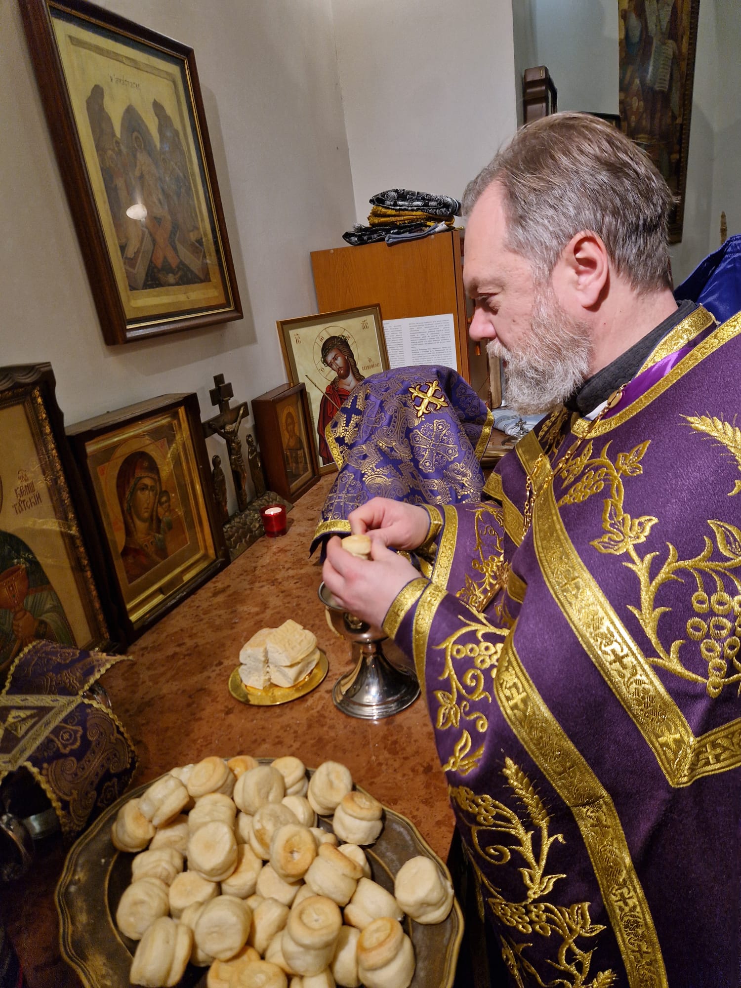 Перед выносом Святых Даров к прихожанам с проповедью обратился настоятель прихода.
