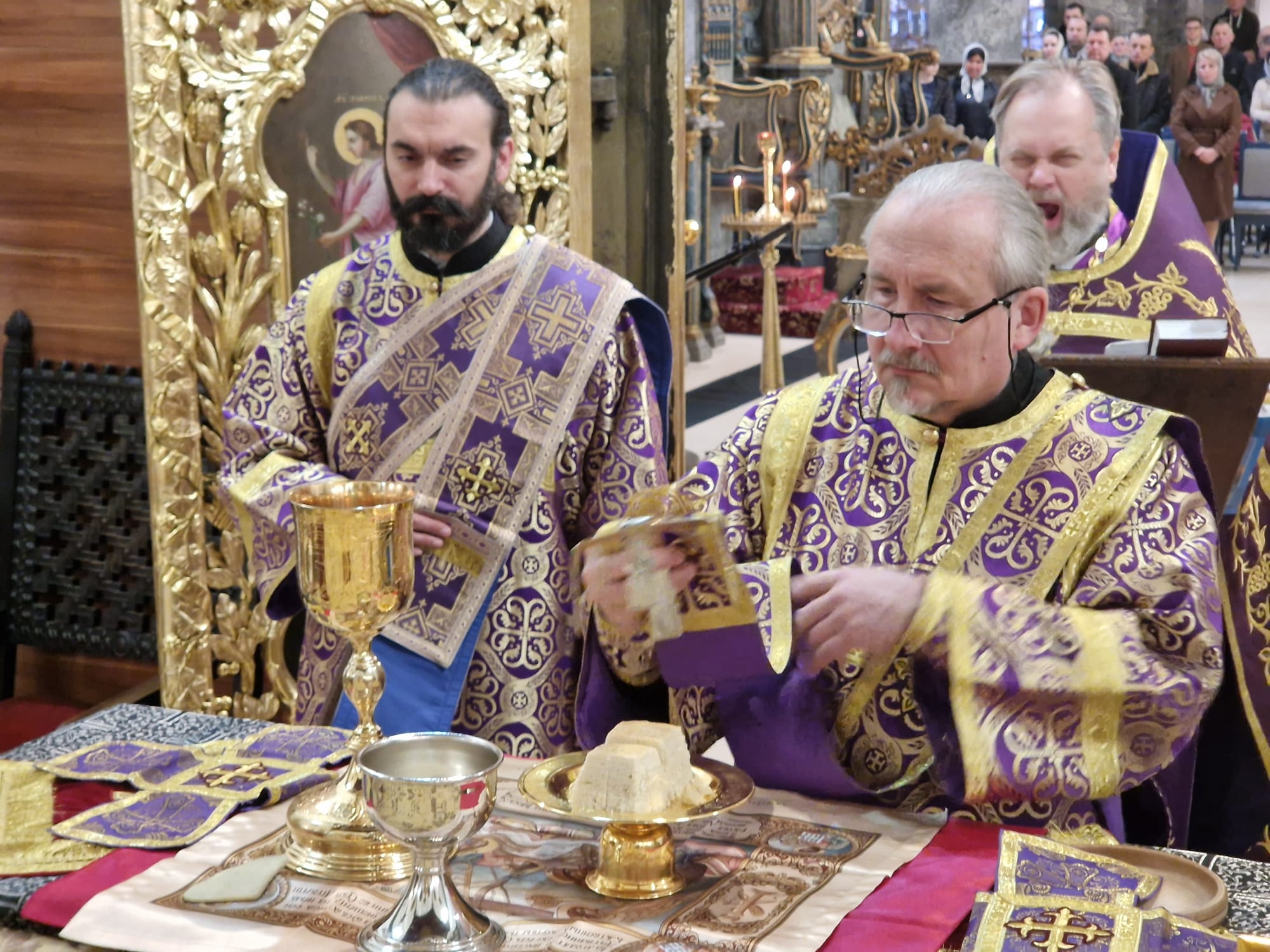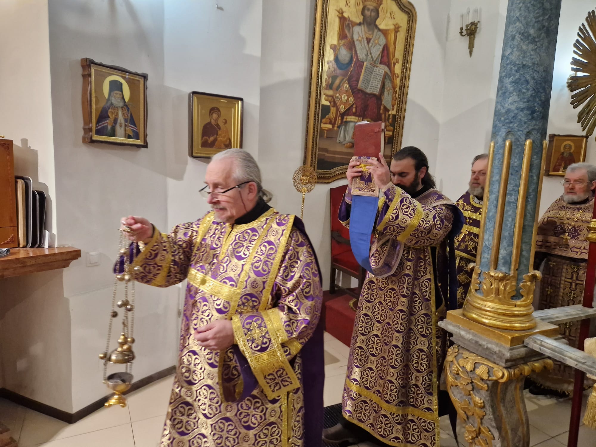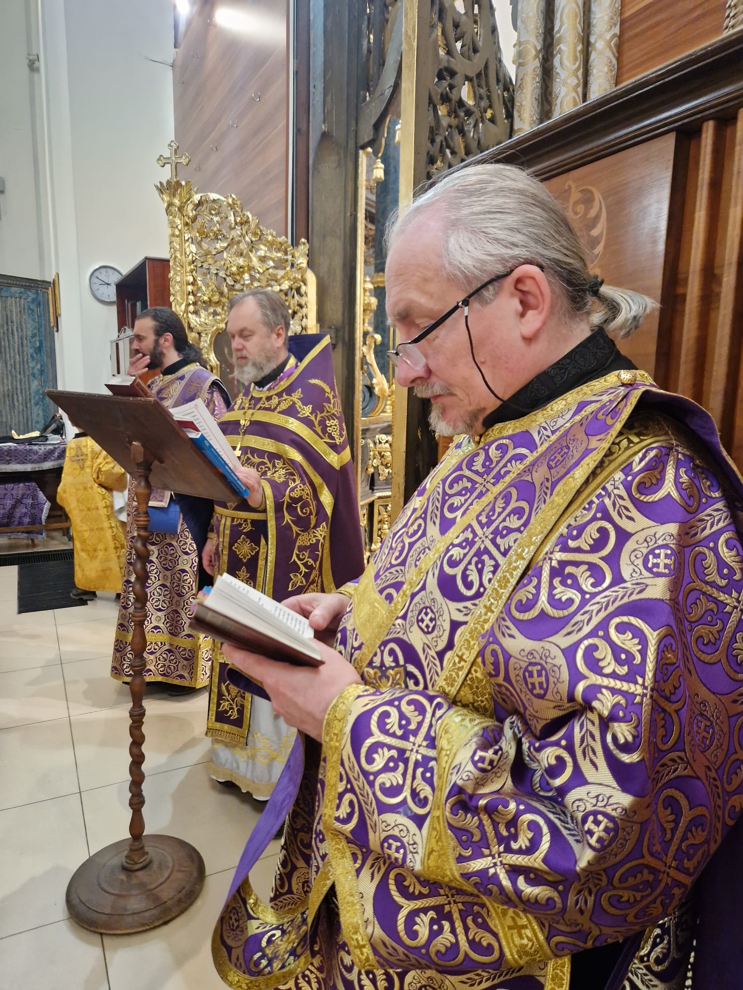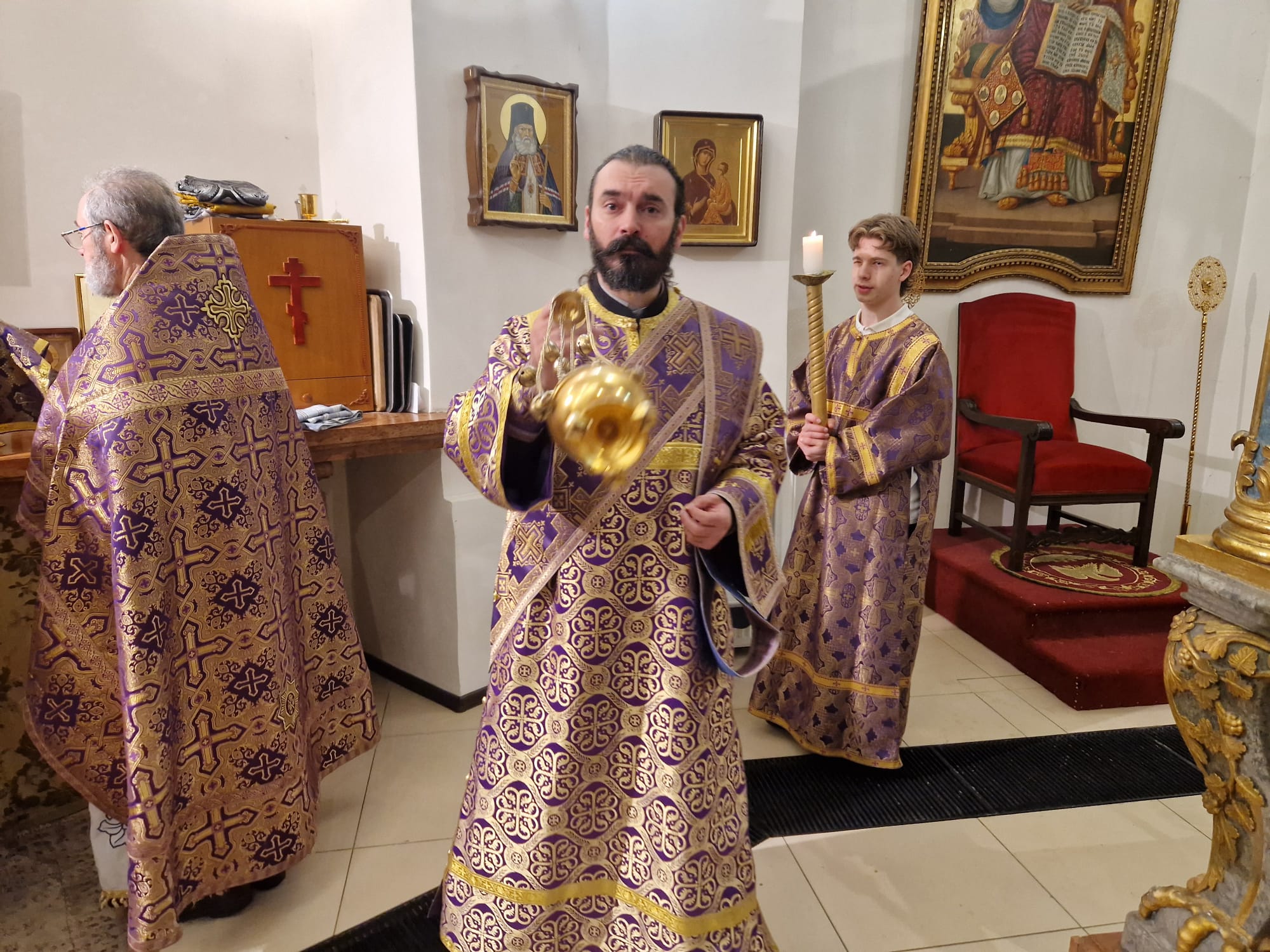 Утром 22 марта 2026 года, в Неделю четвертую Великого поста в Свято- Троицком приходе Успенского кафедрального собора состоялась Божественная литургия, возглавил которую настоятель прихода иерей Димитрий Корнилов в сослужении священника прихода Святослава Булаха, диаконов Стефана Вайна-Элиаш и Геннадия Румянцева.