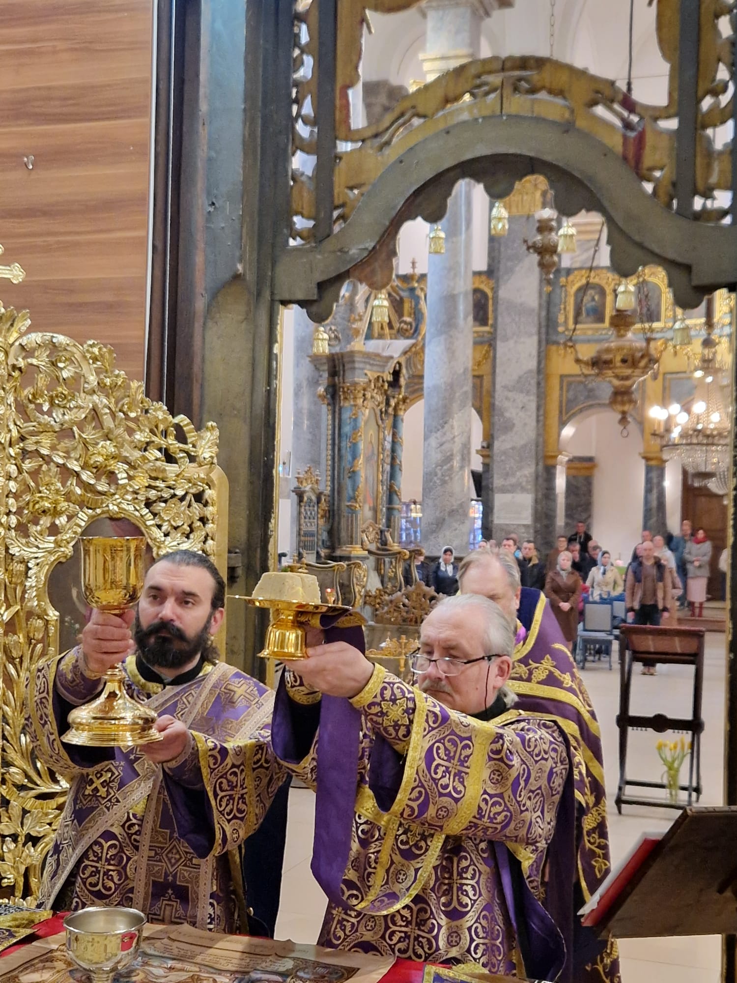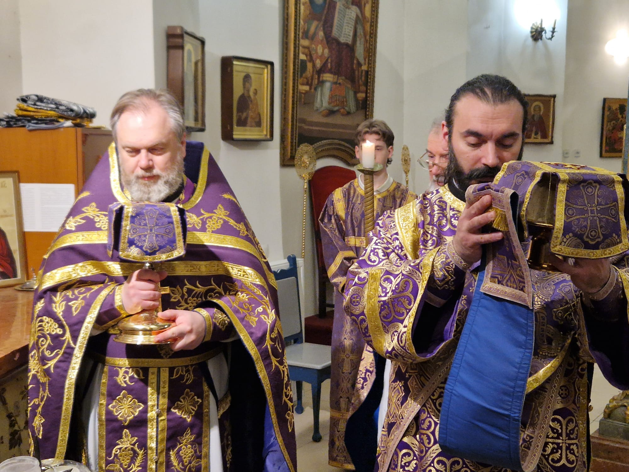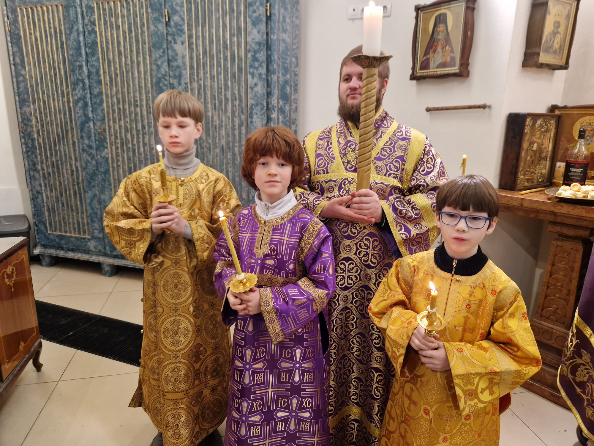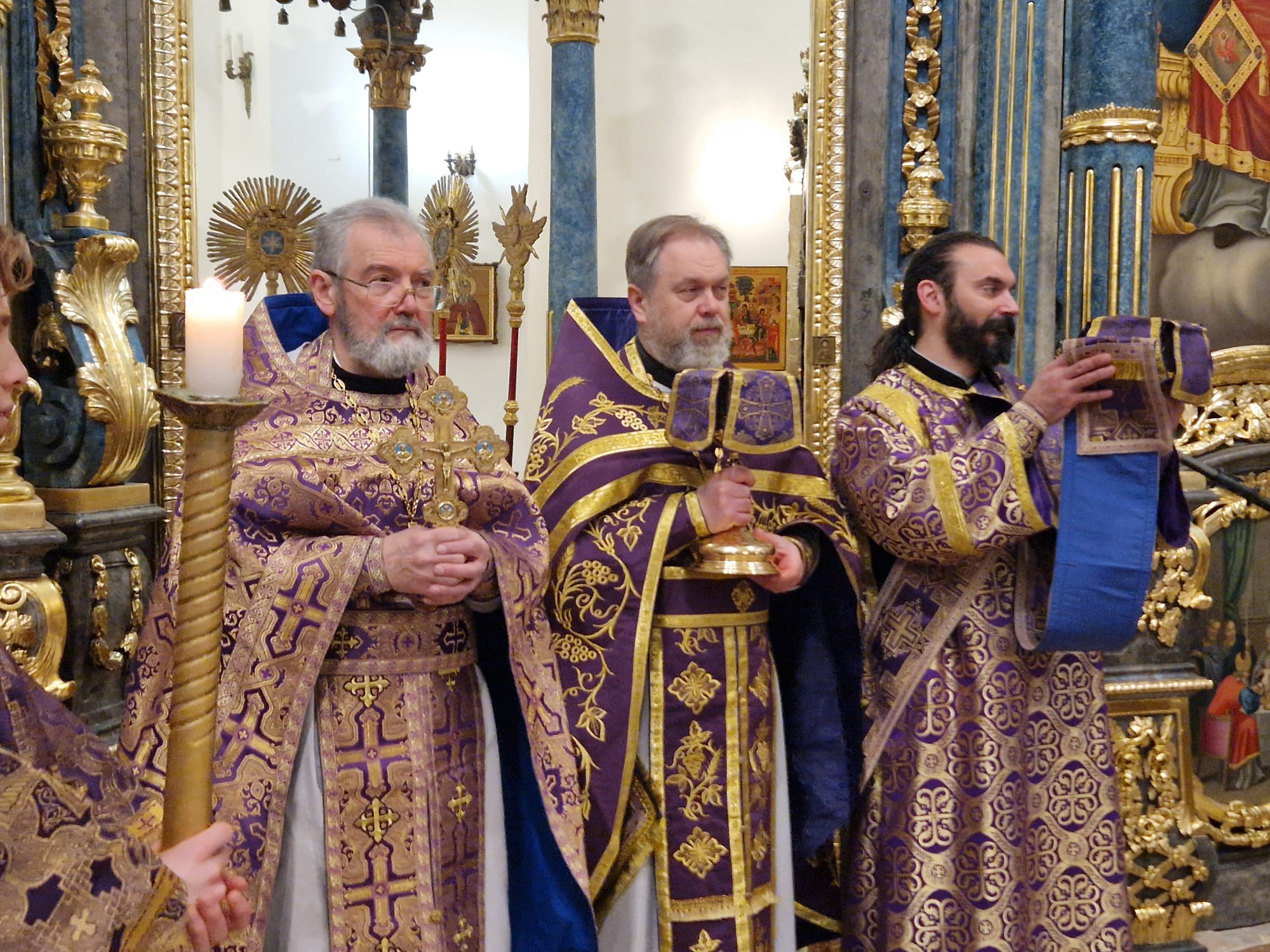 Утром 22 марта 2026 года, в Неделю четвертую Великого поста в Свято- Троицком приходе Успенского кафедрального собора состоялась Божественная литургия, возглавил которую настоятель прихода иерей Димитрий Корнилов в сослужении священника прихода Святослава Булаха, диаконов Стефана Вайна-Элиаш и Геннадия Румянцева.