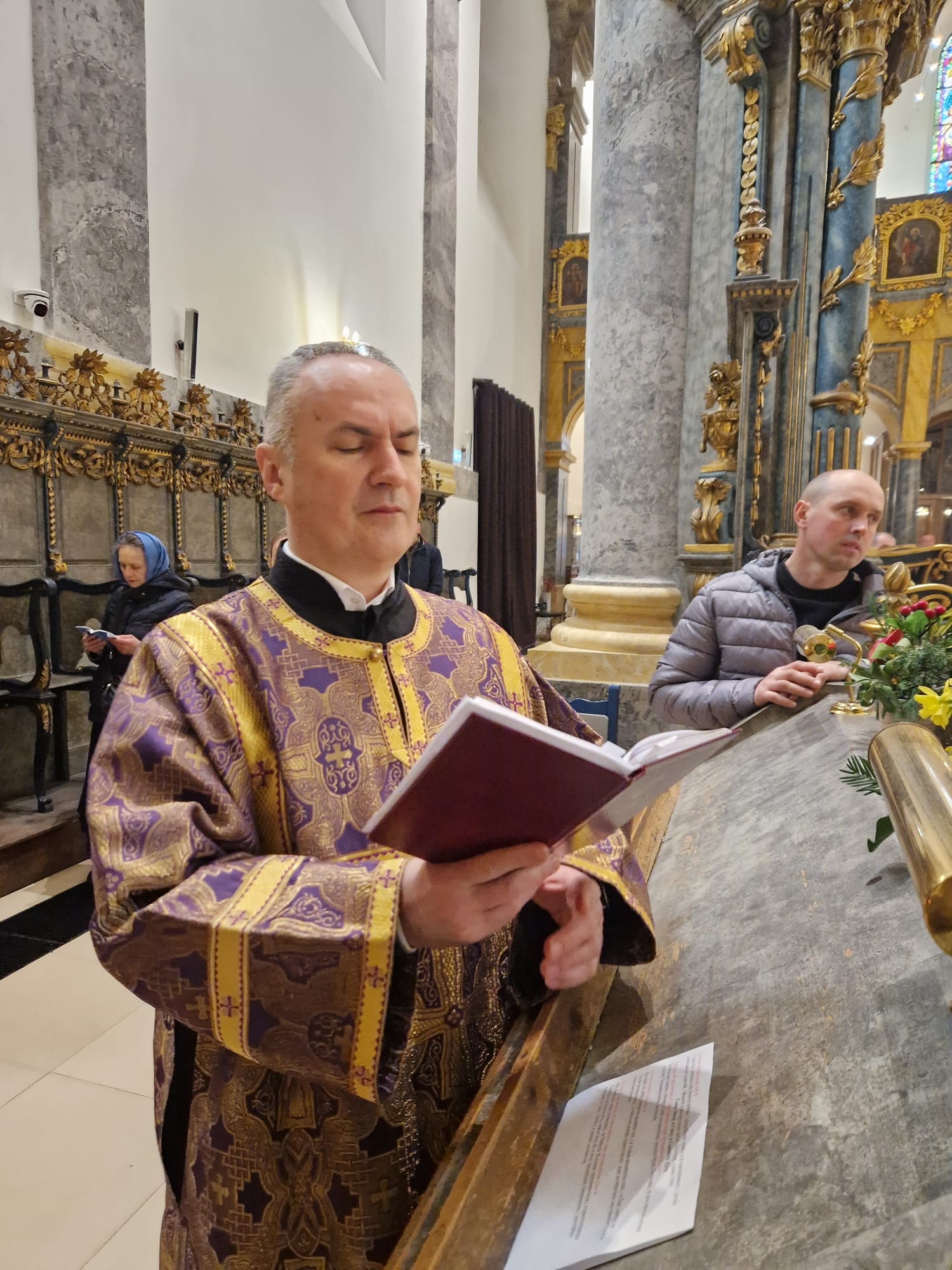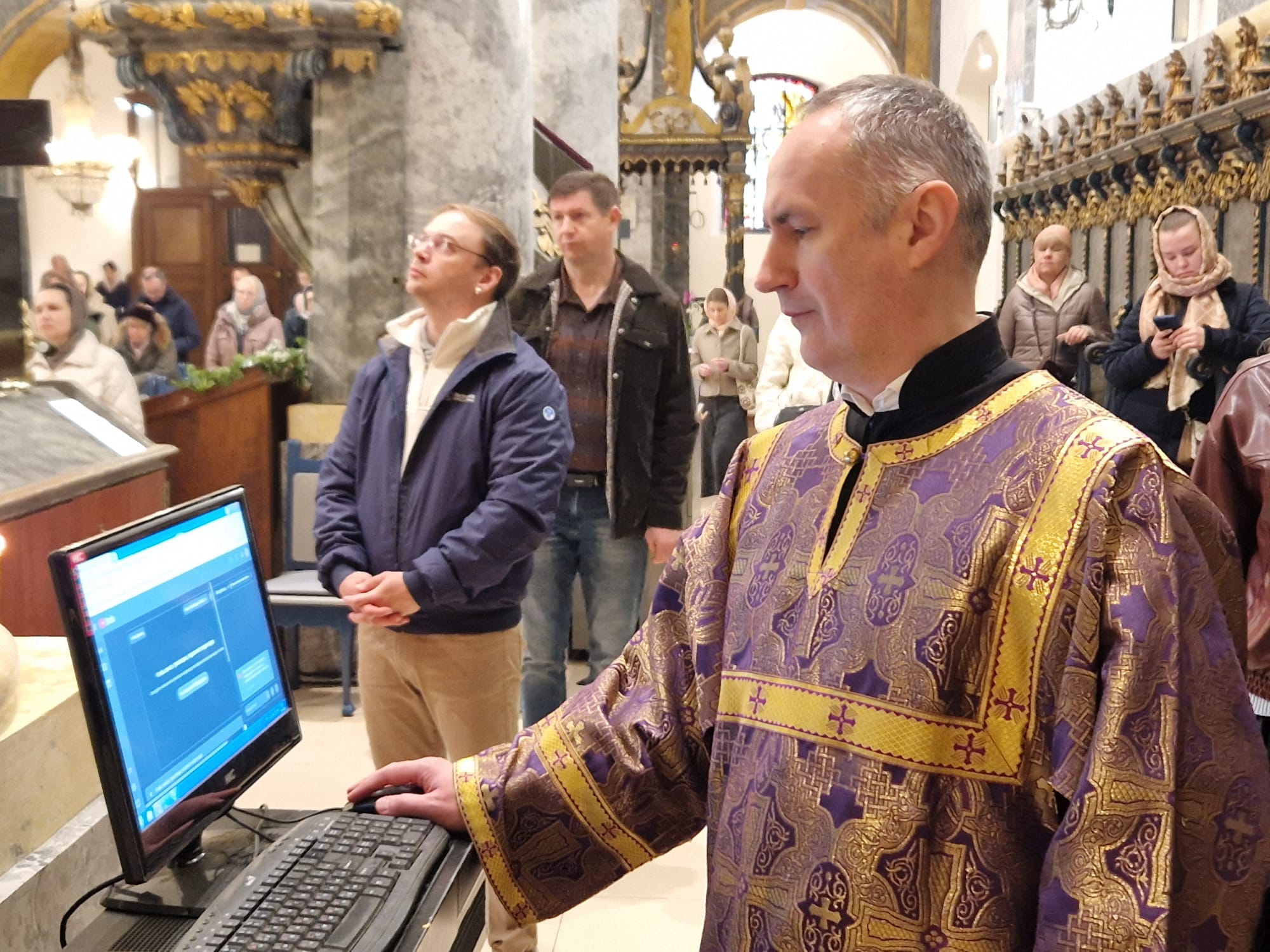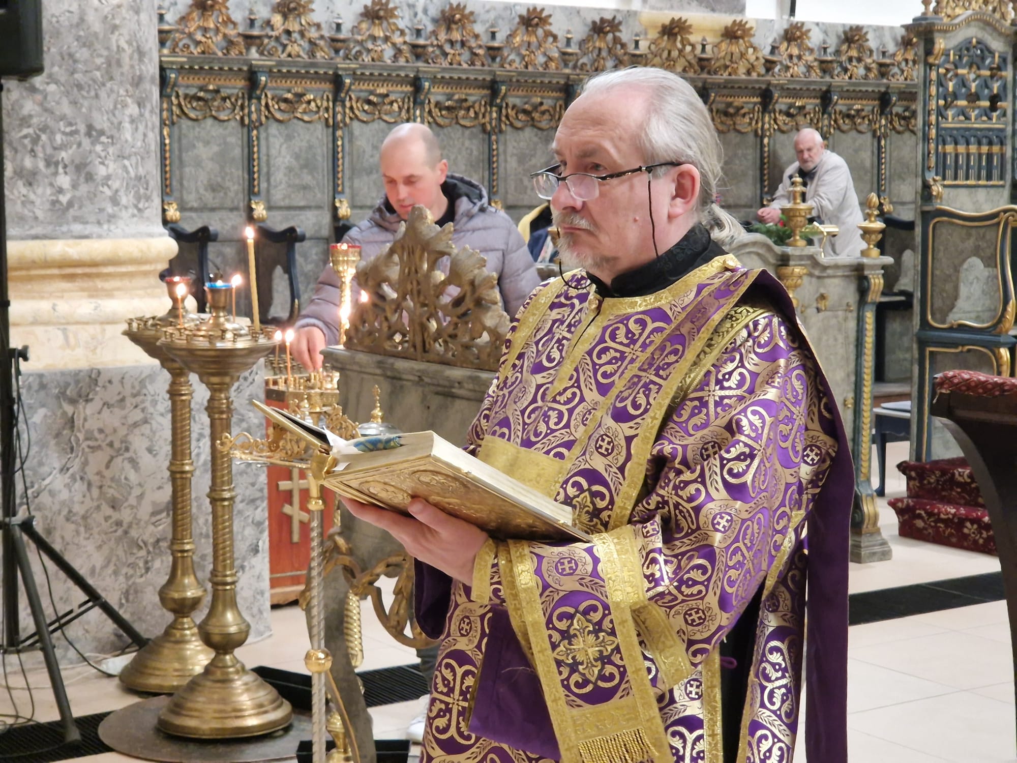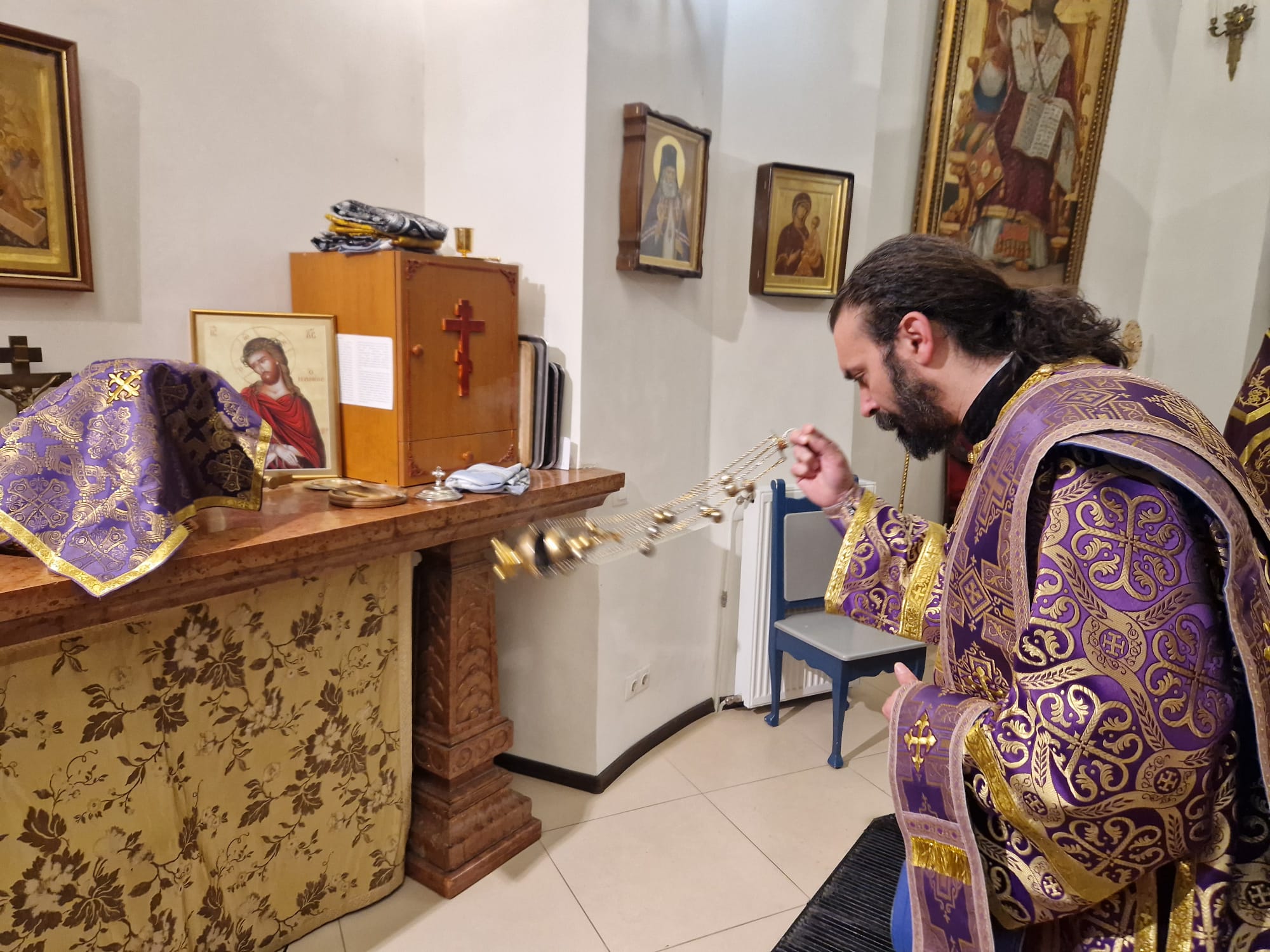 Утром 22 марта 2026 года, в Неделю четвертую Великого поста в Свято- Троицком приходе Успенского кафедрального собора состоялась Божественная литургия, возглавил которую настоятель прихода иерей Димитрий Корнилов в сослужении священника прихода Святослава Булаха, диаконов Стефана Вайна-Элиаш и Геннадия Румянцева.