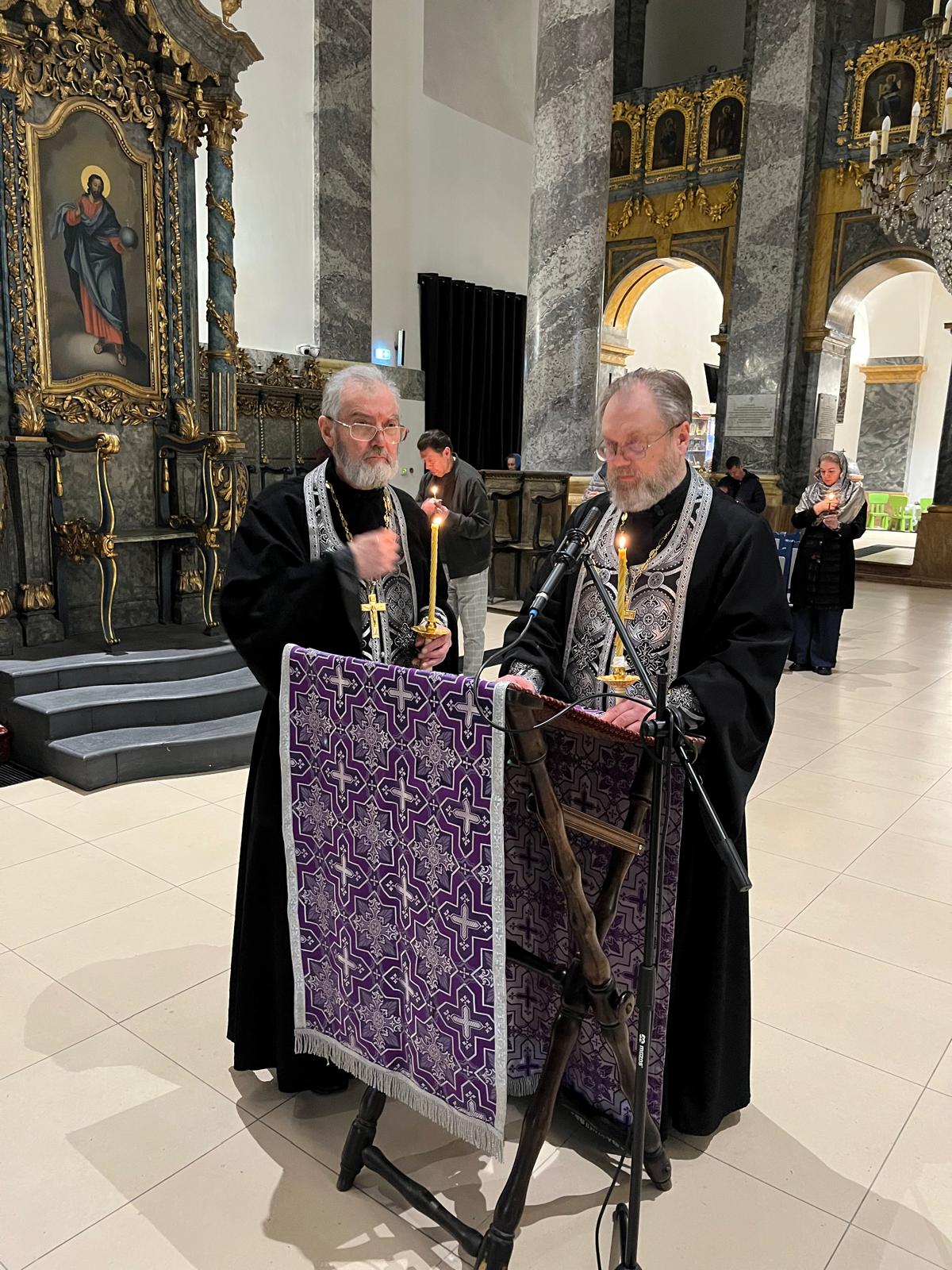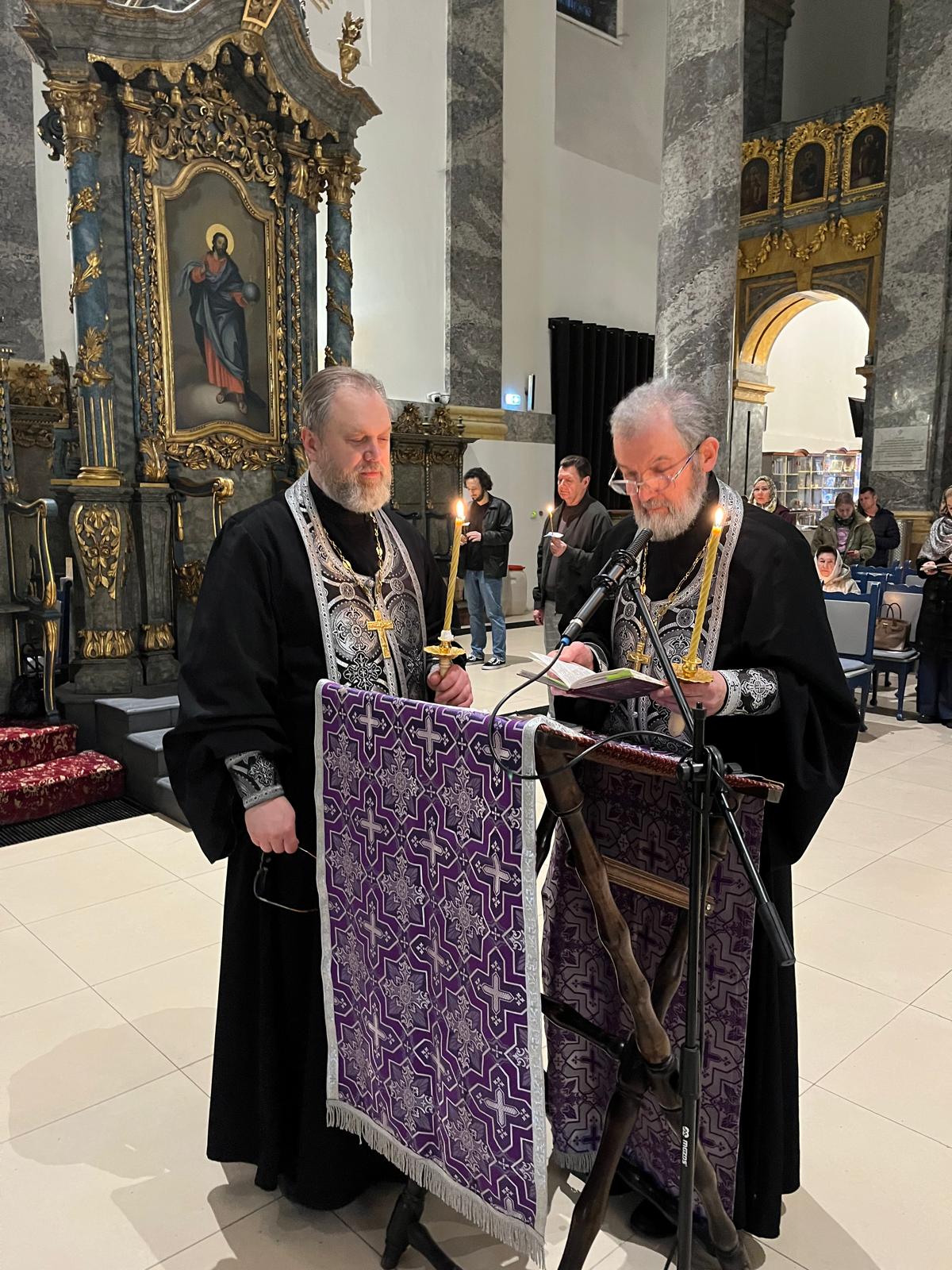 Богослужение, одно из самых продолжительных в церковном году, длилось около четырёх часов. В его ходе верующие услышали полное прочтение Великого покаянного канона Андрея Критского и чтение жития преподобной Марии Египетской (в двух частях — после кафизмы и после третьей песни канона).