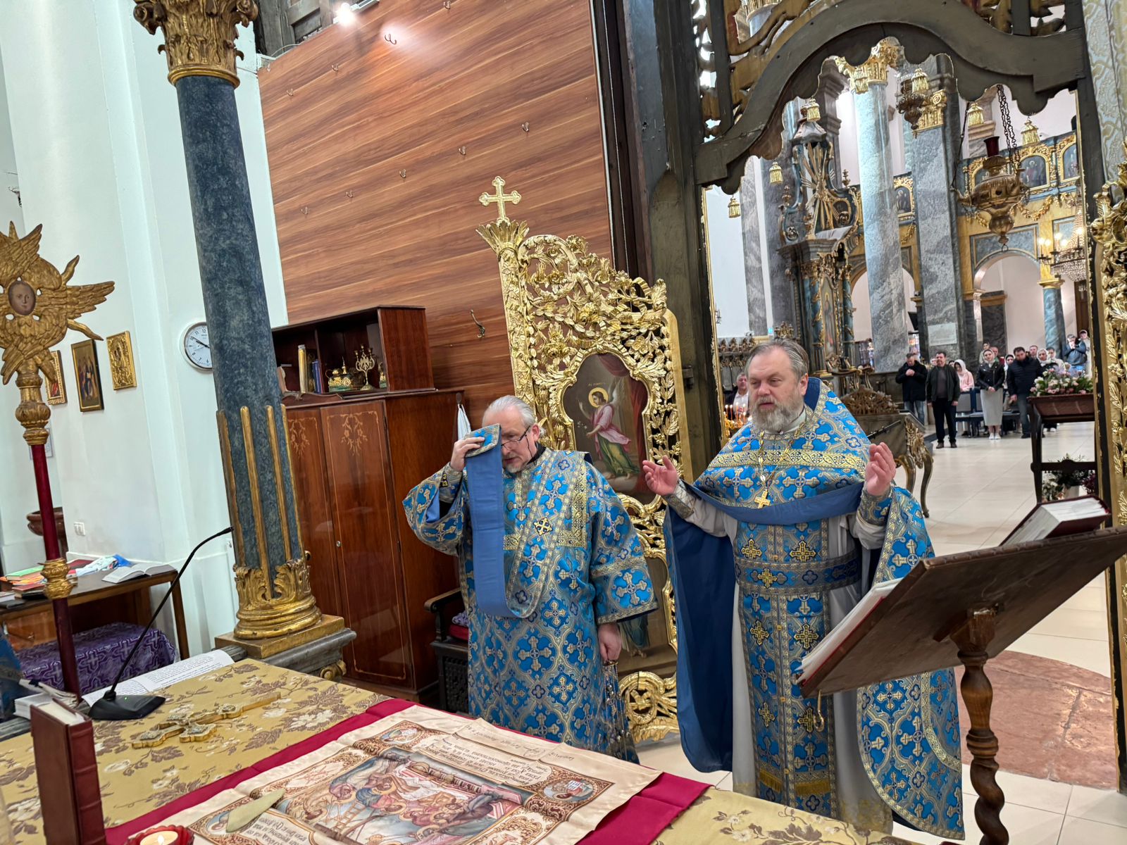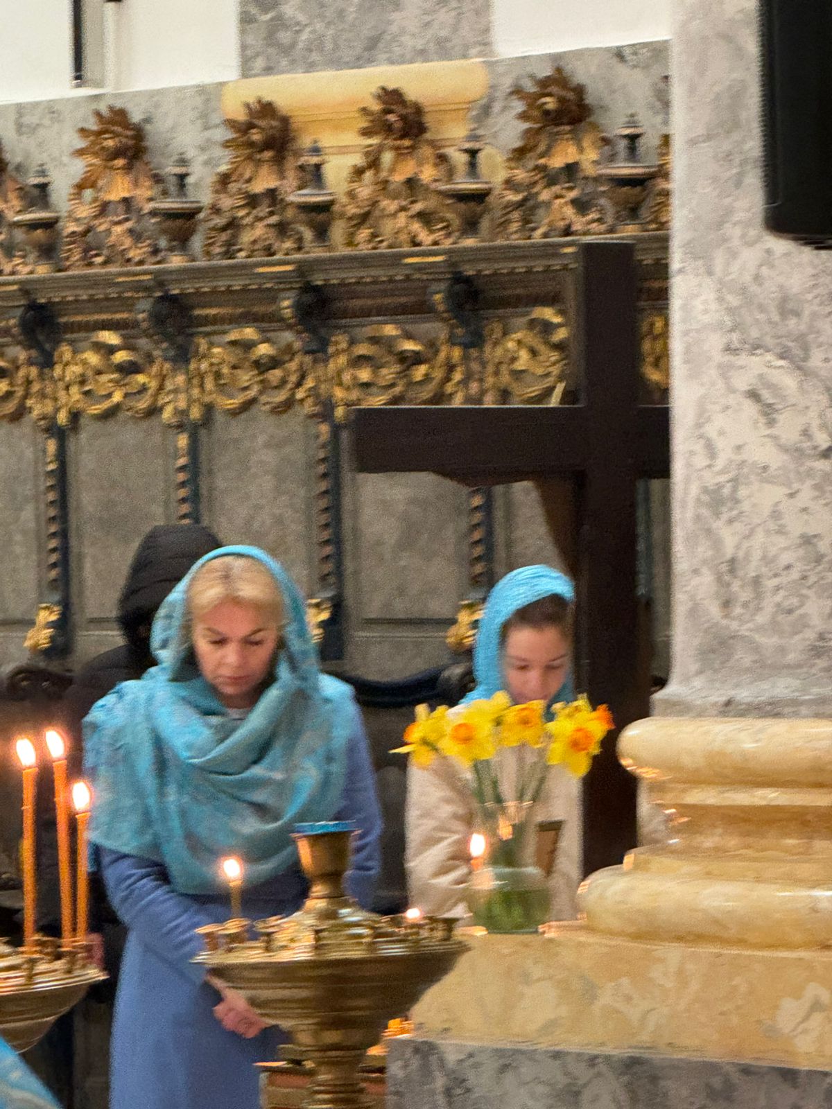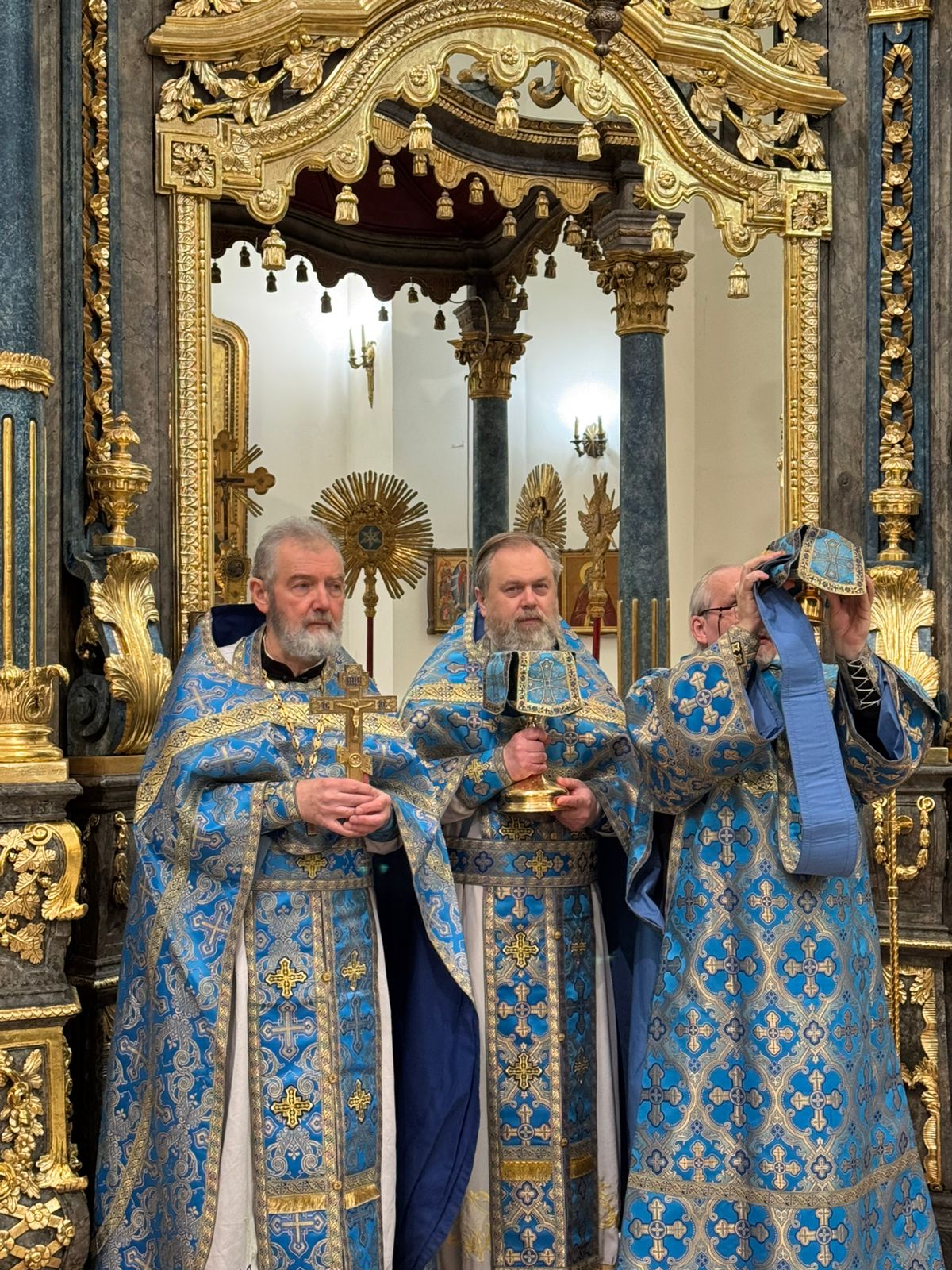 По окончании литургии духовенство и прихожане совершили краткое славление перед иконой Благовещения, вознося благодарственные молитвы.
