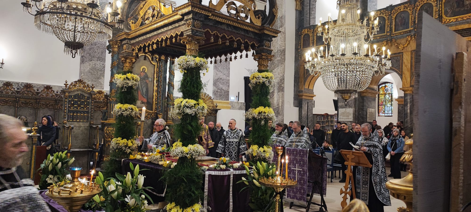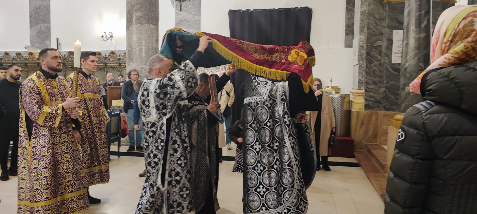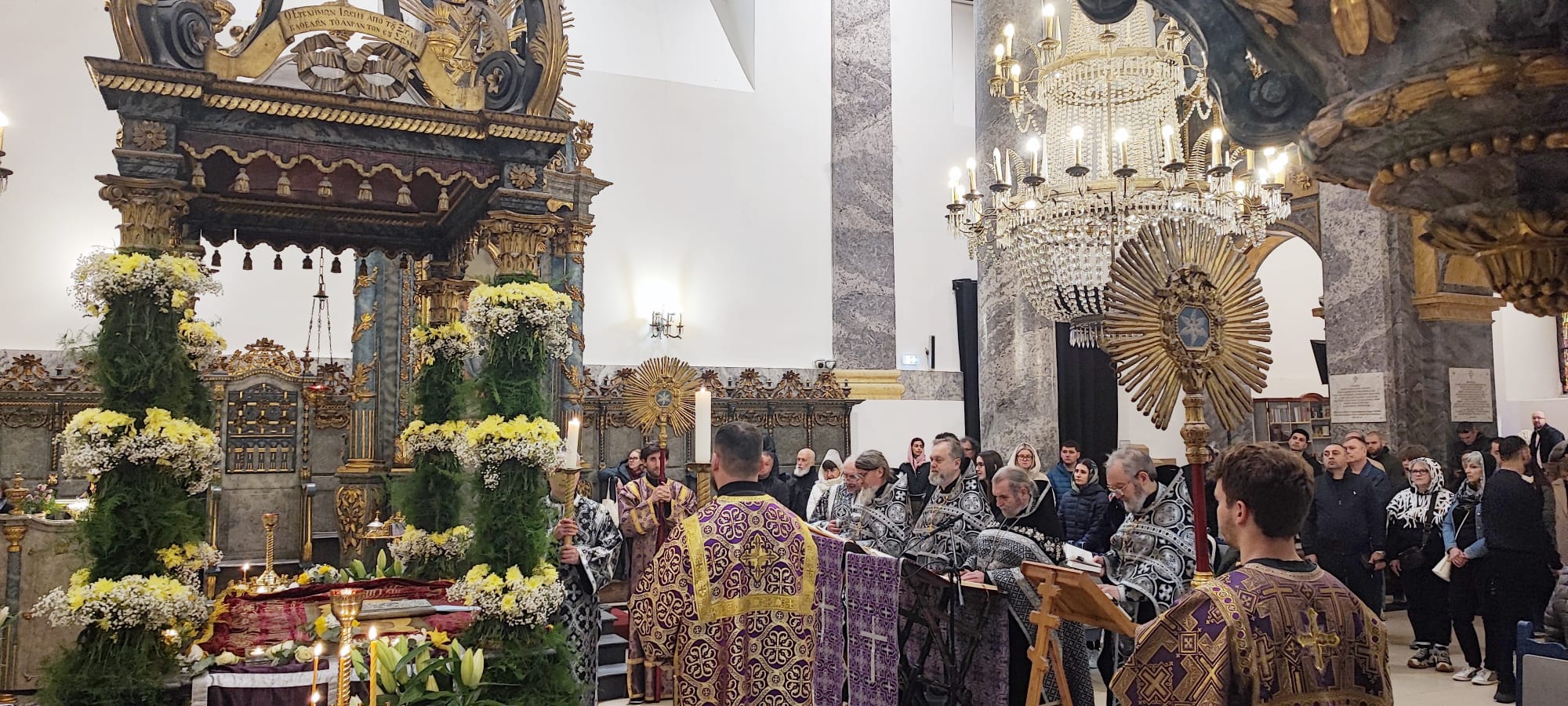 В канун Великой Субботы, когда Церковь вспоминает пребывание Господа Иисуса Христа во гробе, в Будапеште состоялось торжественное соборное богослужение. Общины Свято-Троицкого и Успенского приходов объединились для совершения Утрени с чином Погребения Плащаницы.