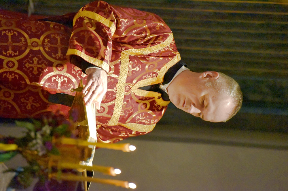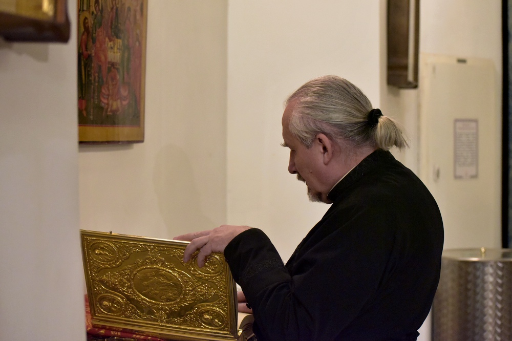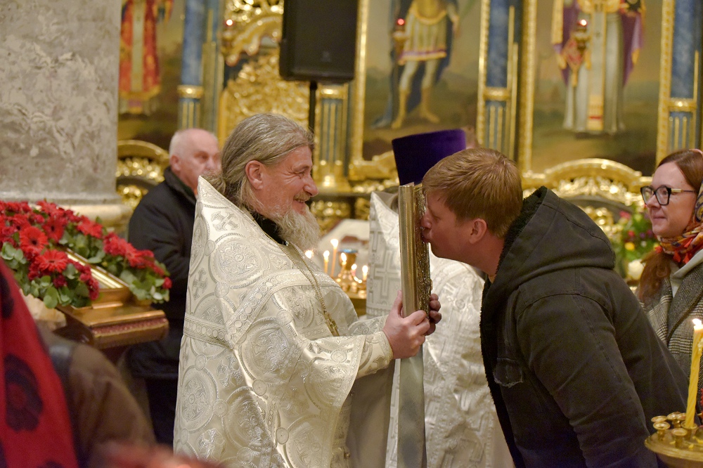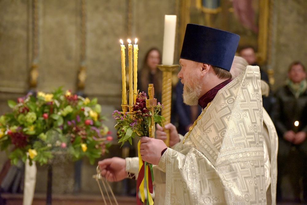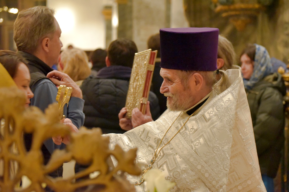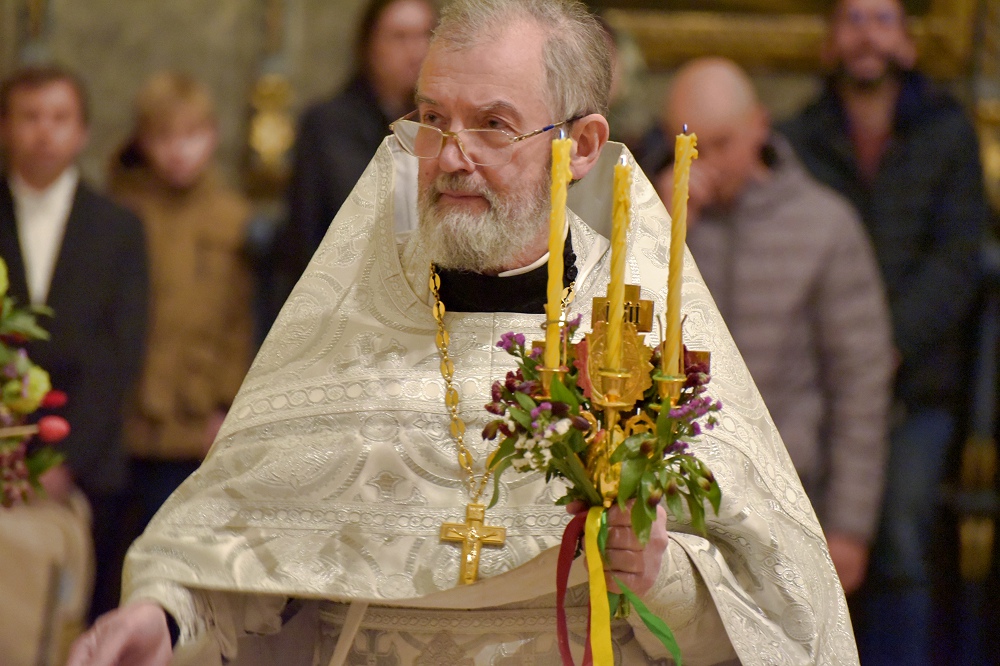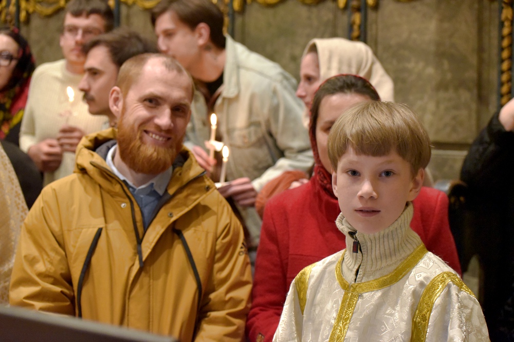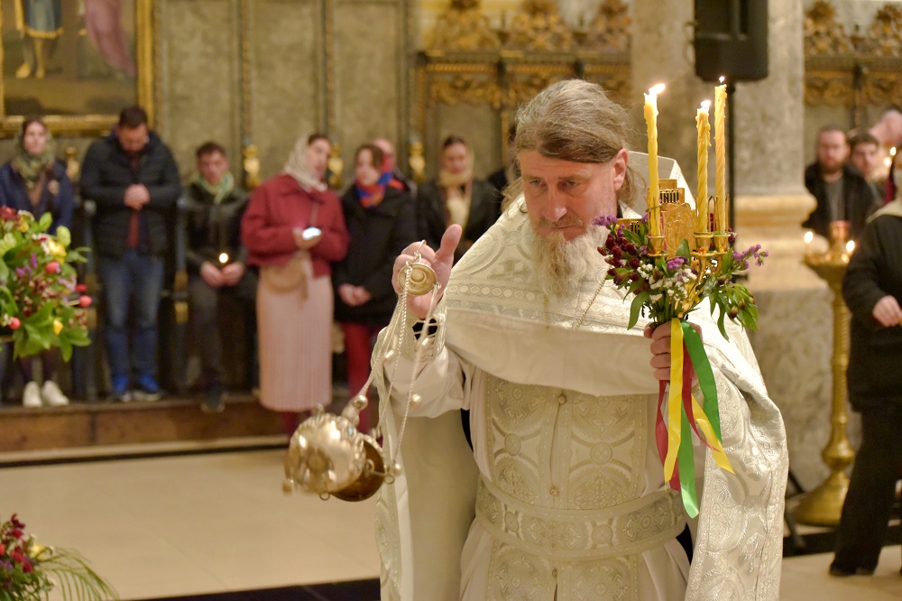 По окончании пасхального канона настоятель Свято- Троицкого прихода иерей Димитрий Корнилов прочитал для молящихся слово огласительное на Святую Пасху иже во святых отца нашего святителя Иоанна Златоуста.