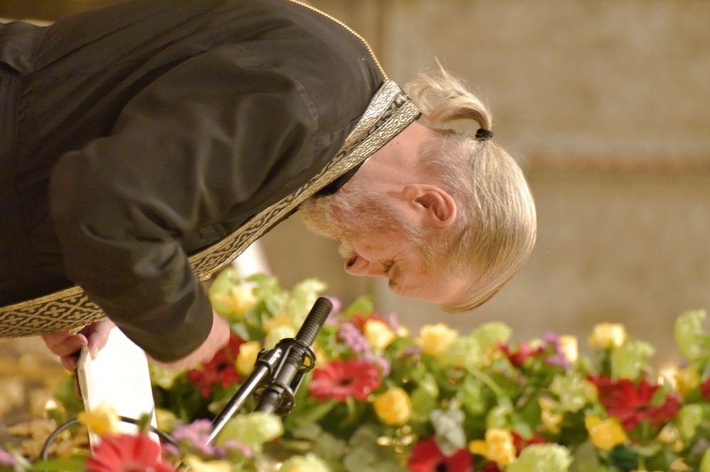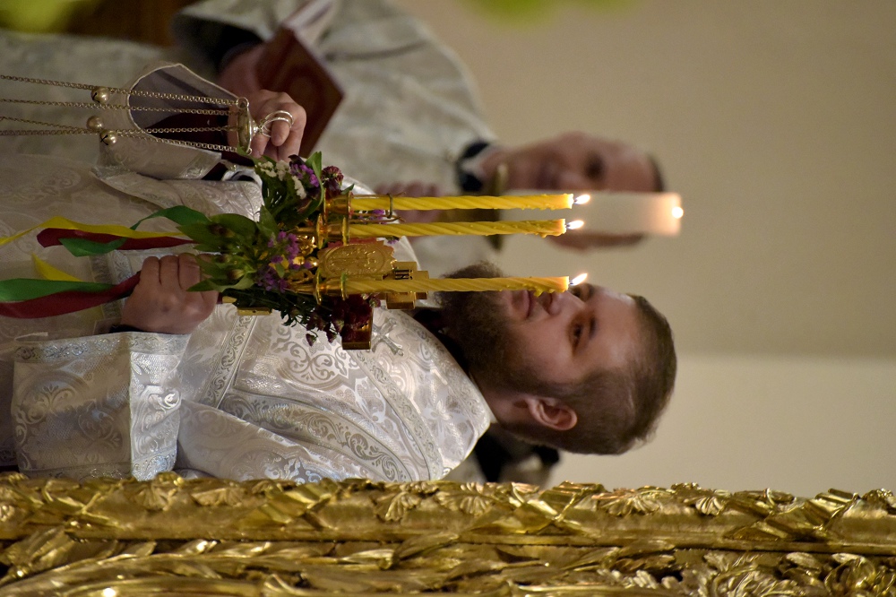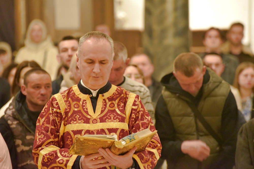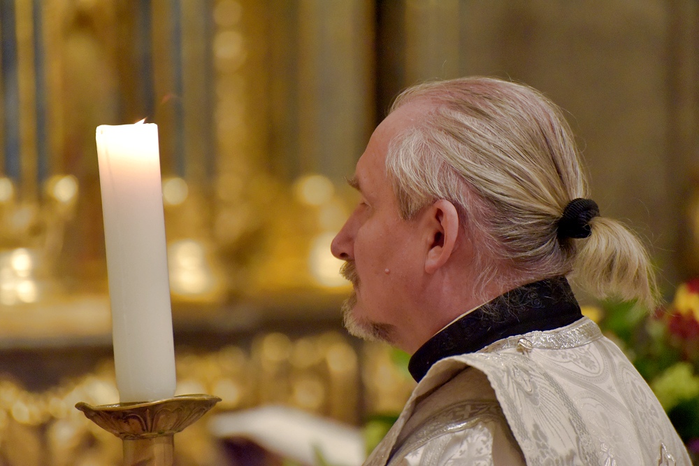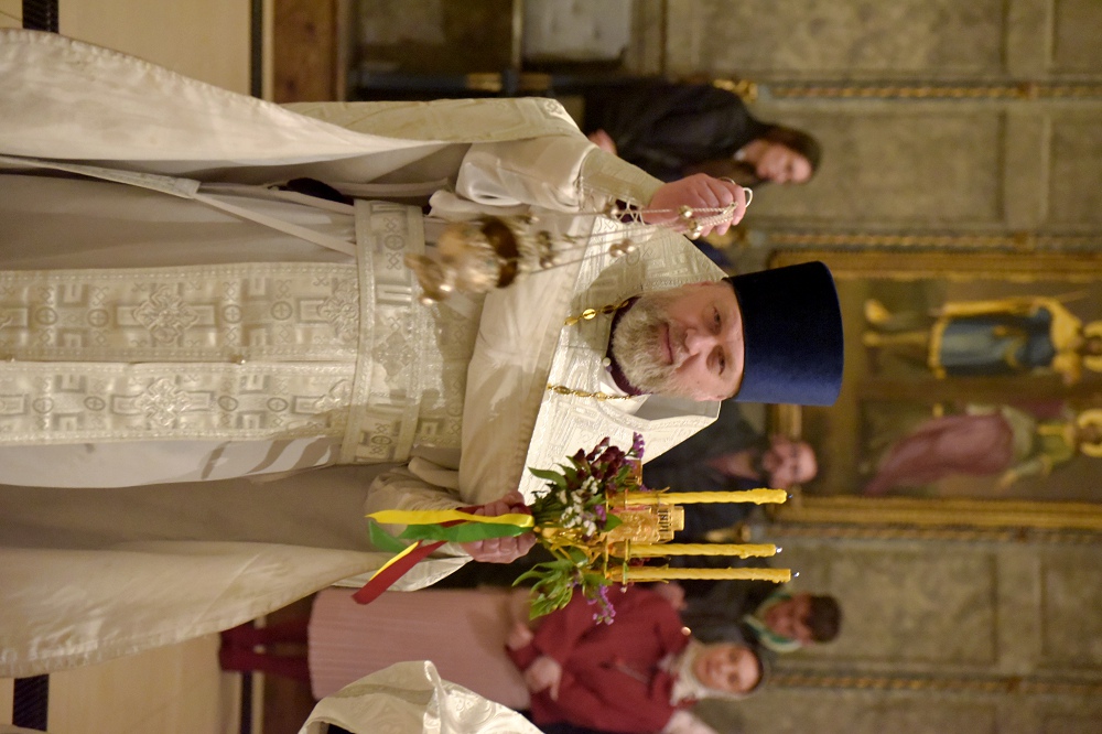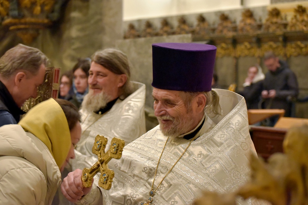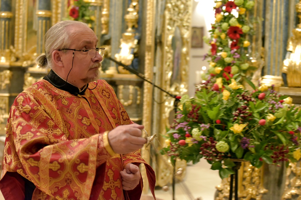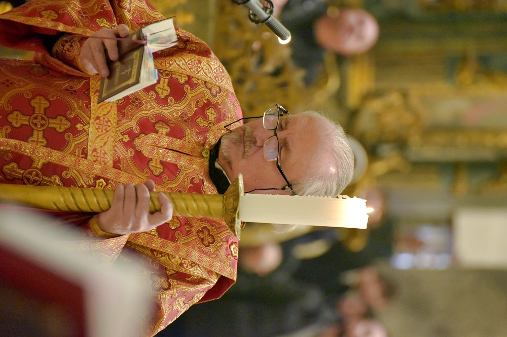 По окончании пасхального канона настоятель Свято- Троицкого прихода иерей Димитрий Корнилов прочитал для молящихся слово огласительное на Святую Пасху иже во святых отца нашего святителя Иоанна Златоуста.
