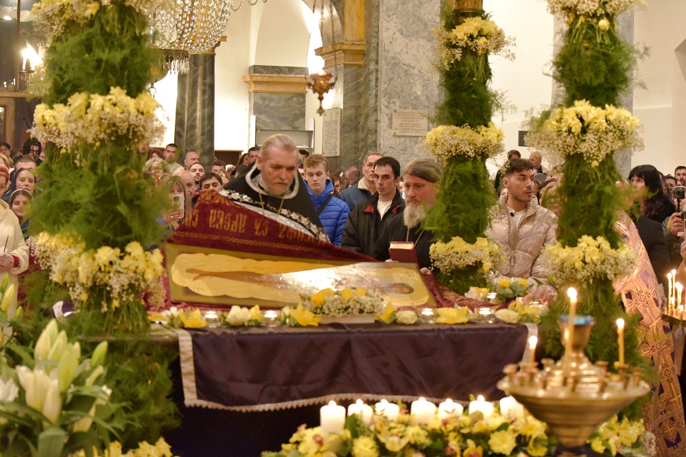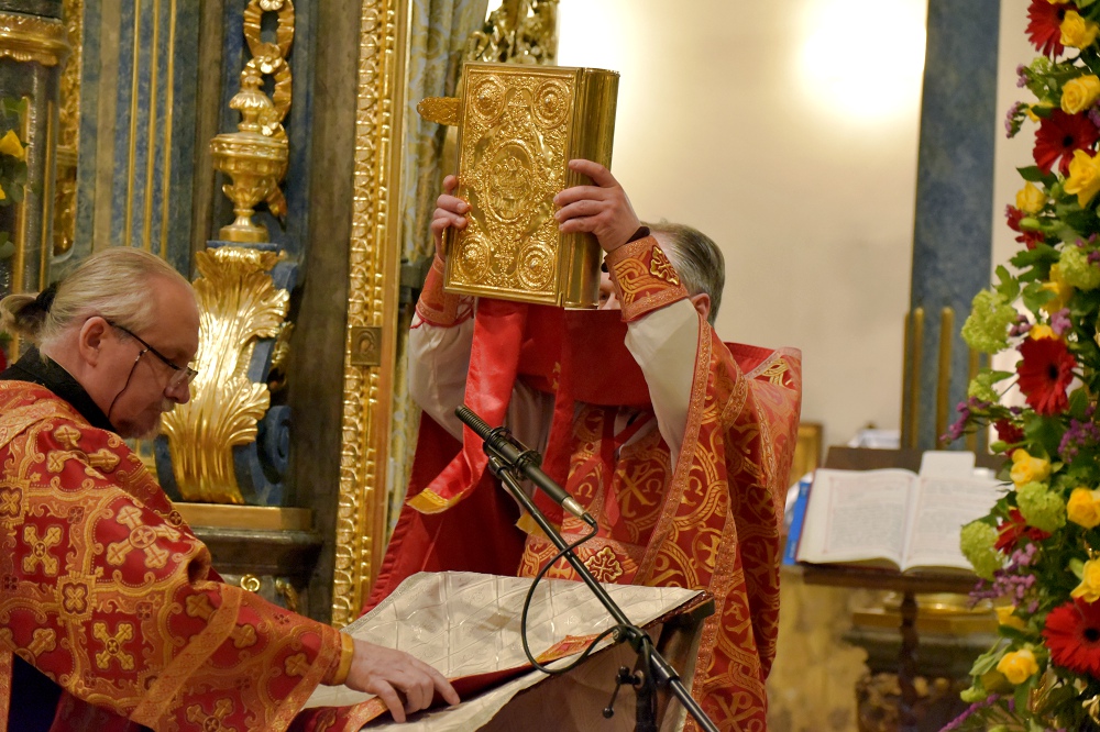 Праздничным евангельским чтением стало 1-е зачало от Иоанна Богослова, рассказывающее о Божестве Христа, Который Воскресением из мертвых явил миру Свою Божественную власть.