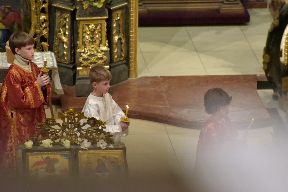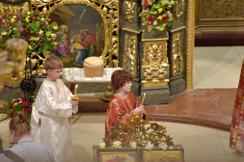 Во время Божественной литургии было прочитано пасхальное приветствие предстоятеля Русской Православной Церкви Патриарха Московского и всея Руси Кирилла.