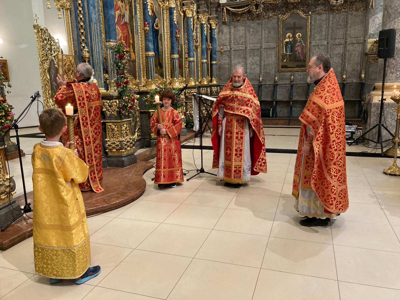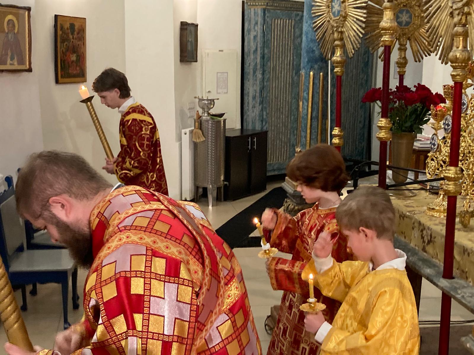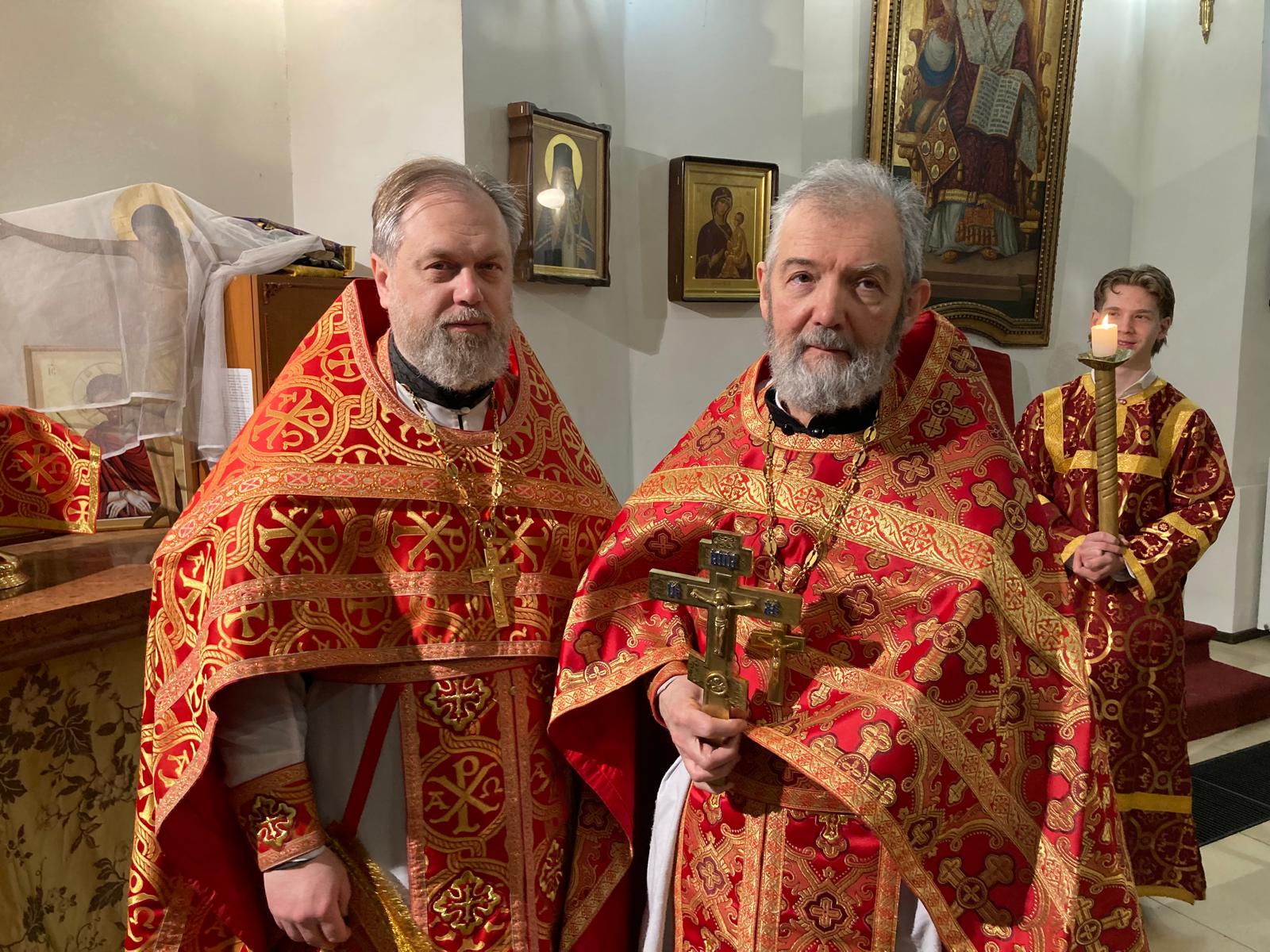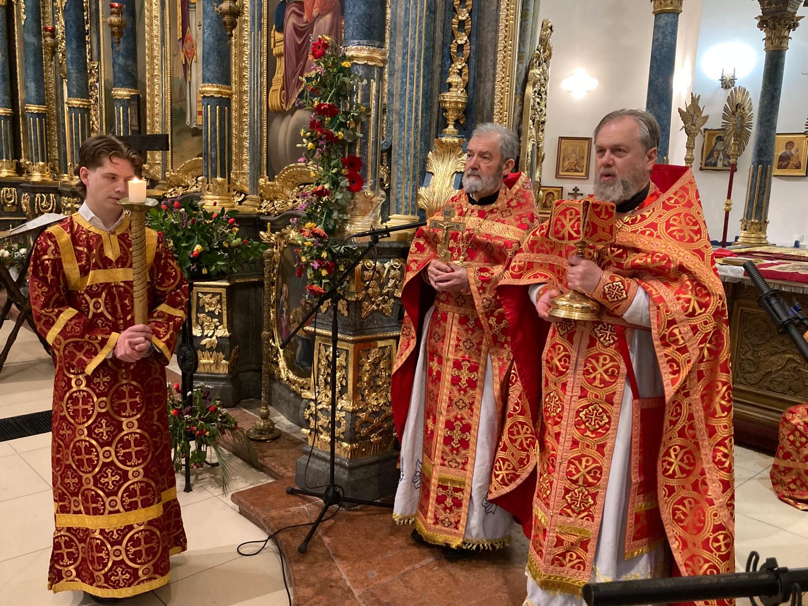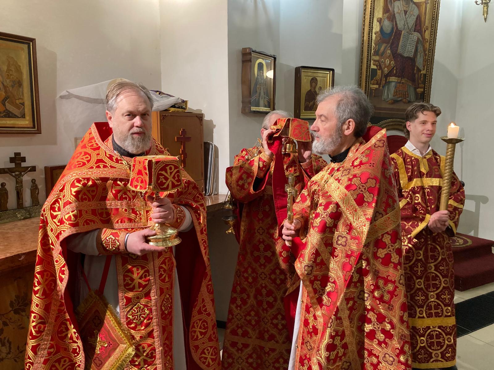Богослужение возглавил настоятель прихода иерей Димитрий Корнилов. Ему сослужили священник Святослав Булах и диакон Геннадий Румянцев.