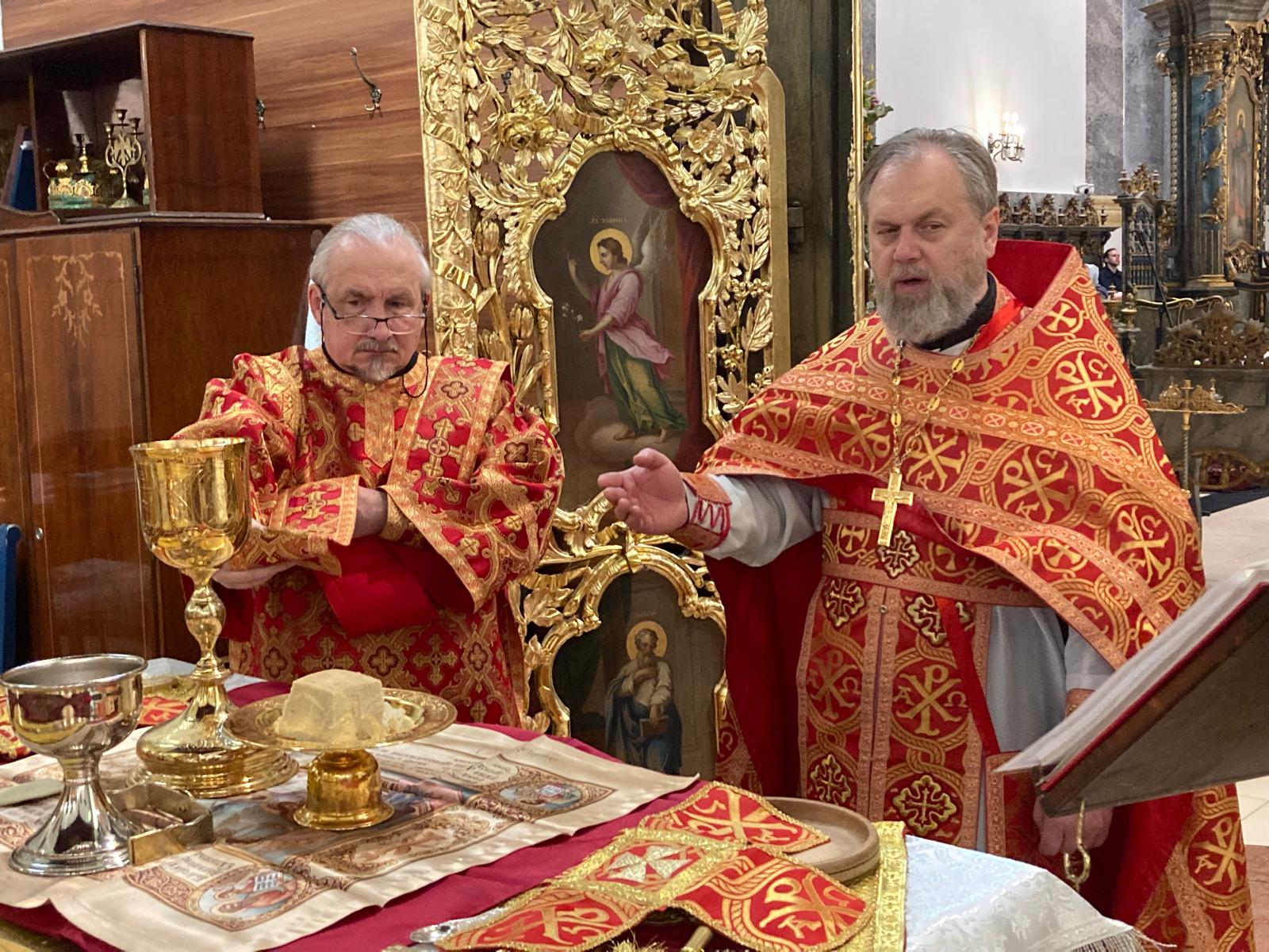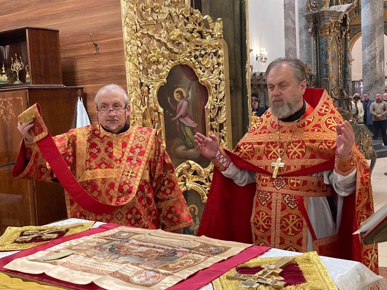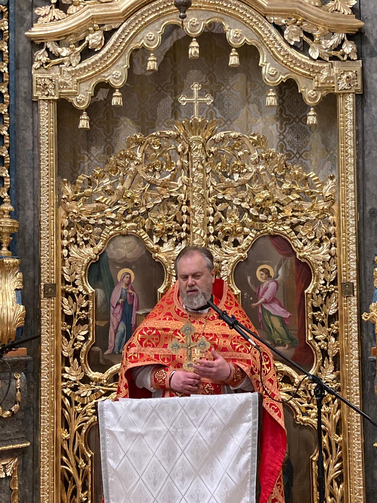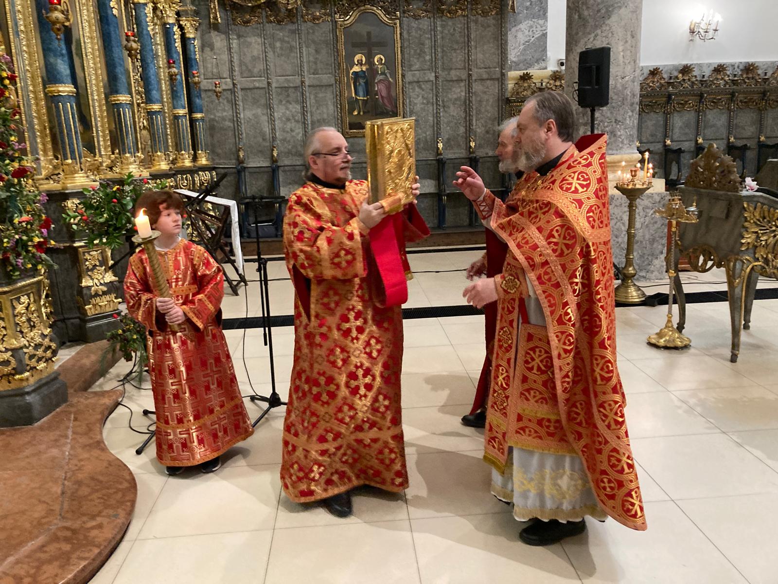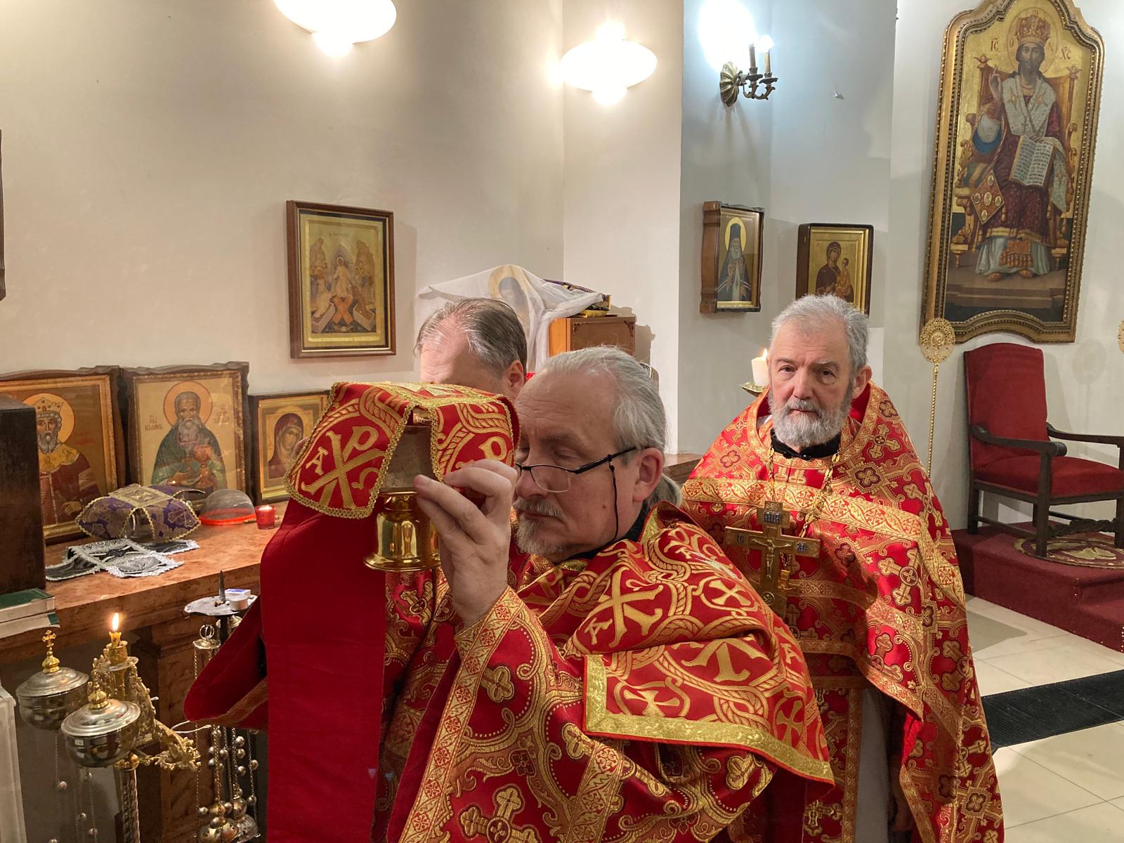 Богослужение возглавил настоятель прихода иерей Димитрий Корнилов. Ему сослужили священник Святослав Булах и диакон Геннадий Румянцев.