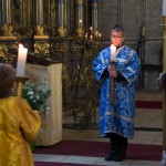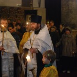 Рождественское богослужение в Успенском кафедральном соборе началось поздно вечером 6 января. Великое повечерие совершали настоятель Троицкого прихода в Будапеште иерей Димитрий Корнилов и иерей Святослав Булах в сослужении диакона кафедрального собора Стефана Вайна-Элиаш. За богослужениями пел хор под управлением Евы Гволик. Разделить молитвенную радость праздника пришло очень много людей, только на помазание елеем подошли около 150 человек. После помазания началась Божественная Литургия, которую совершил иерей Святослав Булах и дьякон Стефан Вайна-Элиаш. По окончании ночной Божественной литургии от имени настоятеля прихода староста Татьяна Каса вручила ценные подарки к празднику особо активным членам общины. В конце богослужения все прихожане могли услышать Рождественское послание Святейшего Патриарха Московского и всея Руси Кирилла.