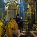 Собор вселенских учителей и святителей Василия Великого, Григория Богослова и Иоанна Златоустого. Литургию возглавил епископ Тихон — Правящий Архиерей епархии