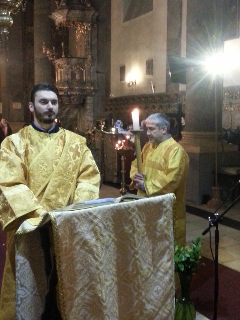 13 марта 2016 года, в воскресенье, в седмицу cырную (масленицу), неделю сыропустную, Воспоминание Адамова изгнания, Прощеное воскресенье настоятель Свято-Троицкого прихода иерей Димитрий Корнилов и иерей Святослав Булах совершили Божественную литургию в Успенском кафедральном соборе г. Будапешта. Дьяконский чин возглавил Стефан Вайна –Элиаш.