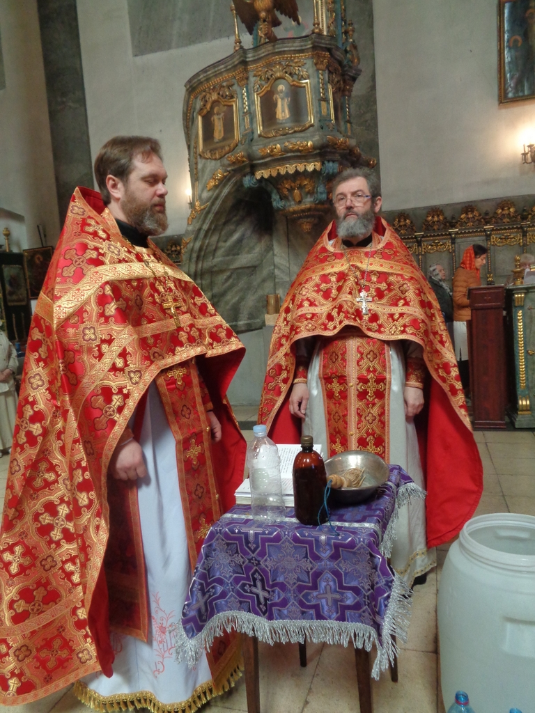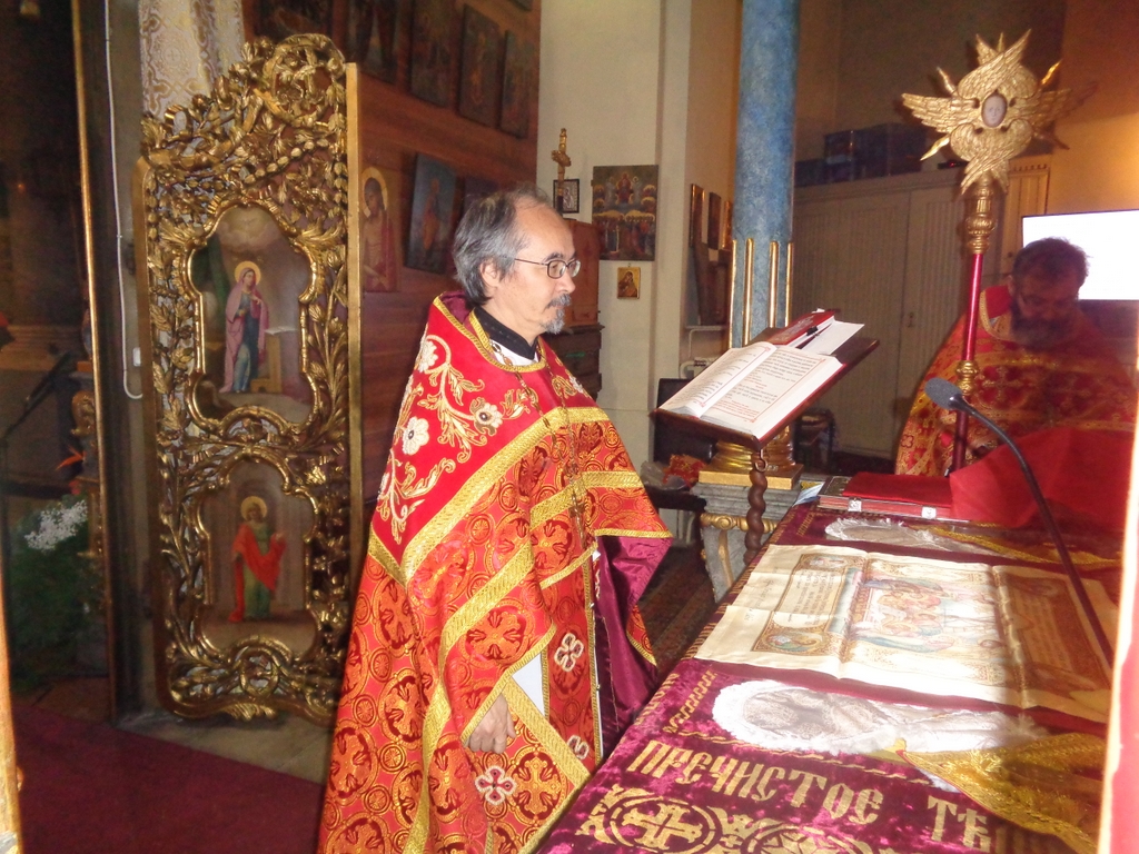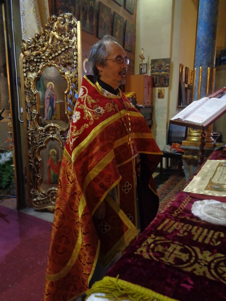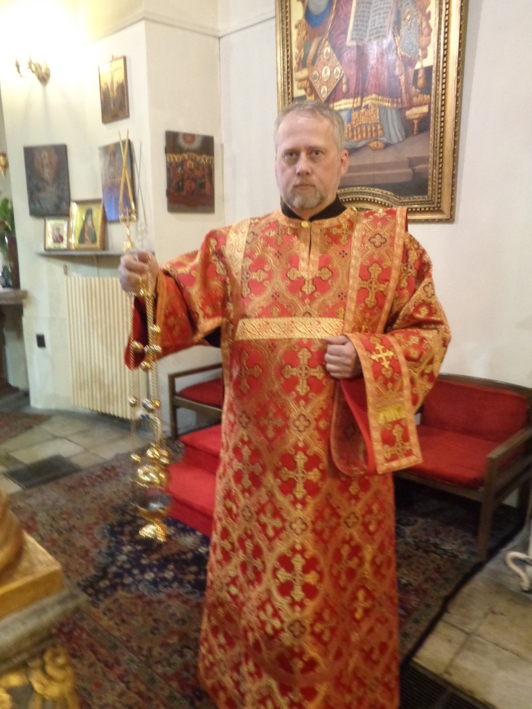 Затем отец Димитрий поздравил всех молящихся со светлыми днями Святой Пасхи и обратился к представителям братского прихода из Хевиза, со словами благопожеланий по случаю их престольного праздника. Хевизский настоятель сердечно благодарил настоятеля и прихожан Троицкого прихода, и напомнил, что в прошлом году оба прихода вместе отмечали этот праздник в Хевизе, а теперь в Будапеште.