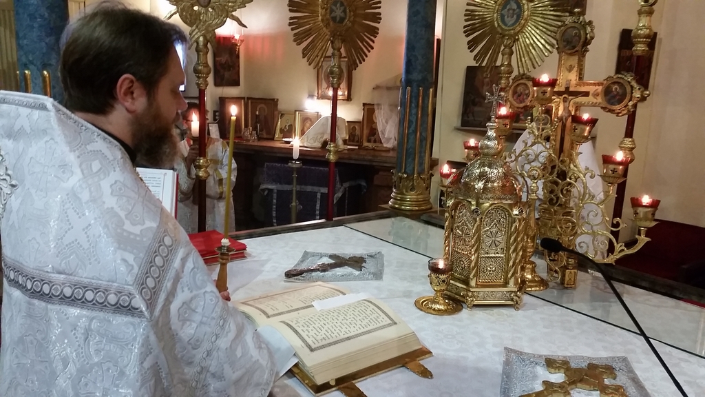 Отец Димитрий произнес проповедь на тему праздника, а после литургии поздравил молящихся с праздником и преподал им крест.