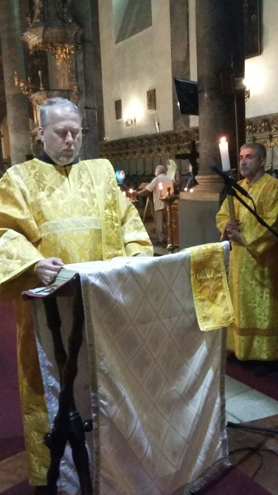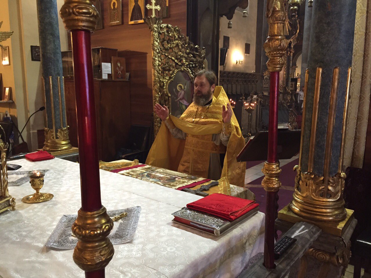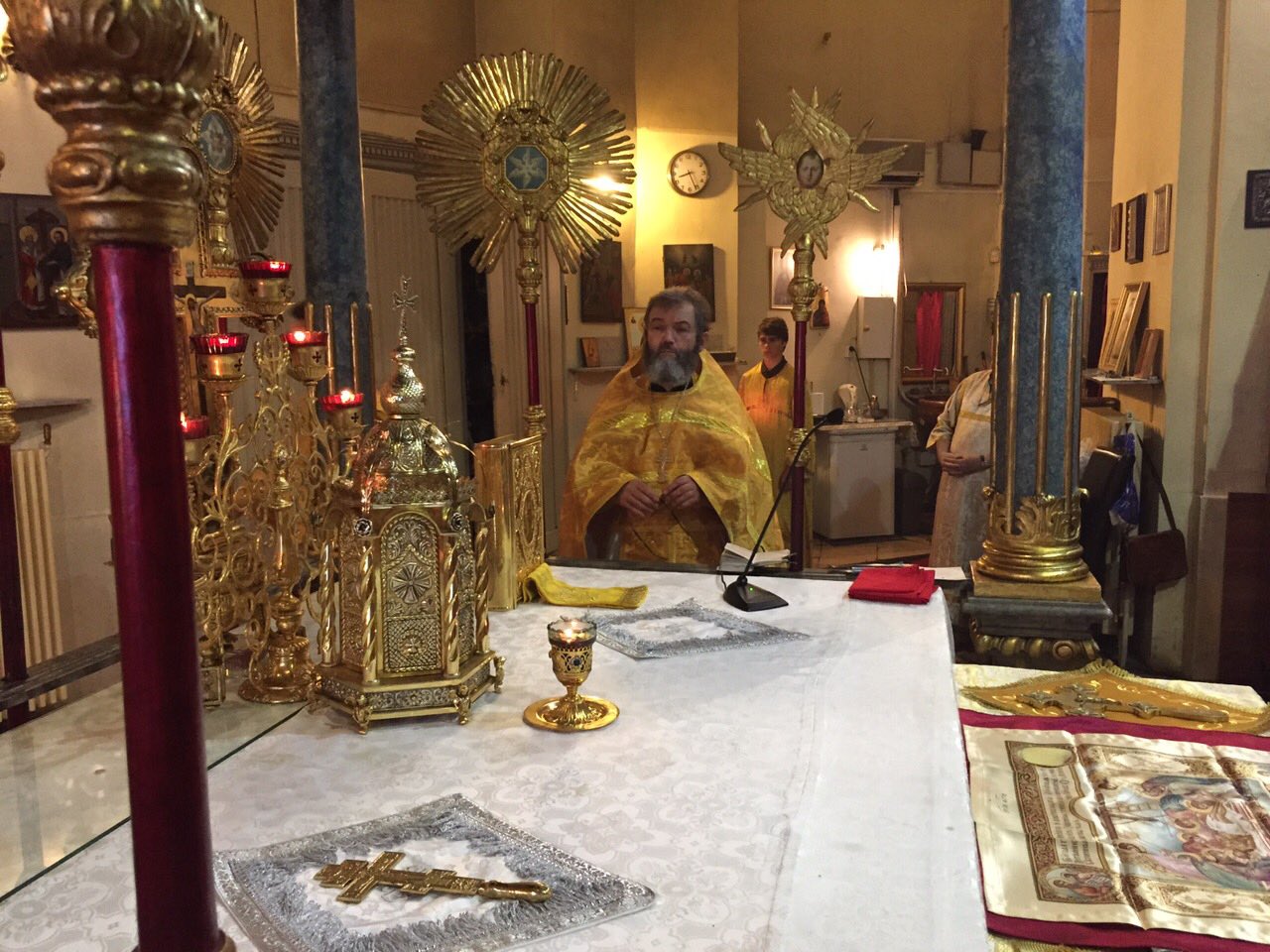 24 июля 2016 года, в Неделю 5-ю по Пятидесятнице, настоятель Свято-Троицкого прихода иерей Димитрий Корнилов в сослужении с иереем Святославом Булахом и диаконами Стефаном Вайна-Элиаш и Владимиром Чепыжовым совершили Божественную Литургию в Успенском кафедральном соборе г. Будапешта.