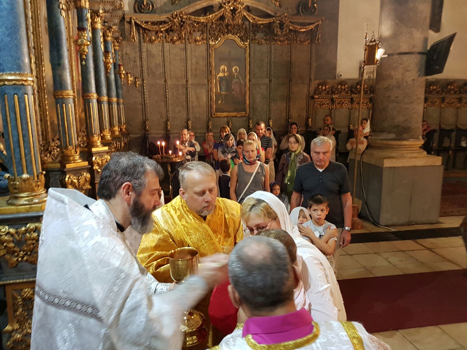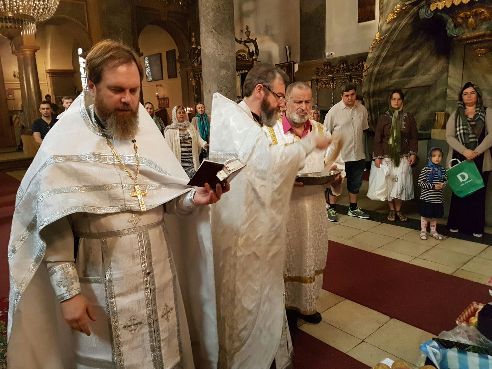 19 августа 2016 года, в праздник Преображения Господа нашего Иисуса Христа, настоятель Свято-Троицкого прихода иерей Димитрий Корнилов в сослужении с иереем Святославом Булахом и диаконом Владимиром Чепыжовым совершили Божественную Литургию в Успенском кафедральном соборе г. Будапешта.