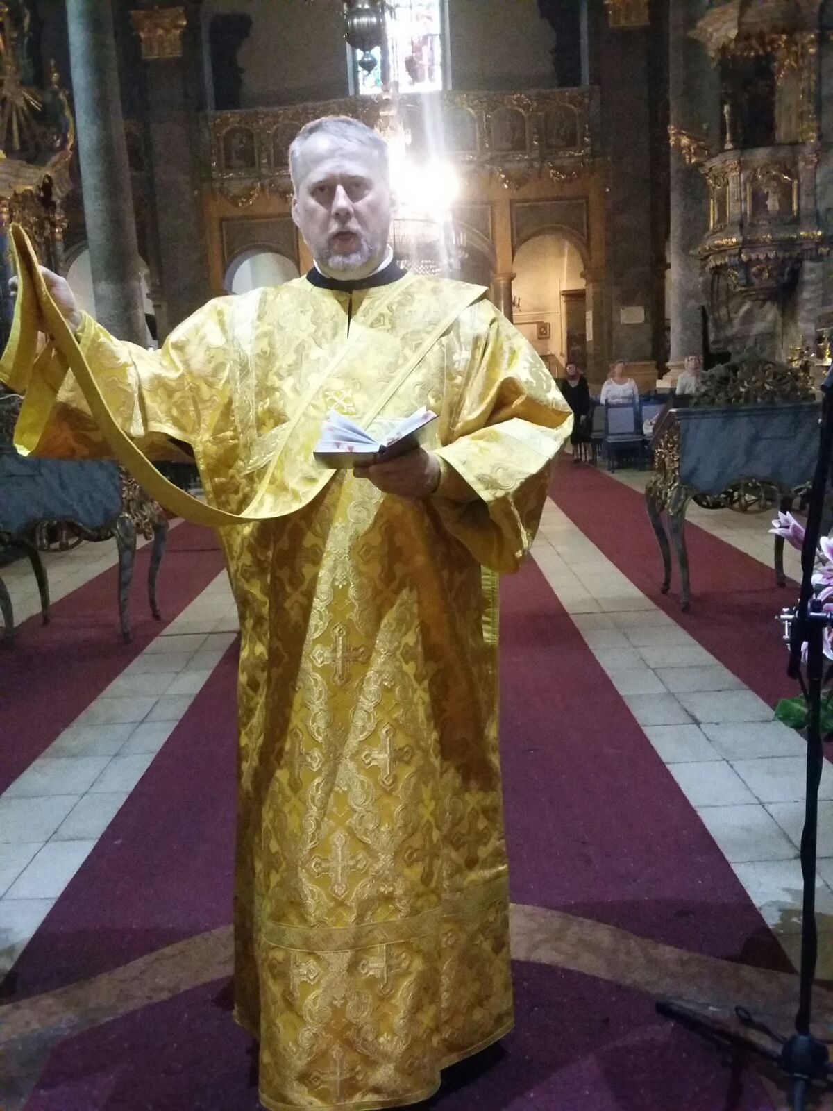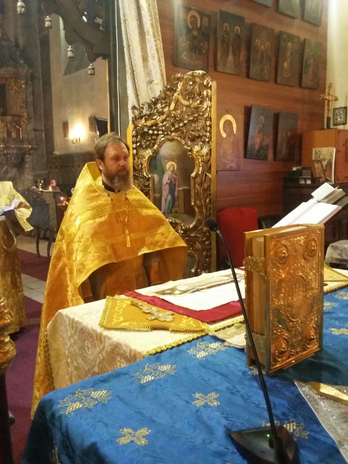 21 августа 2016 года, в Неделю 9-ю по Пятидесятнице, настоятель Свято-Троицкого прихода иерей Димитрий Корнилов в сослужении с диаконом Владимиром Чепыжовым совершили Божественную Литургию в Успенском кафедральном соборе г. Будапешта.