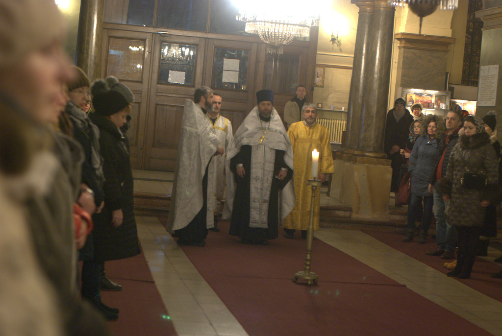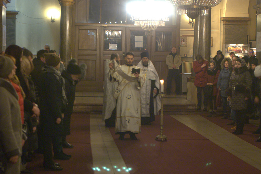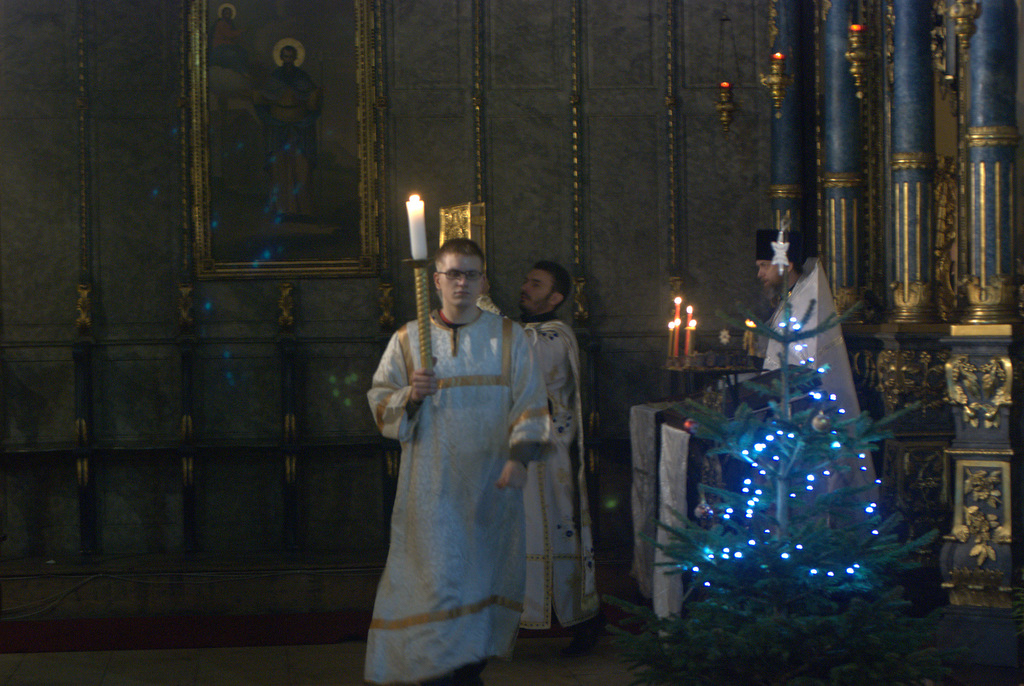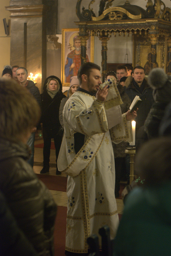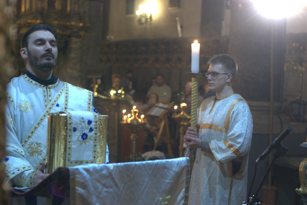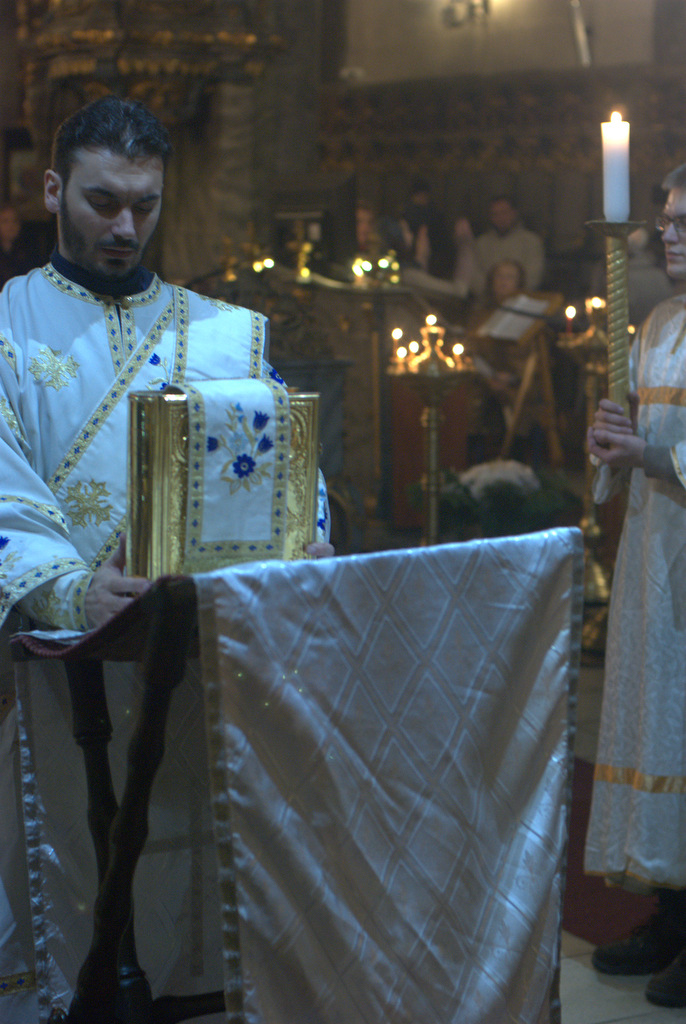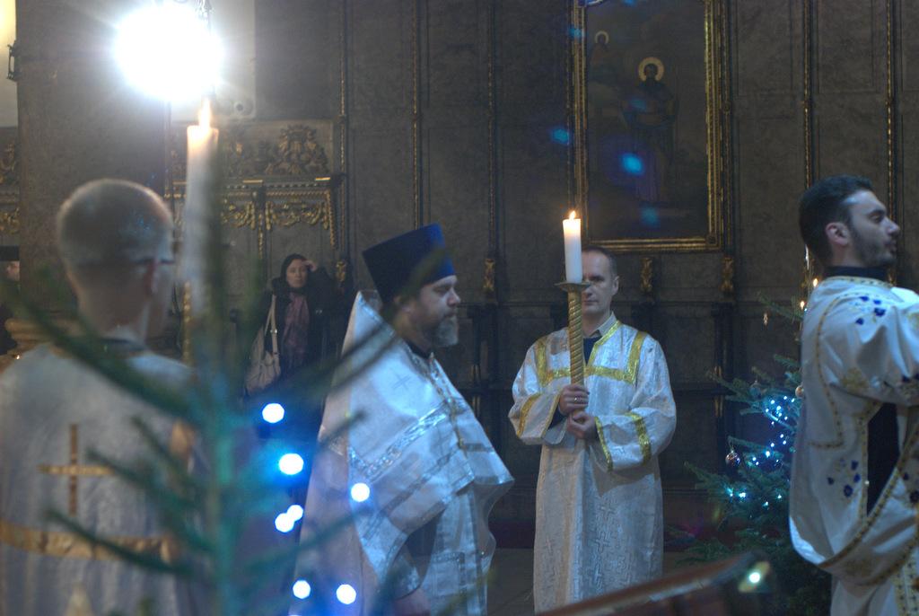 Рождественское богослужение в Успенском кафедральном соборе началось поздно вечером 6 января. Великое повечерие совершали настоятель Троицкого прихода в Будапеште иерей Димитрий Корнилов и иерей Святослав Булах в сослужении диакона кафедрального собора Стефана Вайна-Элиаш.