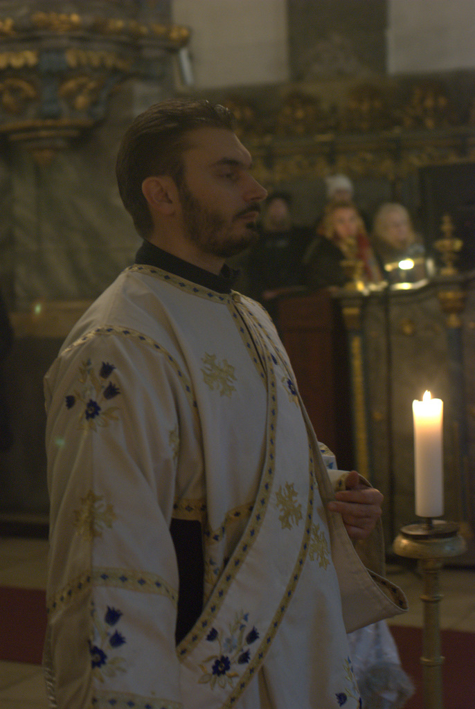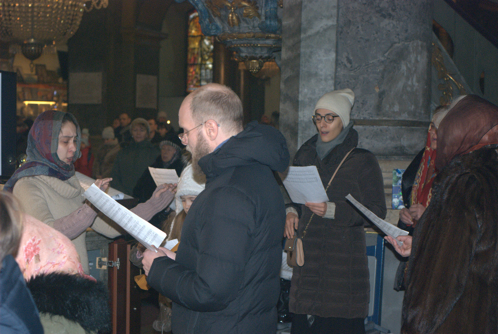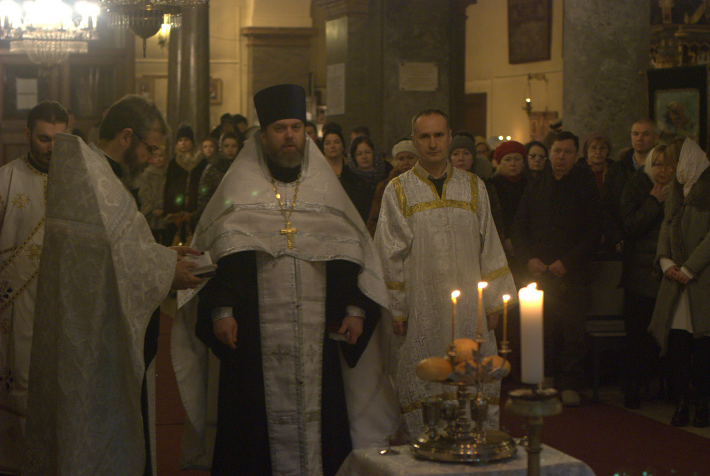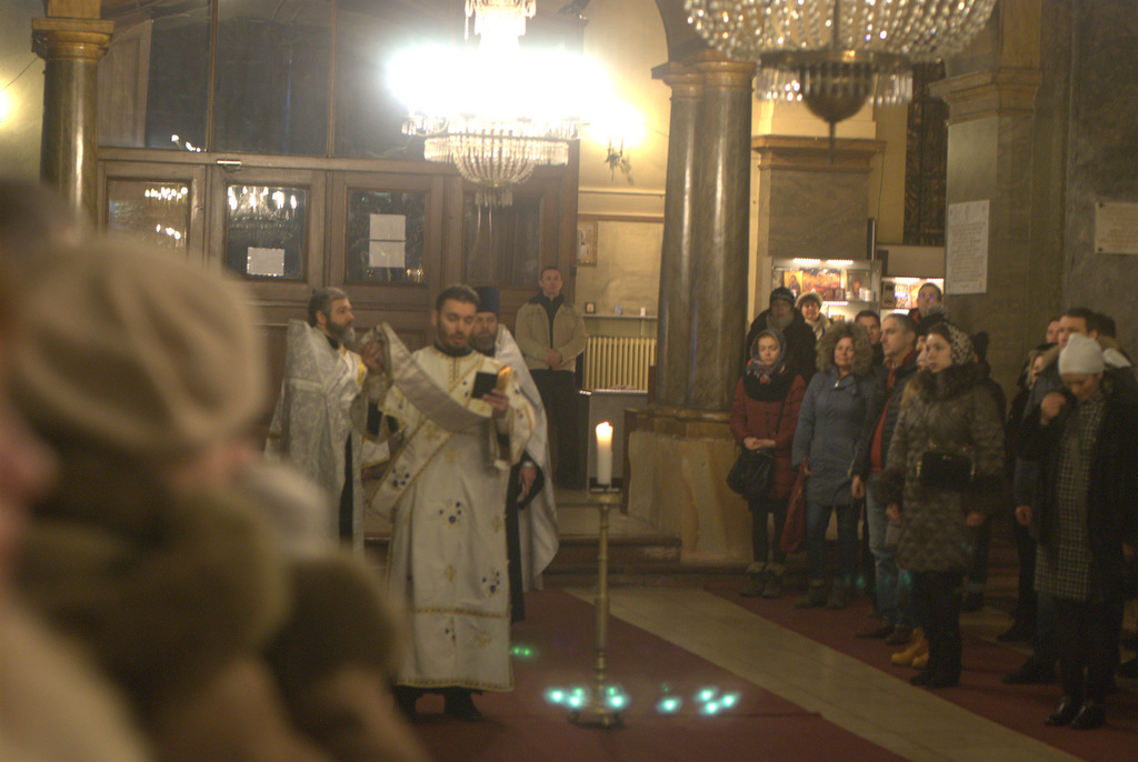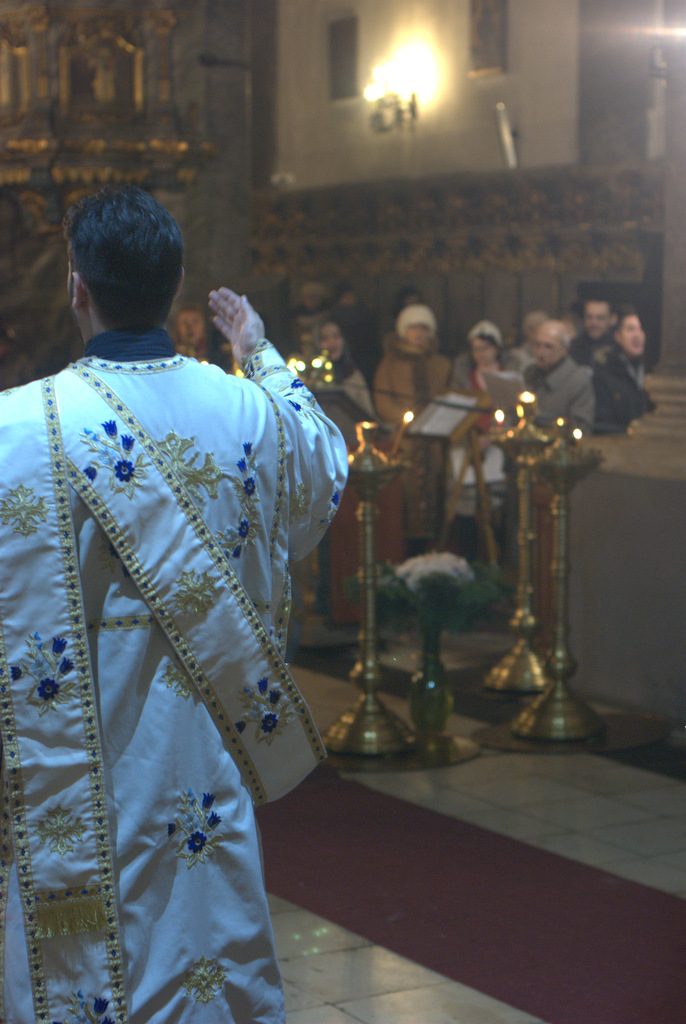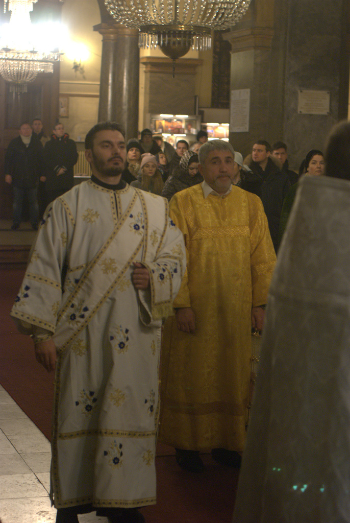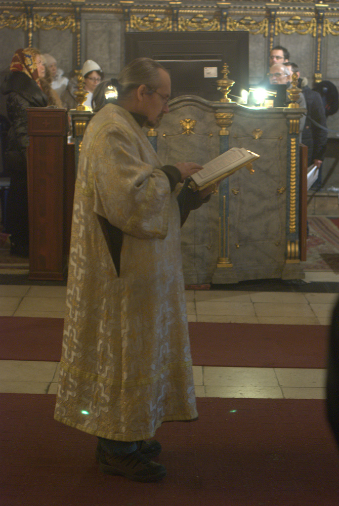 Рождественское богослужение в Успенском кафедральном соборе началось поздно вечером 6 января. Великое повечерие совершали настоятель Троицкого прихода в Будапеште иерей Димитрий Корнилов и иерей Святослав Булах в сослужении диакона кафедрального собора Стефана Вайна-Элиаш.