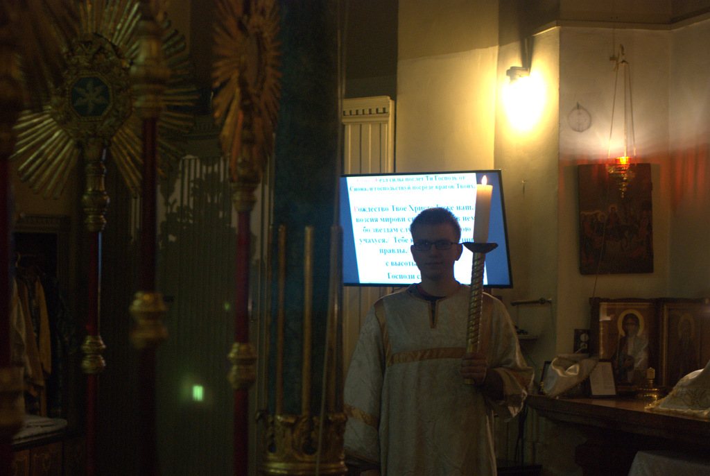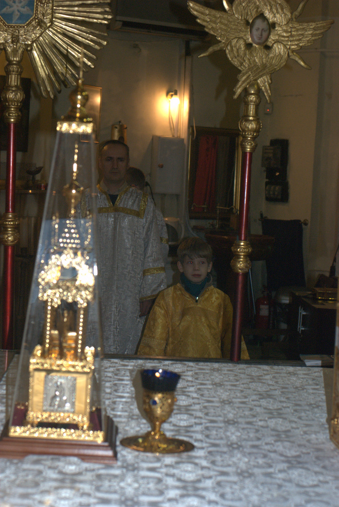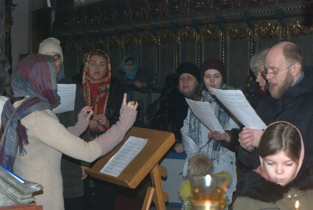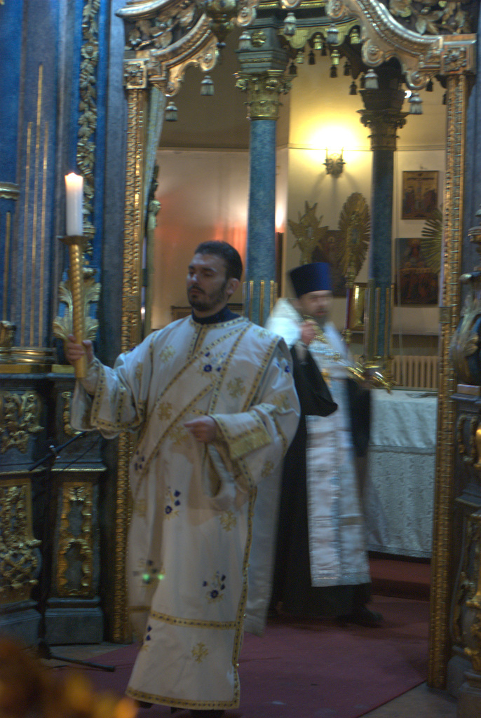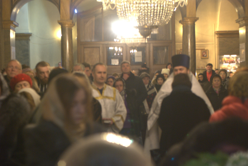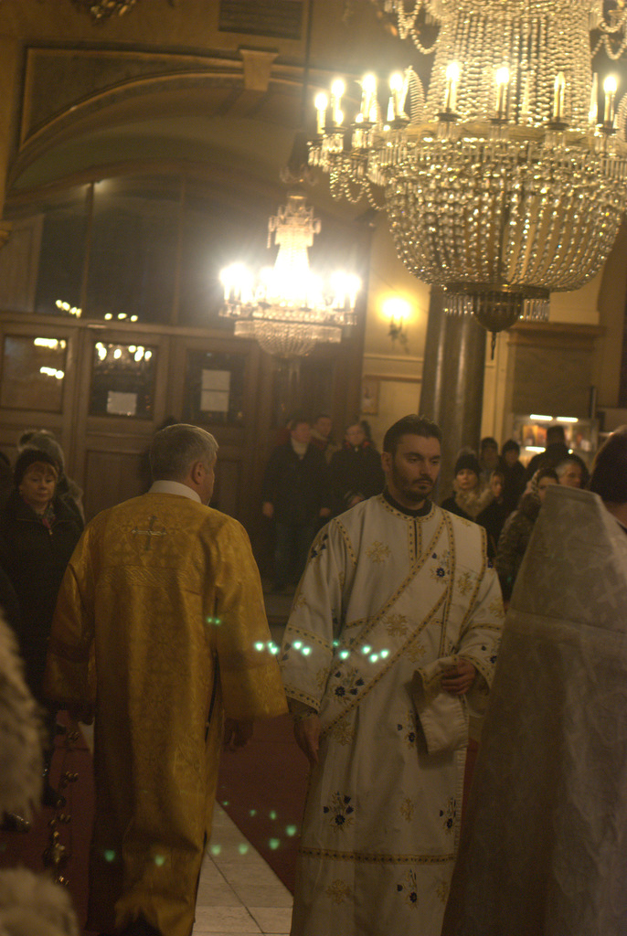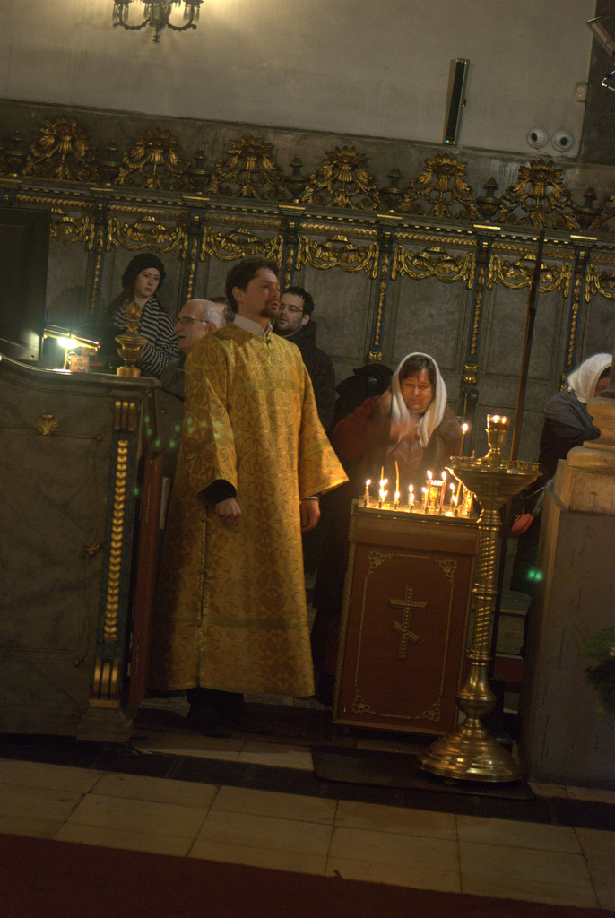 Рождественское богослужение в Успенском кафедральном соборе началось поздно вечером 6 января. Великое повечерие совершали настоятель Троицкого прихода в Будапеште иерей Димитрий Корнилов и иерей Святослав Булах в сослужении диакона кафедрального собора Стефана Вайна-Элиаш.